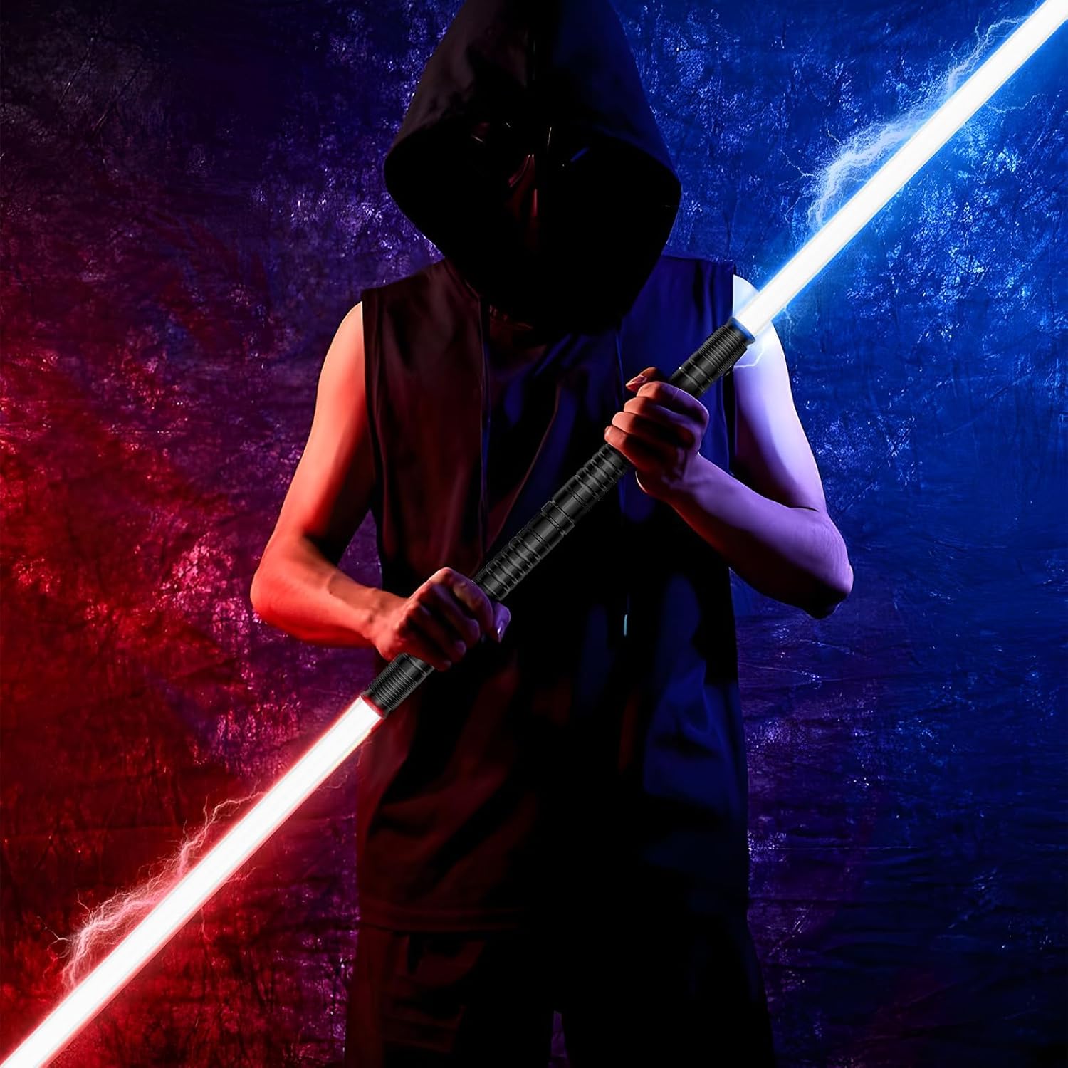 ✅【Spade laser da duello in metallo 2 in 1】Puoi usare due spade laser contemporaneamente e tu, tuo figlio o un amico potete combattere con una sola spada laser. Puoi anche trasformare le due spade laser in un'unica spada laser lunga per sconfiggere il tuo avversario più velocemente. ✅【Materiali】L'elsa della spada laser è realizzata in resistente lega di alluminio aeronautico, con una finitura lucida e un'impugnatura confortevole, resistente ai graffi. Per un'esperienza di combattimento autentica. ✅【Spada laser a 7 colori】Le spade laser possono emettere 7 colori ed eseguire simulazioni di movimento e combattimento: oscillazioni fluide ed effetti sonori di combattimento mentre esegui diverse mosse di combattimento. ✅【Ricarica USB】La spada laser è dotata di una batteria al litio sostituibile integrata e di un cavo di ricarica USB. Una ricarica di 2-3 ore consente di giocare per 4-5 ore. ✅【Servizio clienti e garanzia】 Non preoccuparti di problemi post-vendita! Offriamo un rimborso completo se hai ricevuto un articolo danneggiato. E non è necessario alcun reso! Regalo di Natale!