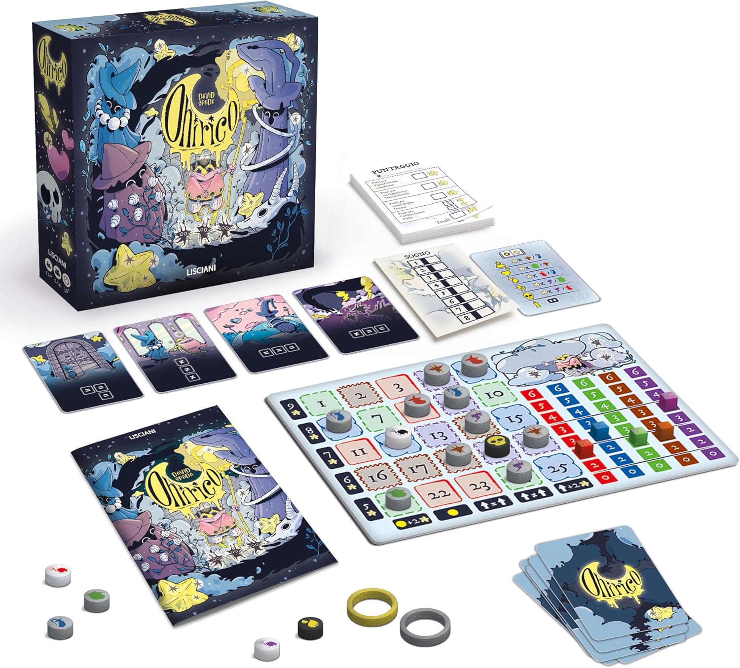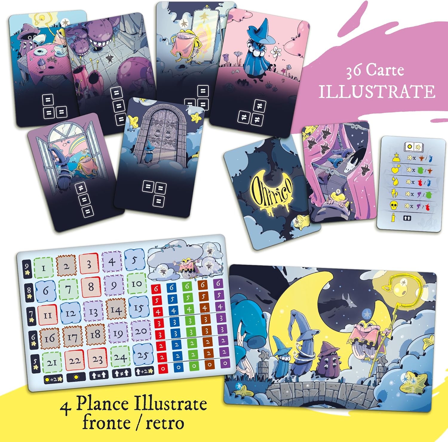 Costruisci e popola il tuo sogno 36 carte illustrate e 4 plance di gioco personalizzate - 109 componenti di gioco in legno e sacchetto per pedine - Gioco di strategia 36 carte illustrate - 4 plance di gioco illustrate - Sacchetto pedine - 109 componenti il legno - Blocchetto segnapunti - Regolamento Strategia - Immaginazione - Concentrazione - Intuito - Autonomia