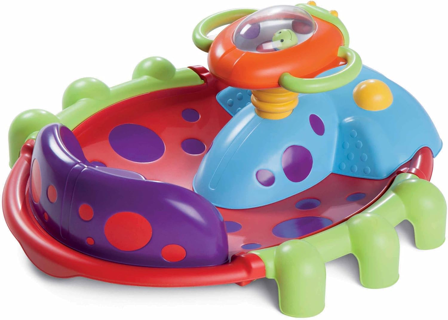 Attività Giardino Rock'n'Spin altalena. Richiede 3 batterie AAA/LR03 non incluse. Con insetti animati sul volante e gambe rimovibili, questo giocattolo Activity Garden offrirà ore di divertimento al tuo bambino. Età: 9-36 mesi Gli sono offerte due possibilità di gioco: - Fisso: le gambe della piccola creatura vengono posizionate a terra. Il bambino può giocare con il volante sonoro e luminoso e l'oscillazione è ridotta. - Mobile: le gambe della creaturina sono leggermente rialzate. Il bambino può quindi inclinare la piccola creatura da tutti i lati, ogni movimento destabilizza il giocattolo.
