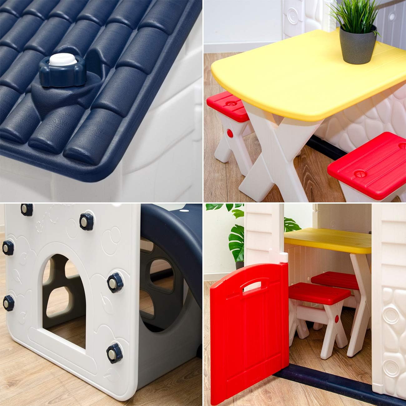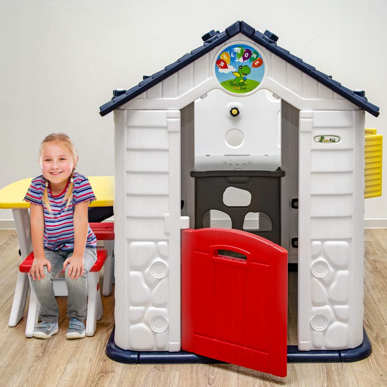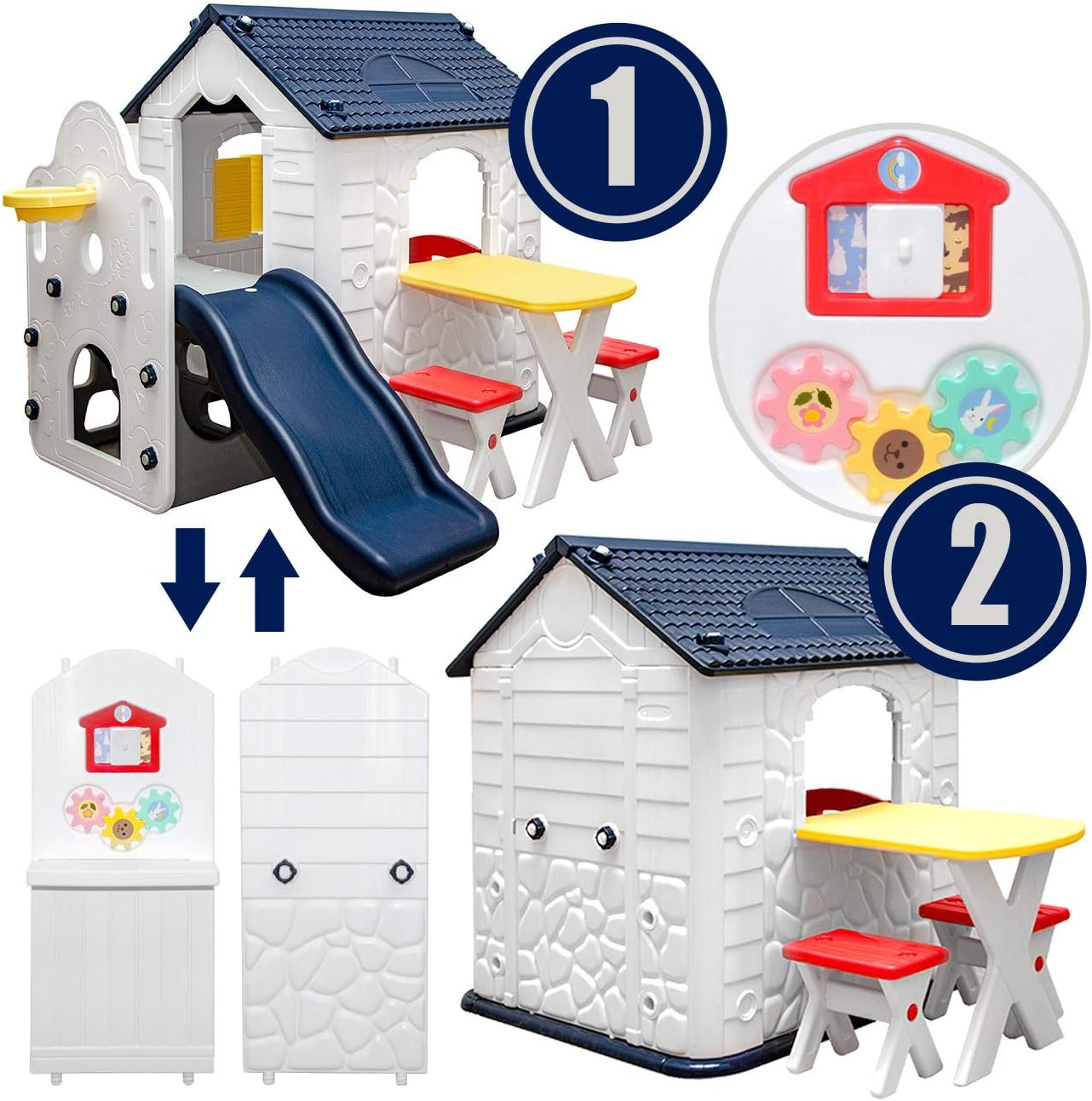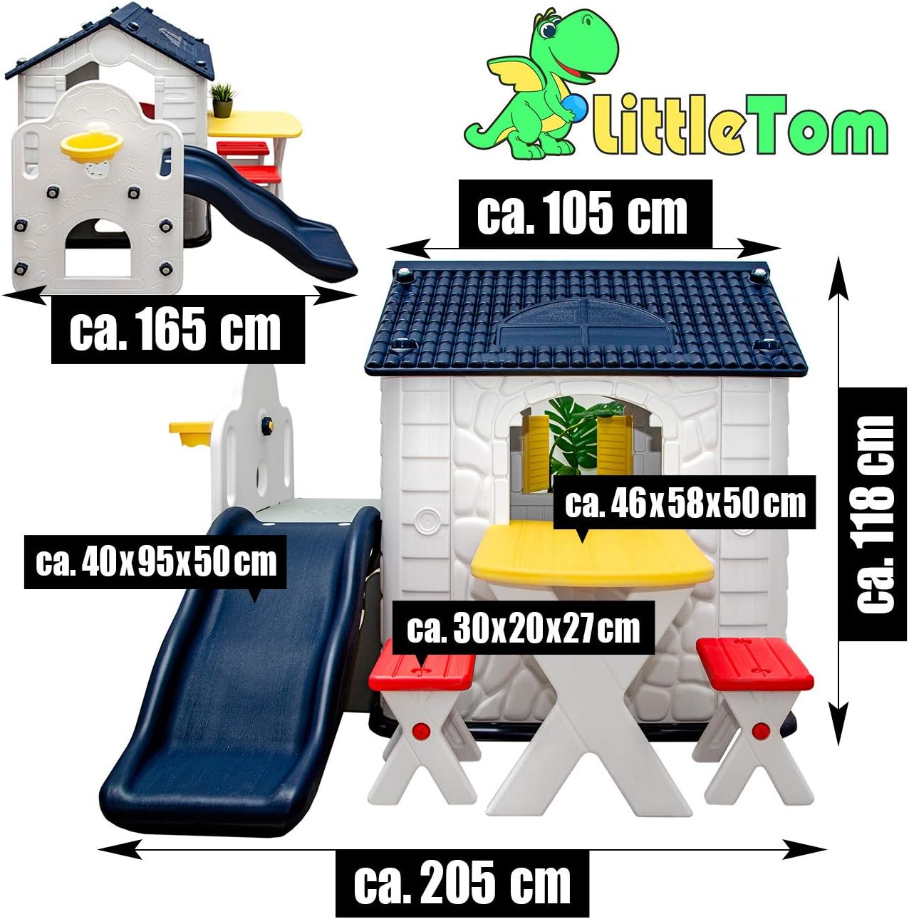 CASA DEI GIOCHI PER BAMBINI CON SCIVOLO - Casetta da giardino per ragazze e ragazzi a partire da 1 anno: con tetto, porta, finestra, scivolo, tavolo e panchina - anche con un piccolo canestro da basket. STABILE E SICURO - Capanna e scivolo in plastica di alta qualità con angoli e spigoli arrotondati - nessun rischio di lesioni per neonati e bambini. In totale il parco giochi misura ca. 205 x 165 x 118 cm. PER INTERNI ED ESTERNI - I solidi elementi sono robusti, resistenti alle intemperie e stabili ai raggi UV. Dentro o fuori, in giardino o nella stanza dei bambini: la casetta è divertente ovunque. TANTO SPAZIO PER GIOCARE - Casetta per 2 - 3 bambini: Ideale per i primi giochi di ruolo. La porta e le persiane sono facili da aprire, il tavolo e la panca possono essere fissati all'esterno o all'interno. LA TUA PRIMA CASA GIARDINO - Le casette Little Tom si montano rapidamente grazie al sistema ad innesto - senza attrezzi! Le viti XL tengono tutte le parti in posizione: il gioco può iniziare immediatamente.