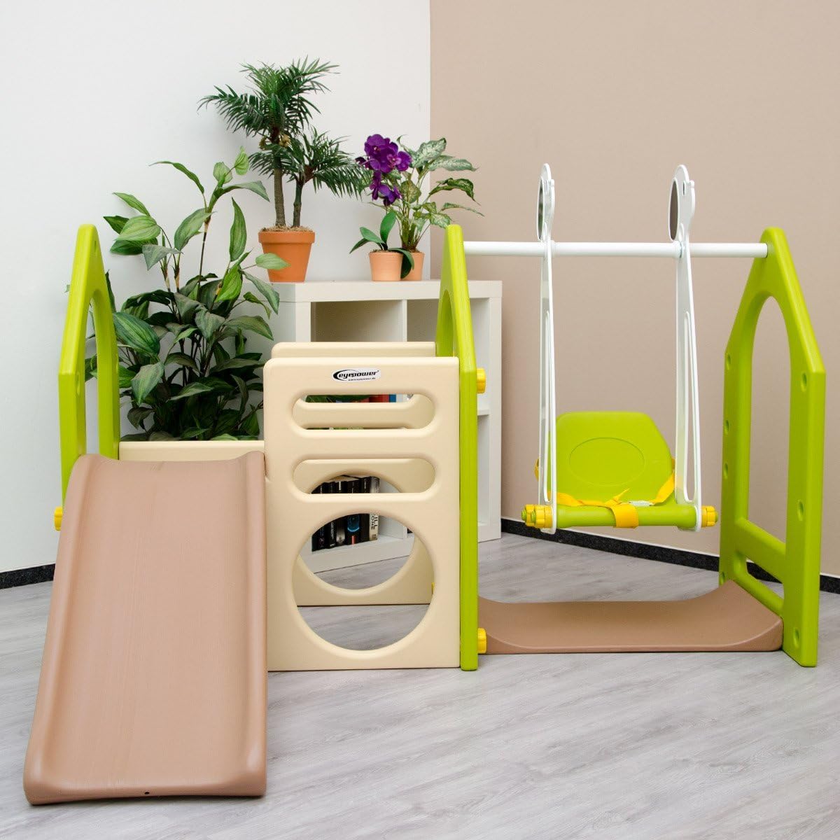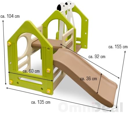 COMPATTO PARCO GIOCHI: la palestrina XXL di LittleTom per bambini da 1 a 4 anni è costituita da uno scivolo, un'altalena e due pareti da scalare. I colori neutri sono adatti sia per la cameretta dei bambini che delle bambine PER GIOCARE ALL'INTERNO E ALL'ESTERNO DELLA CASA: fabbricato con plastica resistente, è adatto sia per essere installato nella camera dei giochi che restare per giorni all'aperto (in girdino, terrazza, balcone). Facile da pulire con un panno umido ALTA QUALITÀ: Dimensioni generali: ca. 135x155x104cm, Scivolo: ca. 92x29 cm, Sedile dell'altalena: ca. 18x30cm, Peso sostenuto: max. 30kg, Materiale: plastica, Età consigliata: per i bambini da 1 a 4 anni. Lo scivolo può essere montato a destra o a sinistra STABILE: bilanciata, leggera da trasportare - ma non così tanto da essere facilmente ribaltata durante il gioco. Gli angoli ed i bordi sono arrotondati per una maggiore sicurezza per i più piccoli ASSEMBLAGGIO VELOCE: grazie al semplice sistema ad incastro, la struttura puó essere assemblata e smontata rapidamente e facilmente. Non sono necessari utensili, le parti devono essere inserite l'una dentro l'altra e fissate con i grossi dadi in consegna