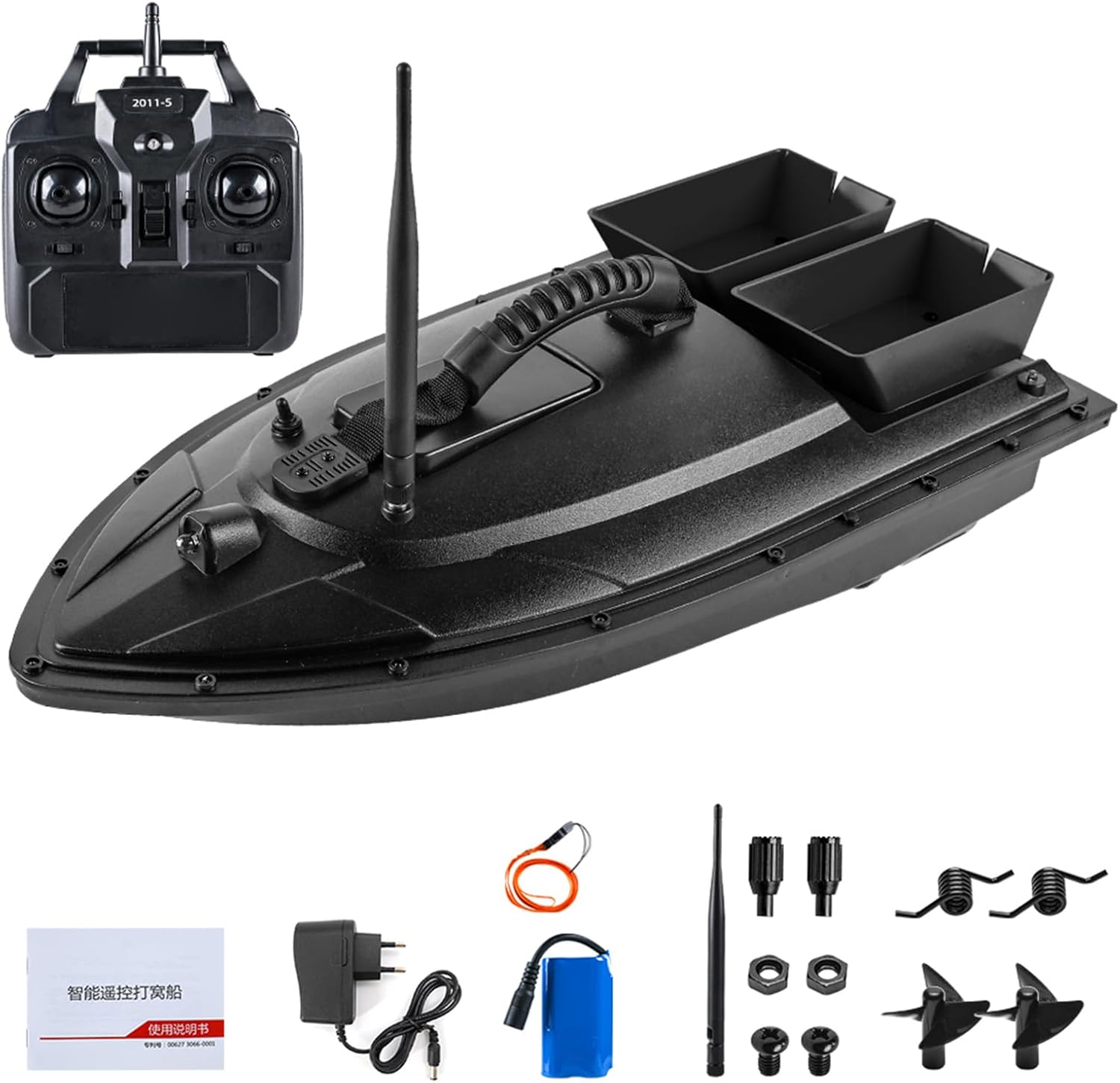 Stabilità del segnale: i comandi remoti possono essere eseguiti in un ambiente senza ostacoli con una portata di 500 metri, non sono più legati ai cavi, godono della comodità della tecnologia wireless e il segnale è ampio e stabile. Lunga durata: batteria integrata da 5200 mAh di grande capacità, basso consumo energetico e lunga durata. Con l'indicatore di alimentazione e il monitoraggio dell'alimentazione in tempo reale, ti ricorderà di ricaricare in tempo. Modulazione automatica di frequenza: un circuito speciale e un dispositivo di controllo remoto digitale con modulazione automatica della frequenza possono risolvere completamente i problemi se diverse barche si disturbano a vicenda durante la vela, la distanza del telecomando è breve, la barca da pesca è fuori controllo, ecc. Design a doppio contenitore: è possibile controllare la nidificazione fissa a piacimento, che è particolarmente importante nell'ambiente di pesca con grandi acque! Due cassette possono essere azionate indipendentemente l'una dall'altra e la capacità di carico è di circa 1,5 kg. Prestazioni forti: forte sistema motore a doppia potenza, funzionamento silenzioso, non disturba i pesci. L'aggiornamento di un'elica a tre lamiere ad alta efficienza garantisce prestazioni elevate e guida veloce.