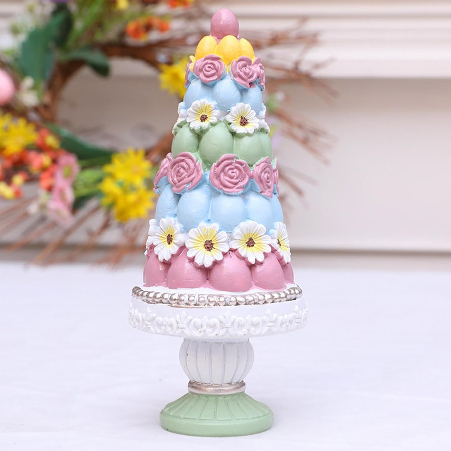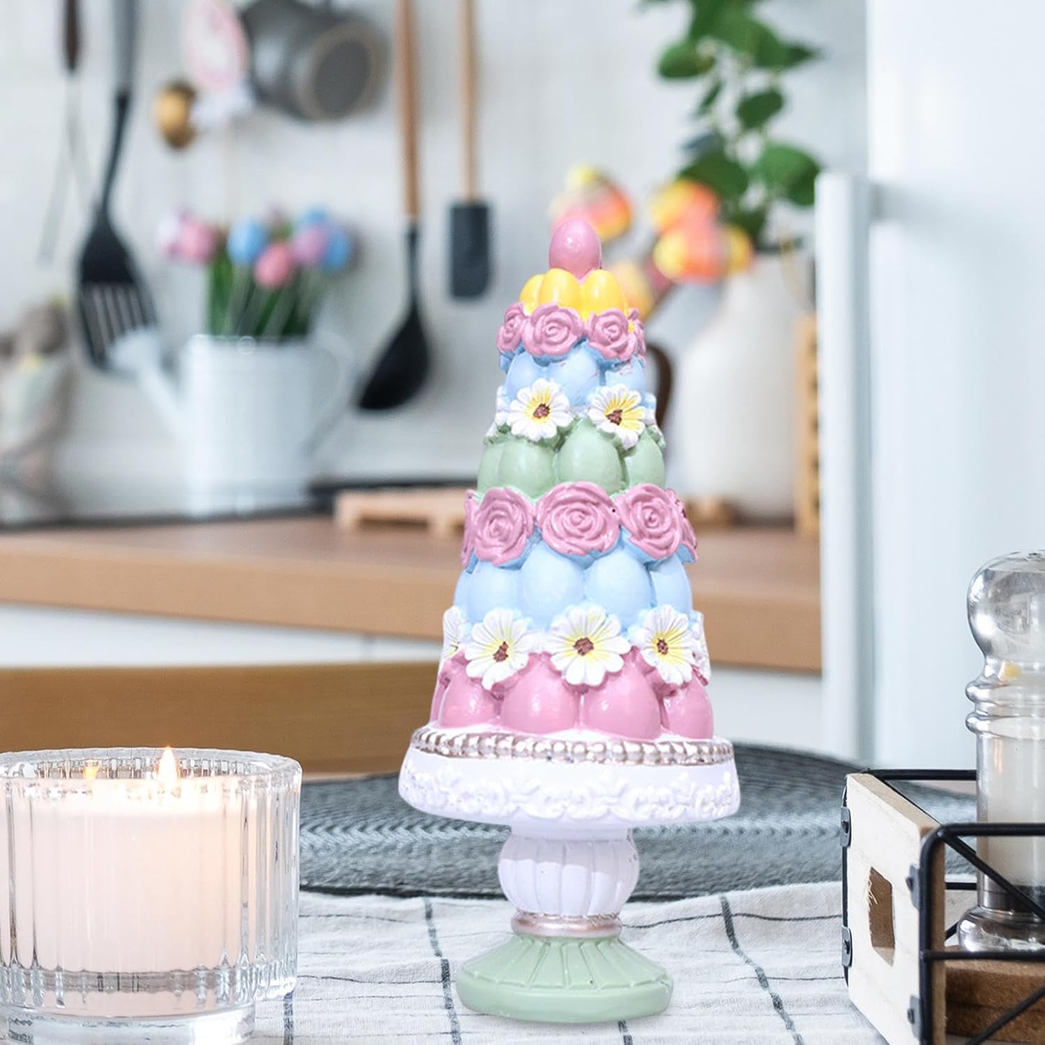 [Materiale]: la statuetta dell'albero di Pasqua è realizzata in resina, garantendo durevolezza e longevità, rendendola un ottimo oggetto decorativo [Design Per unico]: questa statua decorativa in resina è splendidamente realizzata e dettagliata, rendendola una decorazione accattivante che aggiunge un tocco festoso alla decorazione [Ampiamente utilizzato]: la decorazione pasquale è adatta per essere posizionata sulla scrivania, in soggiorno, in camera da letto, in un mobile, in ufficio e in altri luoghi, rendendo l'ambiente domestico più caldo e confortevole [Decorazione pasquale]: questa creazione in resina è perfetta per Pasqua, aggiungendo un'atmosfera giocosa e festosa al tuo spazio [Ottimo regalo]: la decorazione da tavolo è un'ottima scelta regalo per familiari e amici per Pasqua, inaugurazioni di una nuova casa e feste, ed è un ottimo pezzo per valorizzare il tuo arredamento esistente