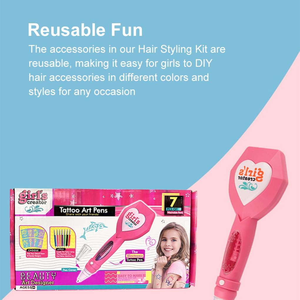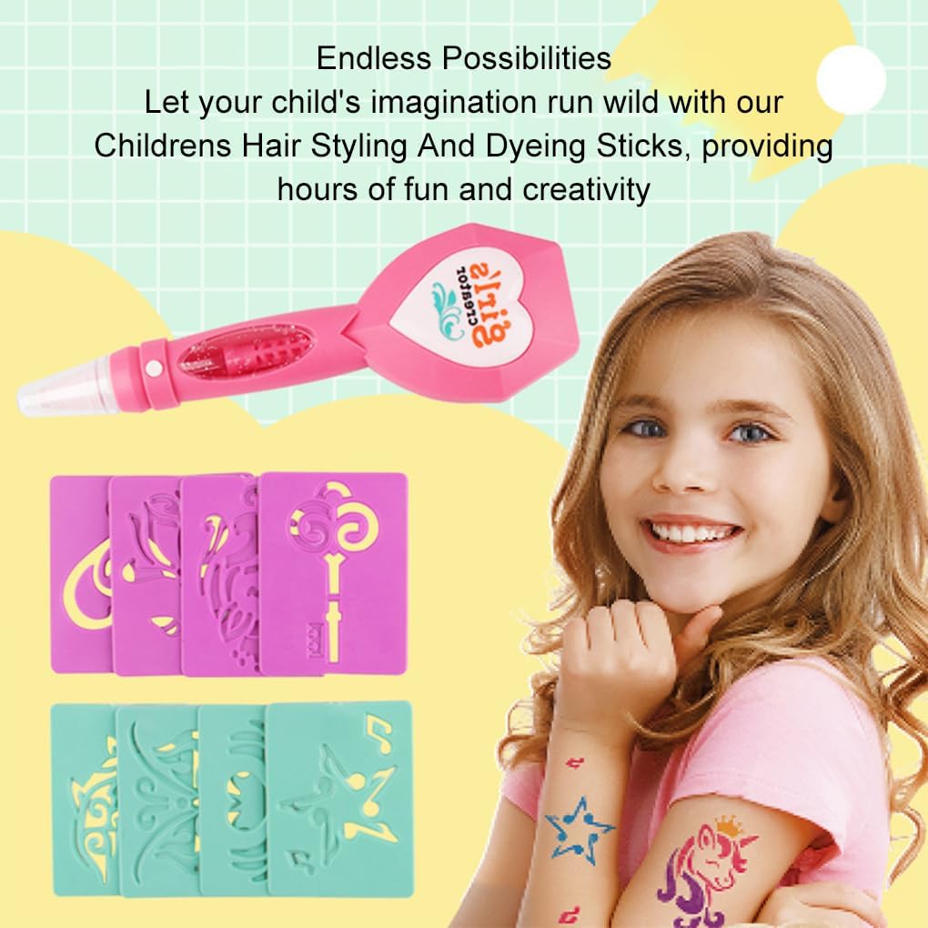 Colorato: i nostri accessori fai da te per la tintura dei capelli consentono ai bambini di scatenare la loro creatività aggiungendo accessori colorati ai loro capelli o tatuandosi le braccia Divertimento riutilizzabile: gli accessori nel nostro kit per lo styling dei capelli sono riutilizzabili, rendendo facile per le ragazze creare accessori per capelli fai da te in diversi colori e stili per ogni occasione Facile da usare: basta premere leggermente i capelli per lasciare il colore, rendendolo strumento per i bambini per il loro stile Regalo: questo set di giocattoli per ragazze è un regalo per qualsiasi ragazza che ama sperimentare con i propri capelli e accessori Possibilità infinite: lascia correre l'immaginazione di tua figlia con i nostri bastoncini per lo styling e la tintura dei capelli per bambini, offrendo ore di divertimento e creatività