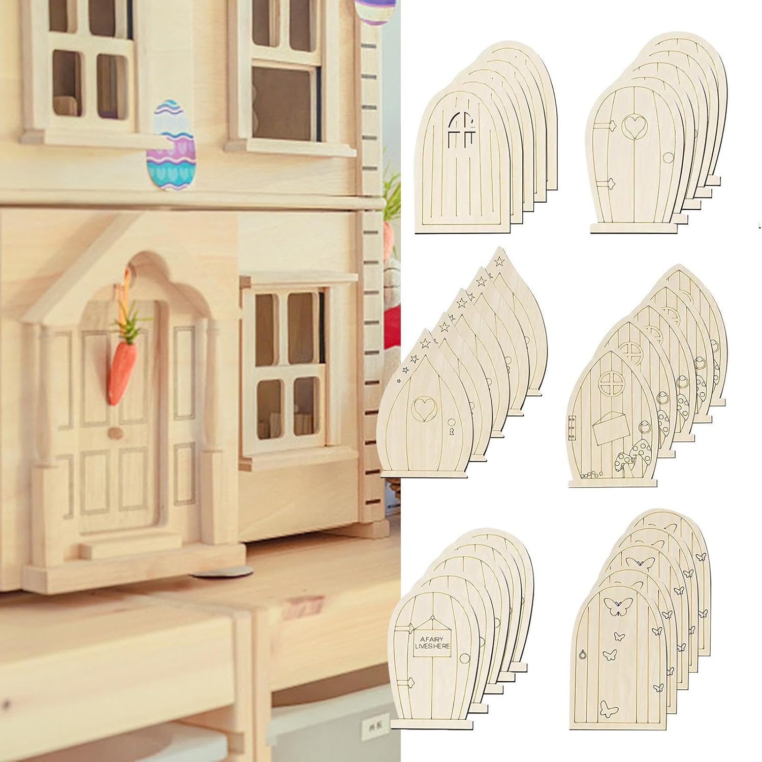 Confezione di pregio: ci sono 6 tipi di porte delle fate in legno, e ogni tipo ne contiene 5, per un totale di 30 pezzi in legno Porta delle fate non finita: la mini porta in legno a tema fatato è portatile e ti permette di realizzare vari lavoretti fai da te Materiale di qualità: le porte in legno da giardino delle fate sono realizzate in legno, resistenti e leggere Dimensioni perfette: 9,9 cm x 6,2 cm, spessore di 2,2 cm, dimensioni adeguate, con superficie delicata, per decorazioni con macchie, inchiostro, vernice, ecc Ampie applicazioni: queste porte delle fate in legno sono ampiamente adatte per la pittura dei bambini, la creazione di biglietti, decorazioni, album di ritagli, la creazione di insegne e altri progetti artigianali