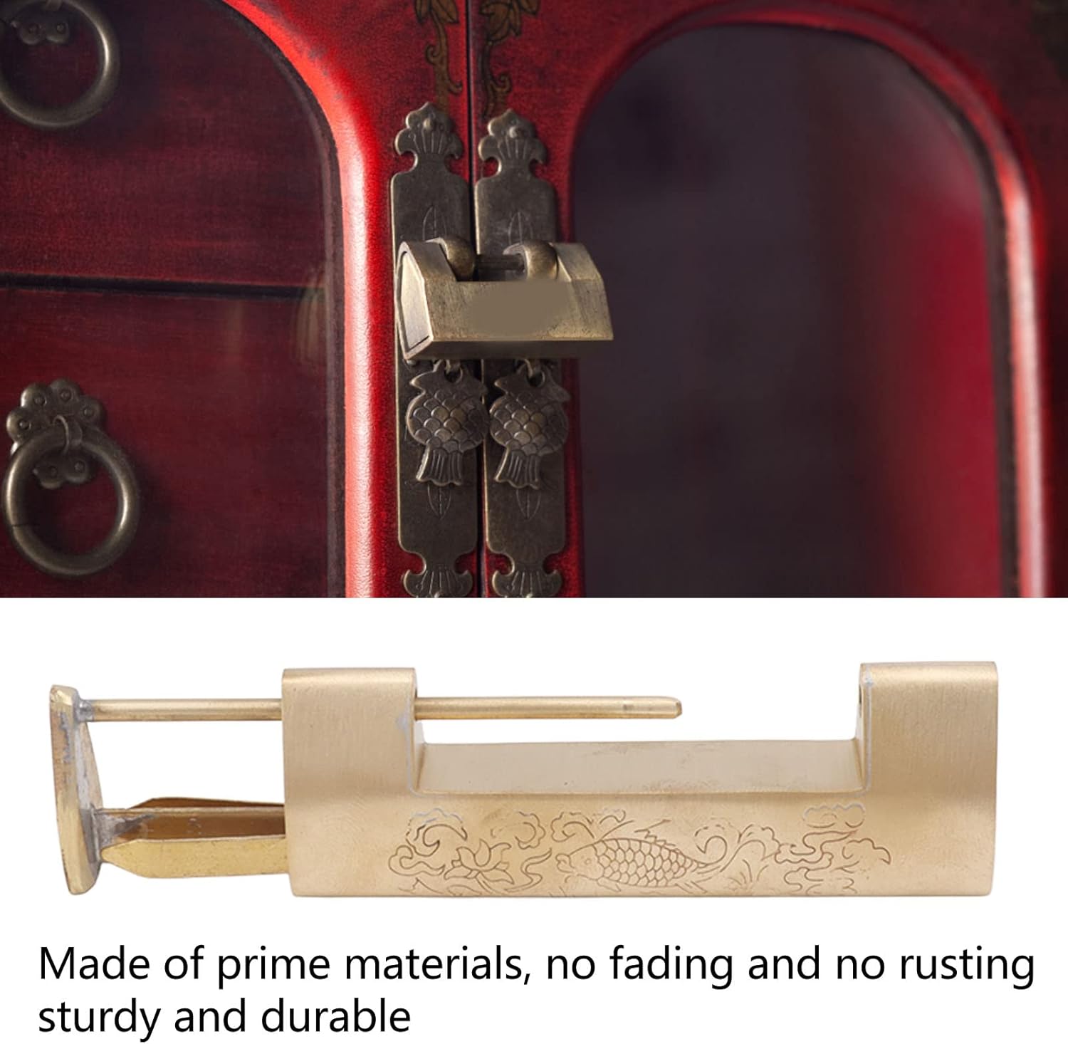 [Elegante decorazione] Aumenta l'aspetto dei loro gioielli o scatole con questa vecchia serratura cinese in ottone cinese con un modello di pesce felice. [Tutto il pacchetto in] include un vecchio blocco e una chiave di rame che offre un set comodo e completo per mobili e utilizzo singoli. [Building permanente] Creato da un messaggio premium, questo blocco è forte, stupito e garantisce prestazioni e durata affidabili. [Applicazione versatile] per vecchie scatole di legno, scatole di vino, cassette degli attrezzi e piccoli armadi che migliorano l'attrazione generale decorativa dei loro mobili. [Sensato Simbolismo] Il modello di pesce del destino nel castello simboleggia buona fortuna e pace e dà alla cultura della tua casa un tocco decorativo e sensibile.