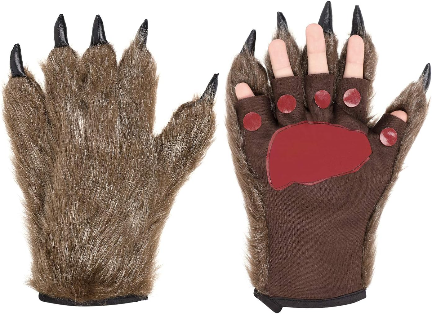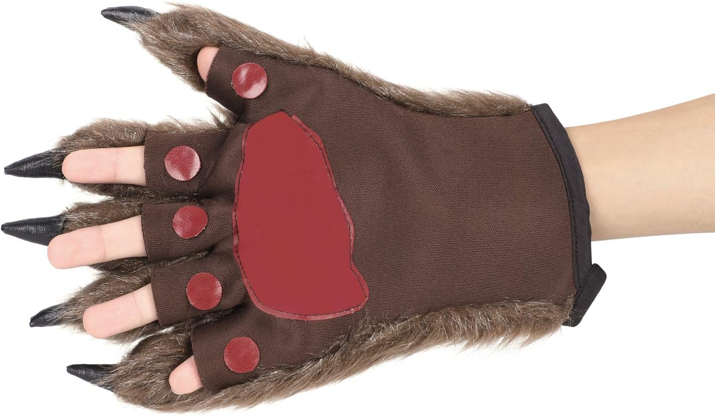 LONTG Guanti da Lupo Mannaro di Halloween Guanti da Lupo Ingannevoli Horror Guanti Cosplay in Maschera di Travestimento Prop Guanti in Peluche Cartoon Guanti a Zampa d'Orso Guanti da Dito Caldi per Adulti Accessori per Costumi di Halloween