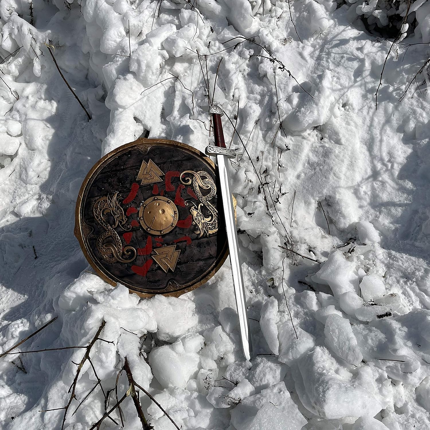 Spada vichinga. Design ispirato agli stili storici medievali. La spada vichinga era uno degli strumenti offensivi più utili per un guerriero vichingo. Le spade vichinghe erano tipicamente destinate all'uso con una mano, con l'altra mano che reggeva uno scudo. Erano più che semplici armi in battaglia. Una spada spesso indicava ricchezza e status. Spada in costume perfetta. Ideale per produzioni teatrali, feste di Halloween, feste in costume, travestimenti e altro ancora. La spada è perfetta per le feste rinascimentali locali, una battaglia in giardino con gli amici, eventi LARP o rievocazioni storiche. Realizzato in schiuma PU di alta qualità con un aspetto metallico realistico. A grandezza naturale per un vero uomo. Dimensioni: ca. 98 cm L x 14,5 cm L x 3,5 cm A Decorazione unica. La spada giocattolo crea un punto focale impressionante in casa e in ufficio. Posizionato in un angolo attirerà subito l'attenzione dei vostri ospiti.