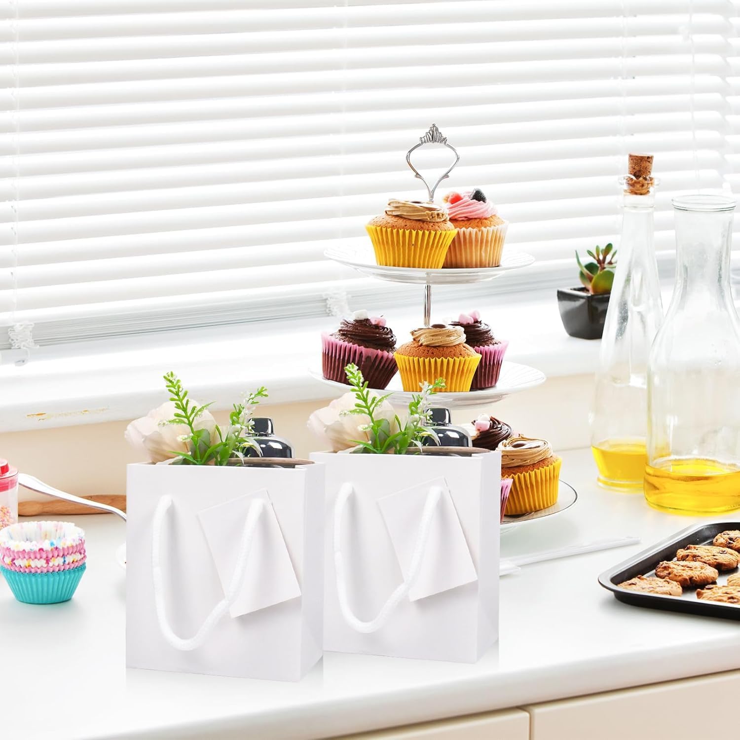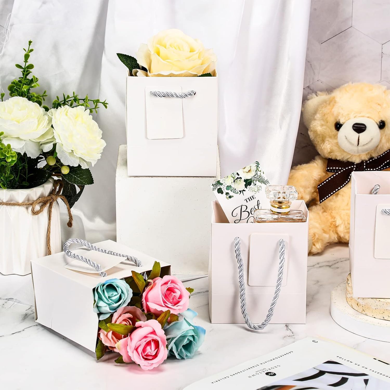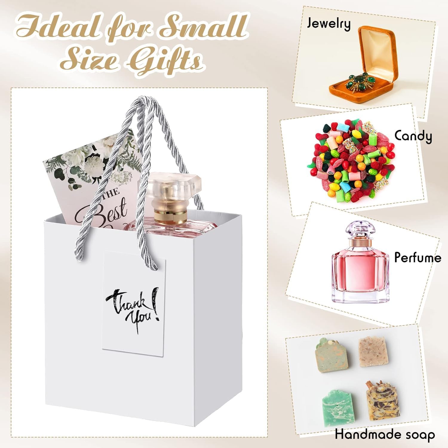 【Pacchetto incluso】 - Riceverai piccoli sacchetti regalo da 60 pezzi con etichette regalo, quantità sufficiente per l'uso quotidiano e la sostituzione; il design semplice e generoso aggiunge uno stile squisito ai tuoi regali,Design etichetta regalo fai da te: ogni piccola borsa regalo viene fornita con una piccola etichetta regalo sul cordino; Puoi scrivere diversi messaggi o benedizioni sul piccolo ciondolo in base alle tue esigenze, puoi usare la tua immaginazione per progettare tu stesso il modello vuoto e creare una nuova borsa regalo che piacerà ai tuoi amici., 【Materiale robusto】 - La mini borsa regalo è realizzata in cartone di alta qualità, leggero ma robusto, inodore e non facile da rompere o strappare; Inoltre, il fondo di queste borse è rinforzato e facile da montare, quindi hanno anche una forte capacità di carico; Il manico è dotato di una corda di cotone, che lo rende più comodo da trasportare. 【Taglia】 - Il piccolo sacchetto regalo con manico misura circa 4 x 2,75 x 4,5 pollici. Si prega di misurare attentamente le dimensioni prima dell'acquisto per vedere se soddisfa le vostre esigenze. Dimensioni così piccole e portatili che possono contenere la maggior parte dei piccoli oggetti come regali, generi alimentari, vestiti, snack, pranzo, giocattoli e regali artistici.,Ampie applicazioni: la nostra piccola borsa regalo con manico è adatta per molte occasioni, ampiamente utilizzata come borsa per la spesa o borsa regalo per feste, adatta per negozi al dettaglio, boutique, San Valentino, festa della mamma, addio al nubilato, compleanni, matrimoni, lauree e altro ancora.