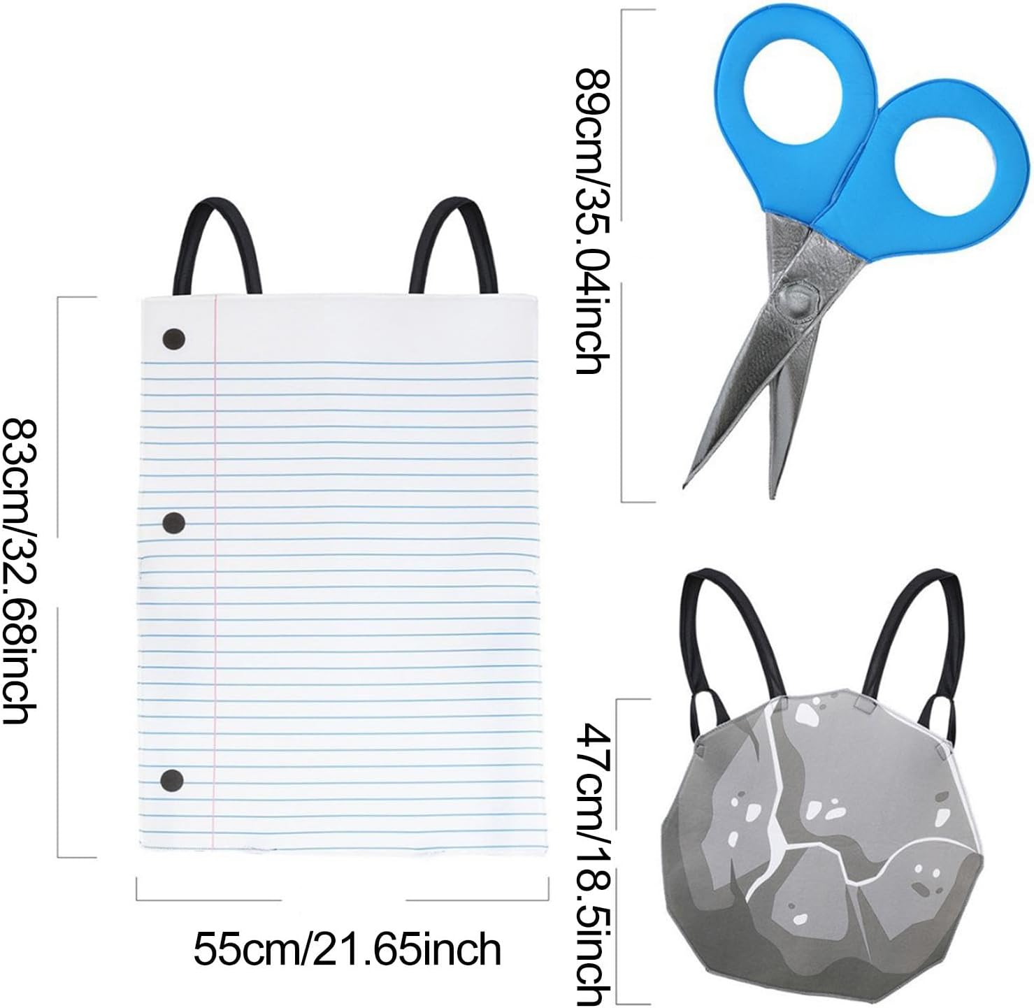 【Divertimento interattivo per tutti】: Questo non è solo un costume, è un gioco! Scatenate risate e una sana competizione sfidandovi a un vero gioco di carta, forbici e sasso. È un modo creativo e coinvolgente per coinvolgere tutti e creare ricordi del trimestre. 【Comodi e facili da indossare】: progettati per il divertimento di tutto il giorno, questi costumi di Halloween per famiglie sono realizzati in tessuto di poliestere leggero e confortevole. Il design si indossa facilmente sopra i vestiti normali, consentendo una completa libertà di movimento in modo da poter camminare, ballare e giocare senza sentirsi limitati. Ideale per bambini dai 4 ai 12 anni e adulti amanti del divertimento. 【Versatile per ogni occasione】: non limitarti ad Halloween! Questo set di costumi è la scelta vincente per carnevali, recite scolastiche, spettacoli teatrali, convention di cosplay e feste a tema durante tutto l'anno. 【Idea per un costume di gruppo】: Risolvi qualsiasi dibattito con questo esilarante set di costumi da 3 pezzi Sasso, Carta, Forbici! Ideale per una famiglia o un gruppo di amici, questo costume coordinato è un rompighiaccio istantaneo e vi garantirà di essere più memorabile a qualsiasi . 【Star della festa istantanea】: preparati al centro dell'attenzione! Il design unico e del costume da sasso carta forbici cattura immediatamente l'attenzione, perfetto per fare un figurone. Che si tratti di Halloween, una festa di compleanno o un scolastico, questi costumi sono il tuo biglietto d'ingresso per essere l'anima della festa.