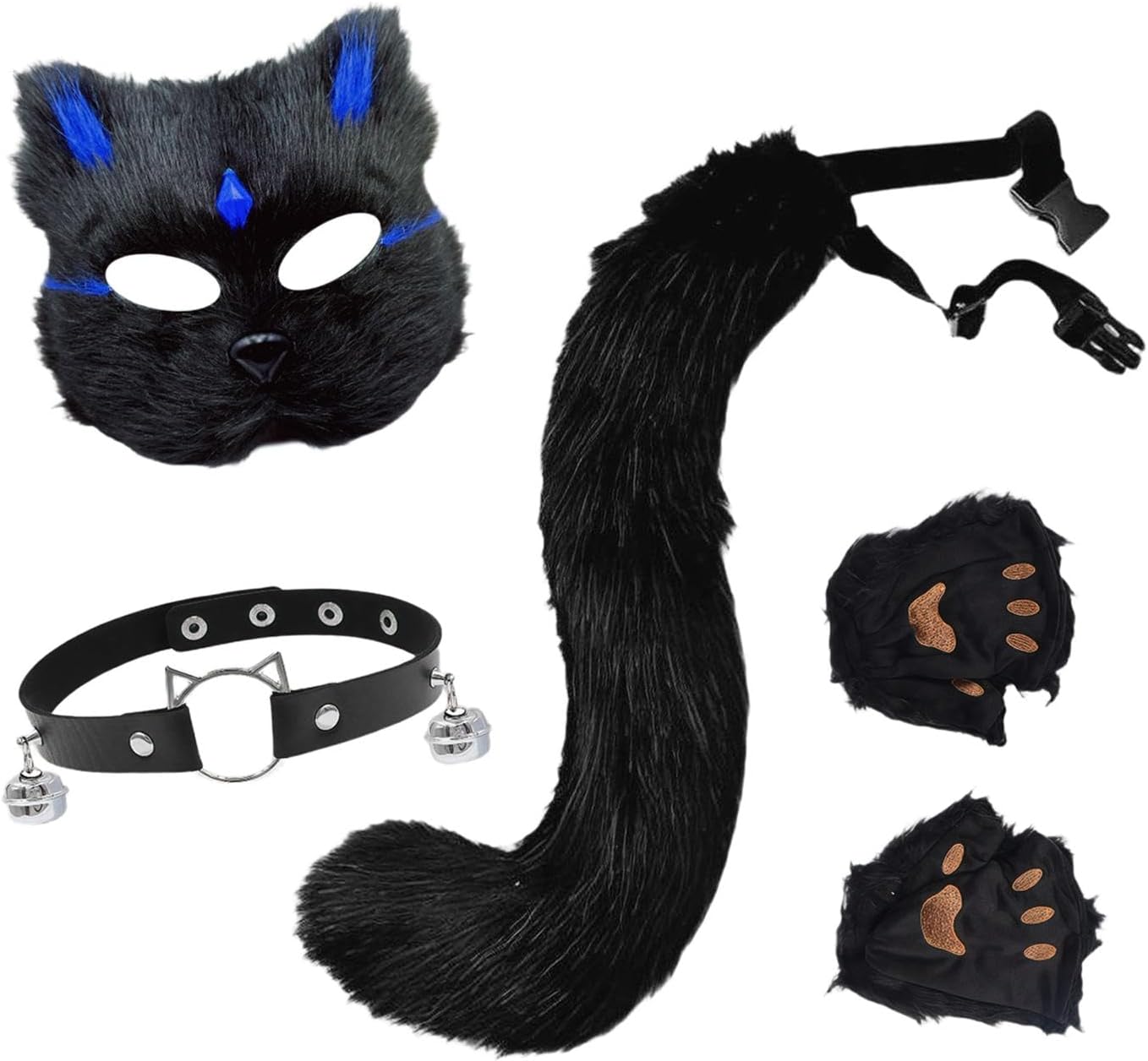 【Ampie occasioni】Il set cosplay con maschera e coda di animali è ampiamente adatto per Halloween, feste, carnevali, spettacoli teatrali, oggetti di scena per foto, spettacoli, feste a tema, travestimenti, giochi di ruolo, ecc. 【Ottimo regalo】Questo grazioso e accattivante set di maschera e coda per gatti è una meravigliosa scelta regalo per amici e familiari in occasione di compleanni, feste, festività, riunioni, ecc. 【Set Cosplay Animale】: Grazioso set di costumi cosplay di animali, include 1 maschera, 1 coda, 1 girocollo e 1 paio di guanti , ottimo per il cosplay di un gatto o di una 【Facile da indossare】 Questi accessori per cosplay di animali sono facili da indossare e da togliere, permettendoti di vestirti rapidamente. La coda ha una cintura regolabile, adatta a persone diverse 【Materiale di alta qualità】Il set di maschera e coda da è realizzato in peluche di alta qualità, affidabile, leggero e comodo al tatto