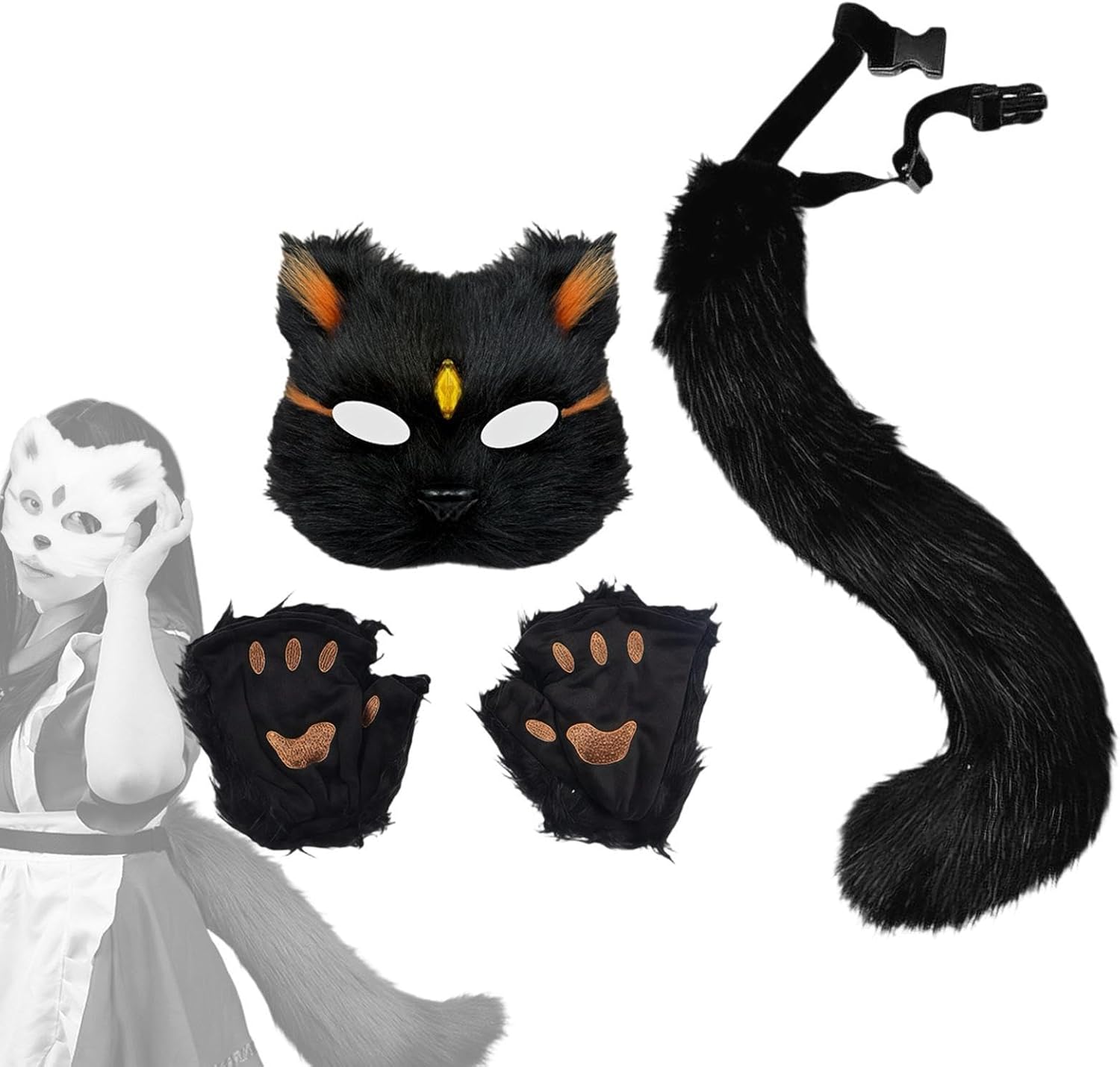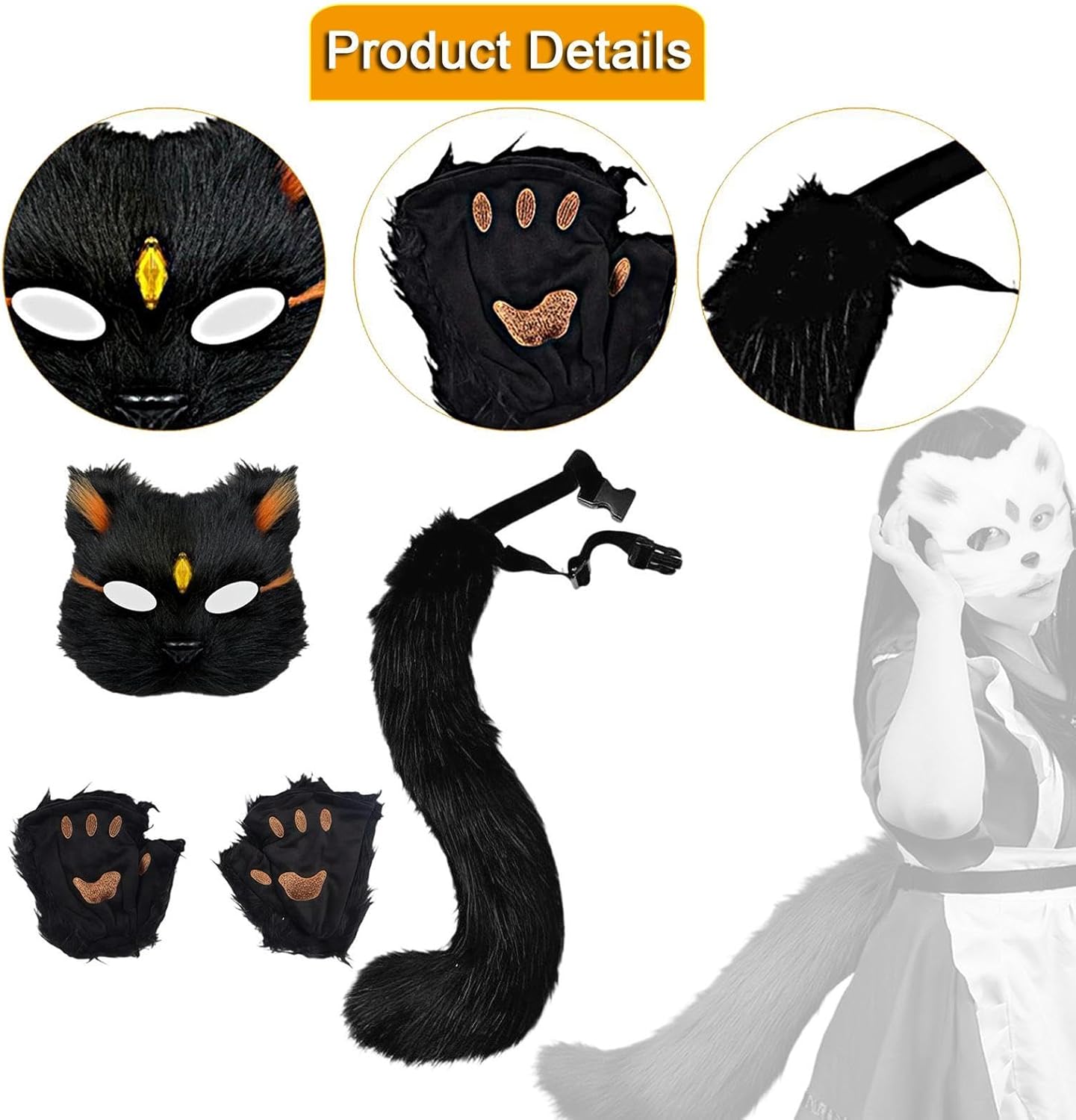 【Applicazione divertente】: il costume da spettacolo è un ottimo accessorio per varie occasioni, come feste di carnevale, cosplay, spettacoli teatrali, feste a tema animali, feste di Halloween, feste notturne, mascherate, Mardi Gras, feste notturne, sfilate di moda, lauree 【Aggiungi 】: la maschera da cosplay è fa distinguere dalla massa 【Uso semplice】: la coda di peluche è dotata di una fibbia che può essere legata intorno alla vita. Dimensioni: maschera di gatto di peluche: 20 cm x 20 cm / 7,87 pollici x 7,87 pollici; coda di animale: 50 cm x 8 cm / 19,69 pollici x 3,15 pollici 【Contenuto della confezione】: Questo set di costumi da animale include 1 coda, 1 maschera e un paio di guanti. È elegante e adatto al gioco di ruolo di Halloween. 【Materiale di alta qualità】: il set di costumi per animali è realizzato principalmente in morbido materiale di peluche, comodo e non si perde facilmente