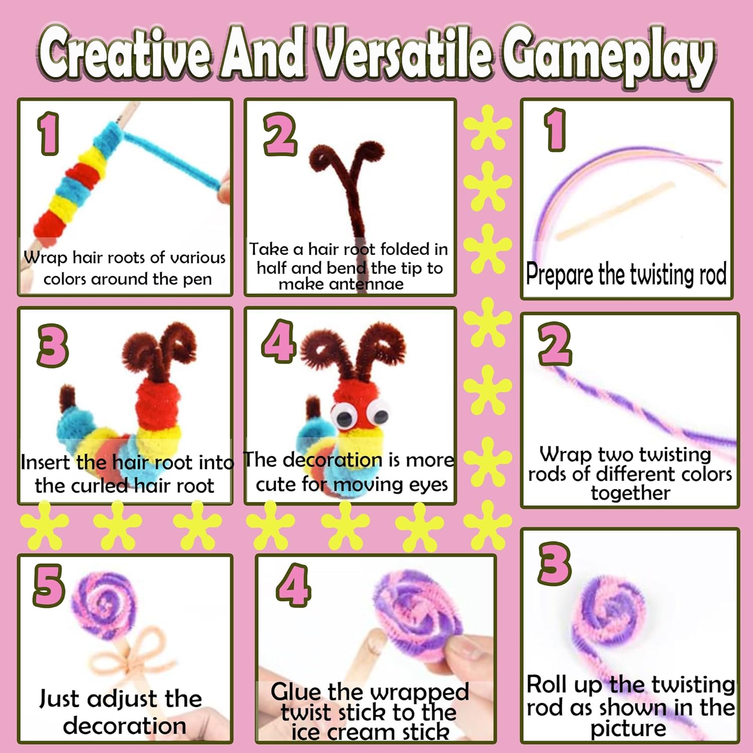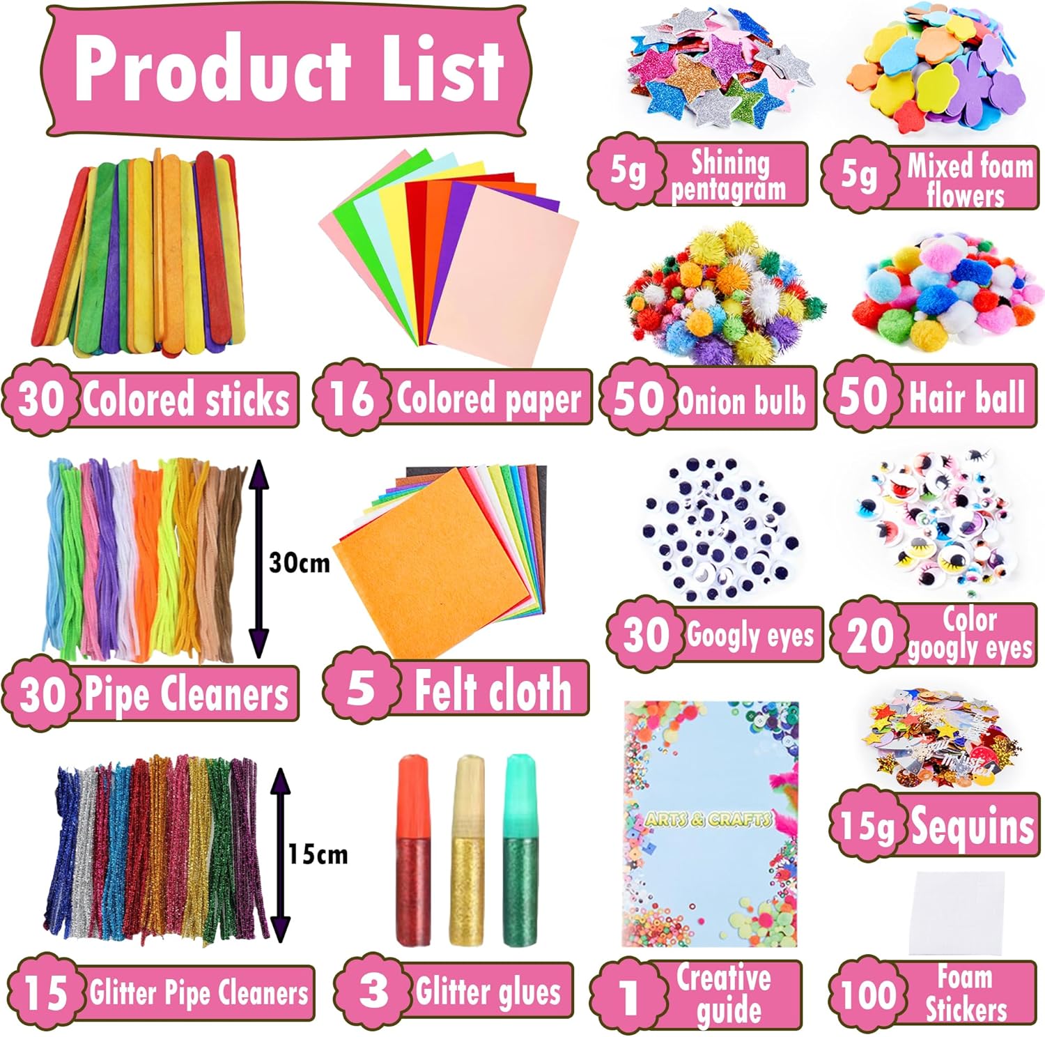 Kit artigianale per bambini: include un sacchetto di pentagrammi glitterati, 30 bastoncini / sacchetto di ghiaccioli colorati, un sacchetto di fiori EVA, paillettes, pompon, palline glitter, cartone A5, panno di feltro, colla spessa in schiuma, occhi appiccicosi, strisce di lana, forniture artistiche fai-da-te artigianali all-in-one per bambini e ragazzi. Riutilizzabile per una facile conservazione: questi bellissimi oggetti artigianali possono essere imballati e conservati su scaffali, decorazioni per stanze, ecc., E c'è una borsa che puoi usare per conservare tutti i tuoi materiali artistici, pulendo rapidamente e facilmente. Colori ricchi: contiene più di dieci materiali colorati, offrendoti molti diversi mestieri colorati tra cui scegliere e giocare, puoi creare forme e modelli con diversi accessori. Crea i tuoi modelli e forme preferiti secondo necessità per aiutare i bambini a sviluppare abilità pratiche, capacità di riconoscimento delle forme e capacità di riconoscimento del colore. Divertimento e creatività illimitati: scatena l'immaginazione del tuo bambino, sviluppa la creatività del tuo bambino attraverso possibili arti e mestieri, scopri più divertimento, trova e realizza opere più creative! Aiutare i bambini ad esprimersi liberamente e svilupparsi in tutti gli aspetti per arricchire ulteriormente il loro sviluppo. Regalo perfetto: questo super articolo di arti e mestieri può essere un bellissimo regalo per il tuo bambino nella tua vita, adatto a qualsiasi occasione di celebrazione come Capodanno, compleanno, Natale, ecc. O come ricompensa per il buon comportamento dei bambini, saranno presto felici e apprezzeranno questo kit artistico.
