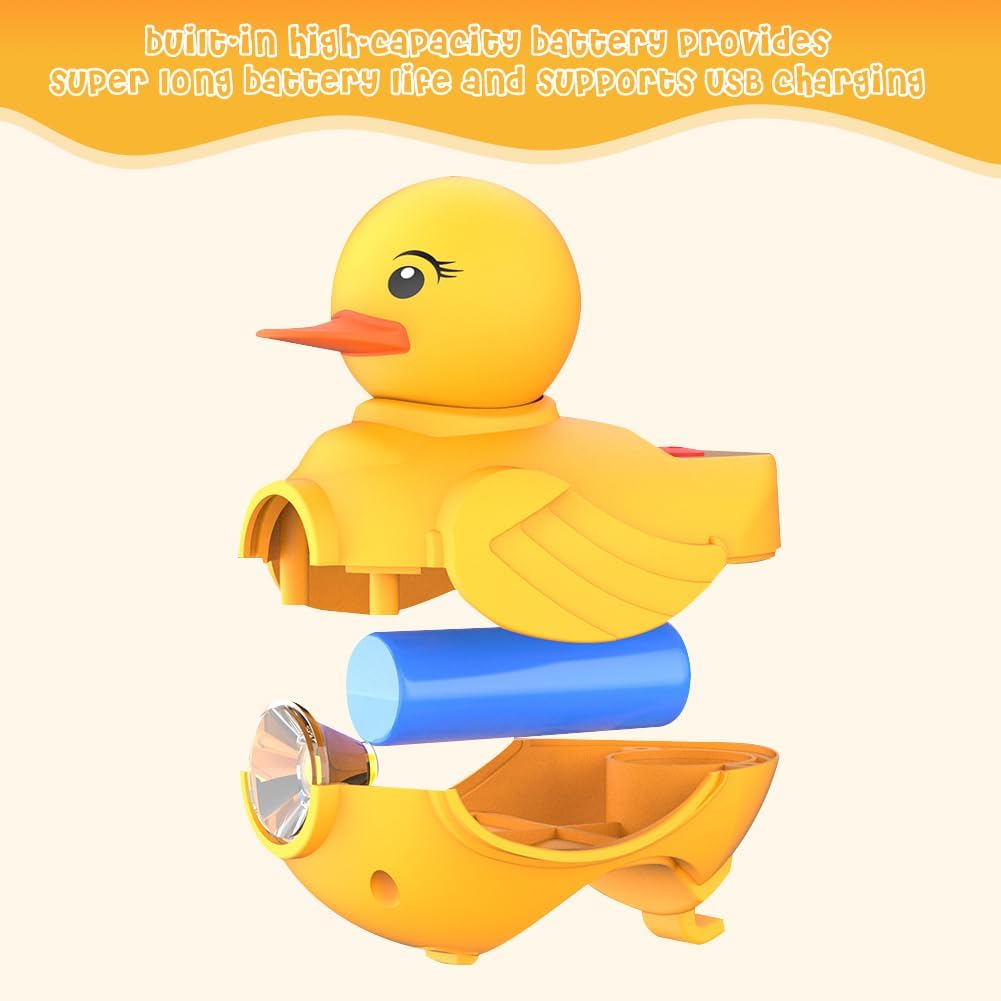 Illuminazione a LED luminosa e sicura per bambini, graziose luci a LED per una chiara visibilità al buio. Tre modalità di illuminazione: alta, bassa, lampeggiante, aumentano la sicurezza e rendono i viaggi più sicuri al crepuscolo e alla notte. Design robusto e adatto ai bambini, realizzato in silicone e plastica di alta qualità, antiurto, resistente alle intemperie, simpatica forma a anatra e adatta ai bambini. Il supporto flessibile in silicone si adatta facilmente a scooter, zaino, casco o passeggino. Ricaricabile e durevole Dotato di una batteria ricaricabile USB per 2-8 ore di autonomia. Facile ricarica tramite power bank o in auto – ideale per l'uso quotidiano senza dover sostituire la batteria. Più divertimento con il clacson integrato Con 120 dB di suoni divertenti del clacson, la luce non solo garantisce sicurezza ma anche un divertimento di gioco. I bambini scoprono i suoni e possono farsi sentire in modo creativo. Montaggio semplice e senza attrezzi grazie al passante elastico in silicone si applica o si rimuove in pochi secondi. Compatto, leggero e ideale da portare con sé, perfetto per la protezione dai furti o per un rapido utilizzo in viaggio.