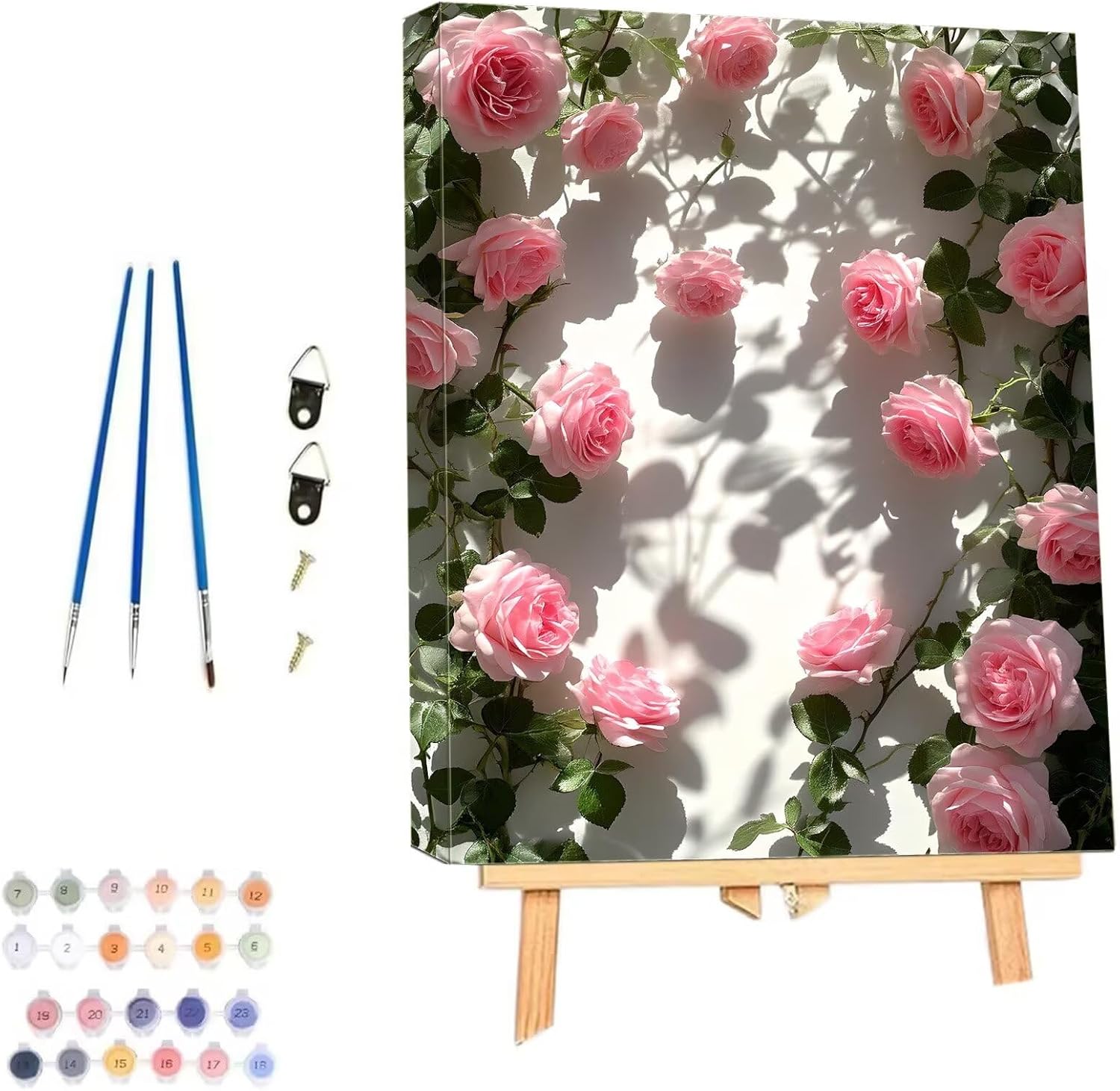 Luce solare Rosa Dipingere con i Numeri, Dipingere con i Numeri Bambini, Passatempo per Adulti, Dipingere con i Numeri Kit Completo, Colori Acrilici e Pennelli Dipingere, Decor Domestica 70x90cm q-941