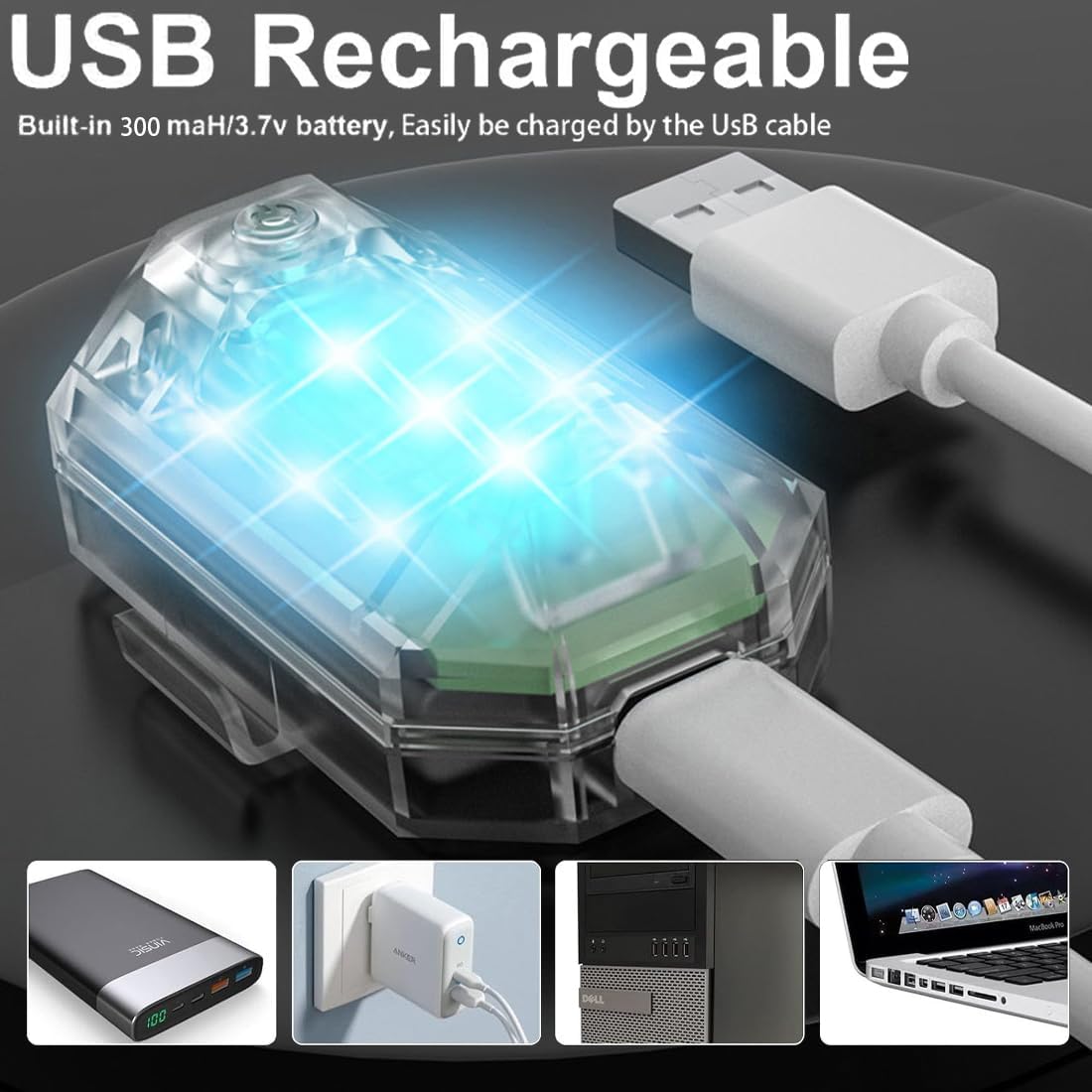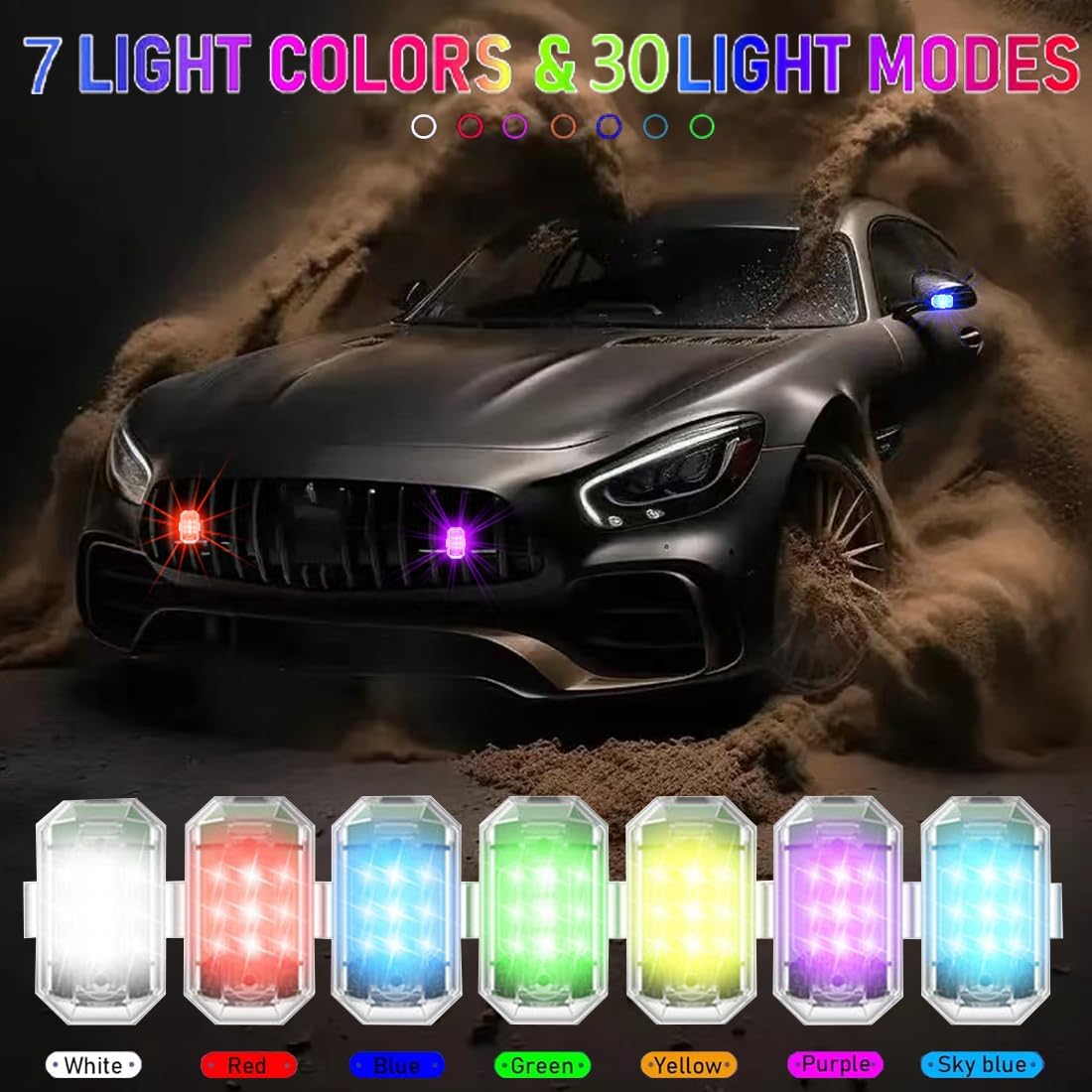 Luci stroboscopiche dell'aeroplano:le luci stroboscopiche dell'aeroplano LED sono una mania per gli appassionati di sport all'aperto.Il nuovo aspetto,le luci stroboscopiche dell'aeroplano più fresche ed emozionanti e le luci colorate hanno attirato l'attenzione di molti spettatori. 7 colori e 7 modalità di illuminazione:Sette colori LED possono essere commutati,che può aggiungere atmosfera auto luce bianca / luce rossa / luce verde luce blu luce blu,luce gialla,luce viola / blu ghiaccio,regolazione della modalità:ciclo lampeggiante / ciclo lento flash / Fast flash / flash lento / luce costante / modalità di aviazione civile. Impermeabile:Le nostre luci a LED sono impermeabili testate,non preoccupatevi di danneggiare le luci della bicicletta,adatto per qualsiasi tempo,ma si prega di non lasciarli in acqua per troppo tempo. Lunga durata della batteria:Batteria incorporata da 350mAh,interfaccia USB,computer,caricabatterie,power bank possono essere caricati,La luce dell'aereo di controllo remoto senza fili può commutare a distanza la modalità di luce entro 5 metri di volo in aria.Rispetto alle recenti luci stroboscopiche,le nuove luci stroboscopiche hanno un'esperienza più funzionale. Alta qualità:Chip led ad alta luminosità incorporato,la luminosità è migliore rispetto ad altre luci stroboscopiche comuni.le luci stroboscopiche del drone possono aiutare notevolmente a mantenere il vostro drone più facilmente identificato di notte o in condizioni di nebbia per garantire la sicurezza.