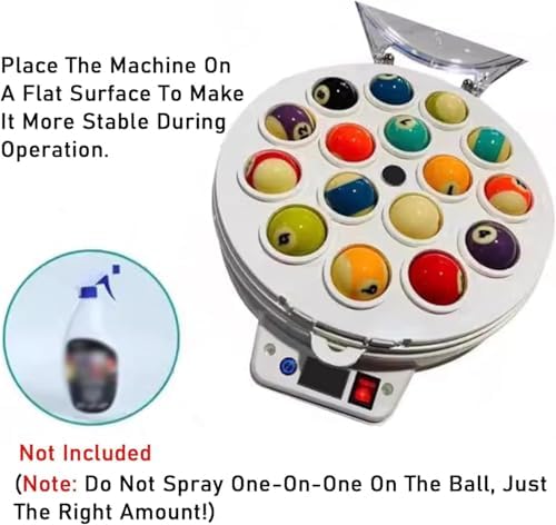 Guida vocale: dispone di trasmissioni vocali per segnalare l'inizio e la fine del processo di lavaggio della palla, garantendo un facile funzionamento senza monitoraggio costante. Struttura durevole: il guscio in plastica ad alta resistenza della rondella a sfera da biliardo è progettato per durare nel tempo, offrendo una soluzione leggera ma robusta che resiste ai danni. Compatibilità versatile: viene fornito con 2 dischi a sfera (16 e 22 palline) per ospitare sia snooker inglese che biliardo americano, soddisfacendo le esigenze di tutti gli appassionati di biliardo. Pulizia efficiente: dotato di due porte di lavaggio per una pulizia simultanea fino a 22 palline, ottenendo una pulizia accurata in meno di 2 minuti per un aspetto come nuovo. Gameplay migliorato: risolve i problemi comuni della palla da biliardo come ottusità e viscosità, fornendo un'esperienza di gioco superiore garantendo che le palline siano pulite e chiare.