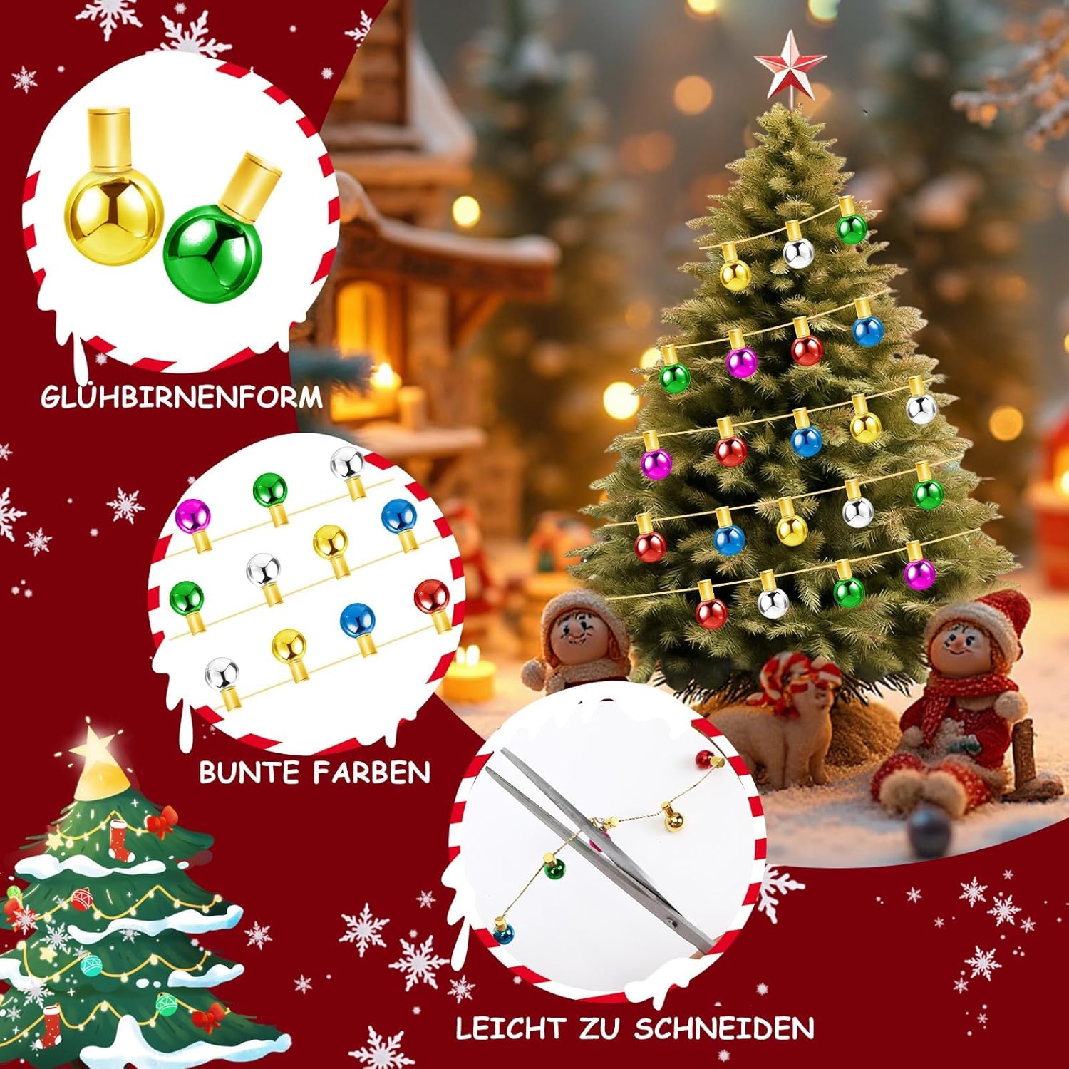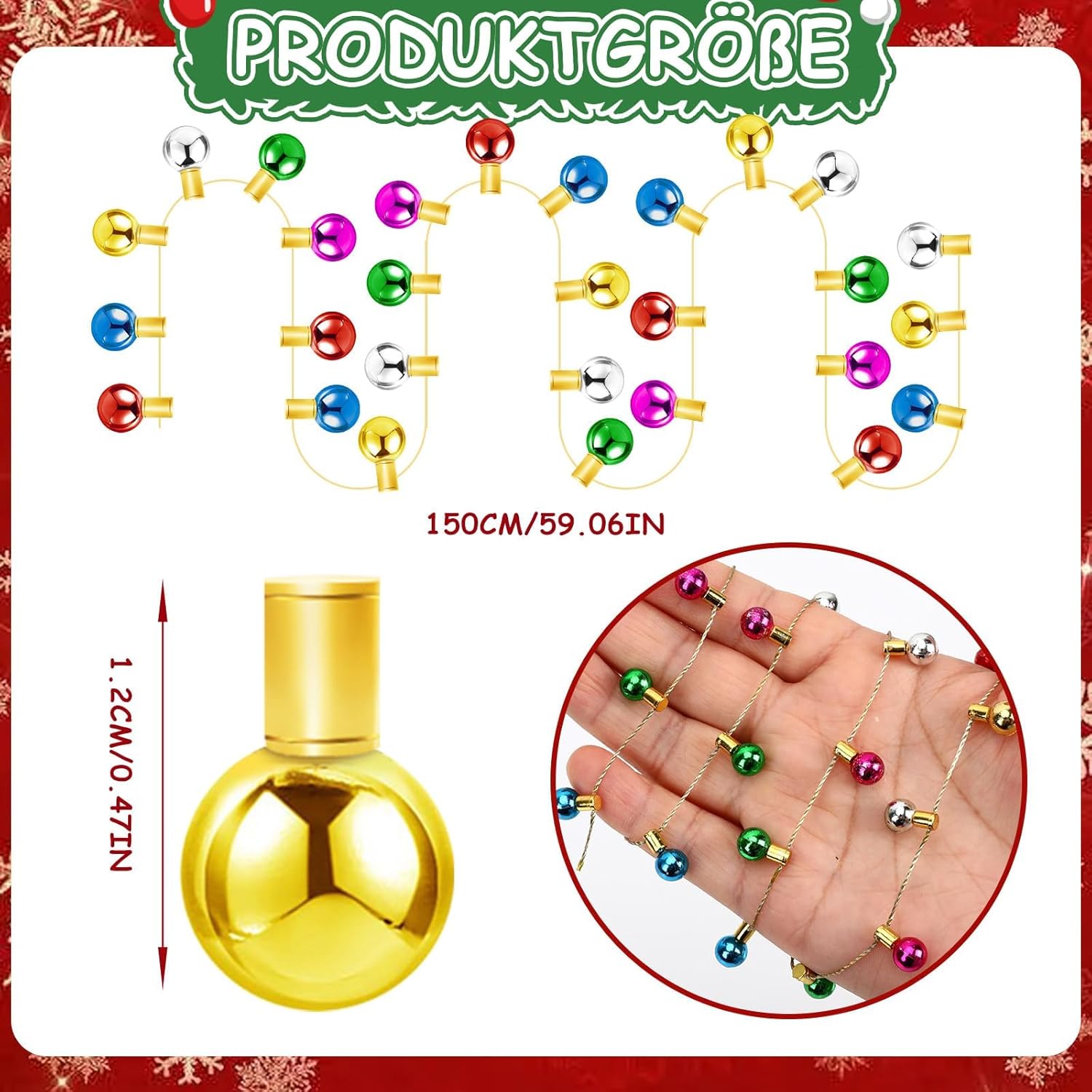 Misura adatta: ogni piccola miniatura di gnomo con luci fatate misura ca. 1,2 x 0,7 cm. Questa dimensione è progettata per modelli in miniatura come case delle bambole e decorazioni di gnomi e può essere adattata a una varietà di decorazioni. Il design delle dimensioni delle lucine assicura che possano essere naturalmente integrate nella scena in miniatura e crea uno squisito effetto decorativo. Accessori per casa delle bambole: queste lucine colorate per gnomi lunghe 150 cm sono progettate per le decorazioni delle case delle bambole e degli gnomi natalizi. La lunghezza ideale consente un facile adattamento alle esigenze delle diverse scene in miniatura. Sia come decorazione parziale per una piccola casa delle bambole o come decorazione generale per una scena più ampia, può essere facilmente visualizzata. Materiali di alta qualità: queste mini lucine colorate sono realizzate con materiali di alta qualità come plastica, filo d'oro e perline elettrolitiche. Questi materiali di alta qualità garantiscono una lunga durata. Le luci della catena sono infrangibili e possono essere facilmente piegate per adattarsi a qualsiasi arredamento. Le perline elettrolitiche hanno una superficie liscia e luminosa e un colore ricco e duraturo, quindi mantengono la loro brillantezza anche dopo un uso a lungo termine. Accessori colorati in miniatura: queste mini lucine colorate sono realizzate con perline elettrolitiche in vari colori vivaci, tra cui rosso, argento, blu, viola, oro, verde, ecc. I colori vivaci aggiungono più colore alla tua decorazione. Si prega di notare che questa è solo una decorazione e non emette luce. Un meraviglioso regalo di Natale: questo gnomo colorato, lungo 150 cm, è un regalo di Natale ideale. Accessori per casa delle bambole Gli accessori per gnomi sono ideali per i bambini che amano le case delle bambole e gli gnomi di Natale, per chi ama l'artigianato o ama i modelli in miniatura. Il set di accessori per la casa delle bambole è un regalo unico e premuroso che trasmette profonda cura e benedizioni