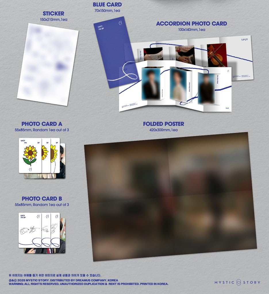 From South Korea. 100% Original Brand New Item. Reflected in the HANTEO and GAON Charts. Release Date : 2025.10.30 Package : CD & Holder + 72p Photobook + Sticker + Blue Card + Accordion Photocard + Photocard A (Random 1 out of 3) + Photocard B (Random 1 out of 3) + Folded Poster (On Pack)