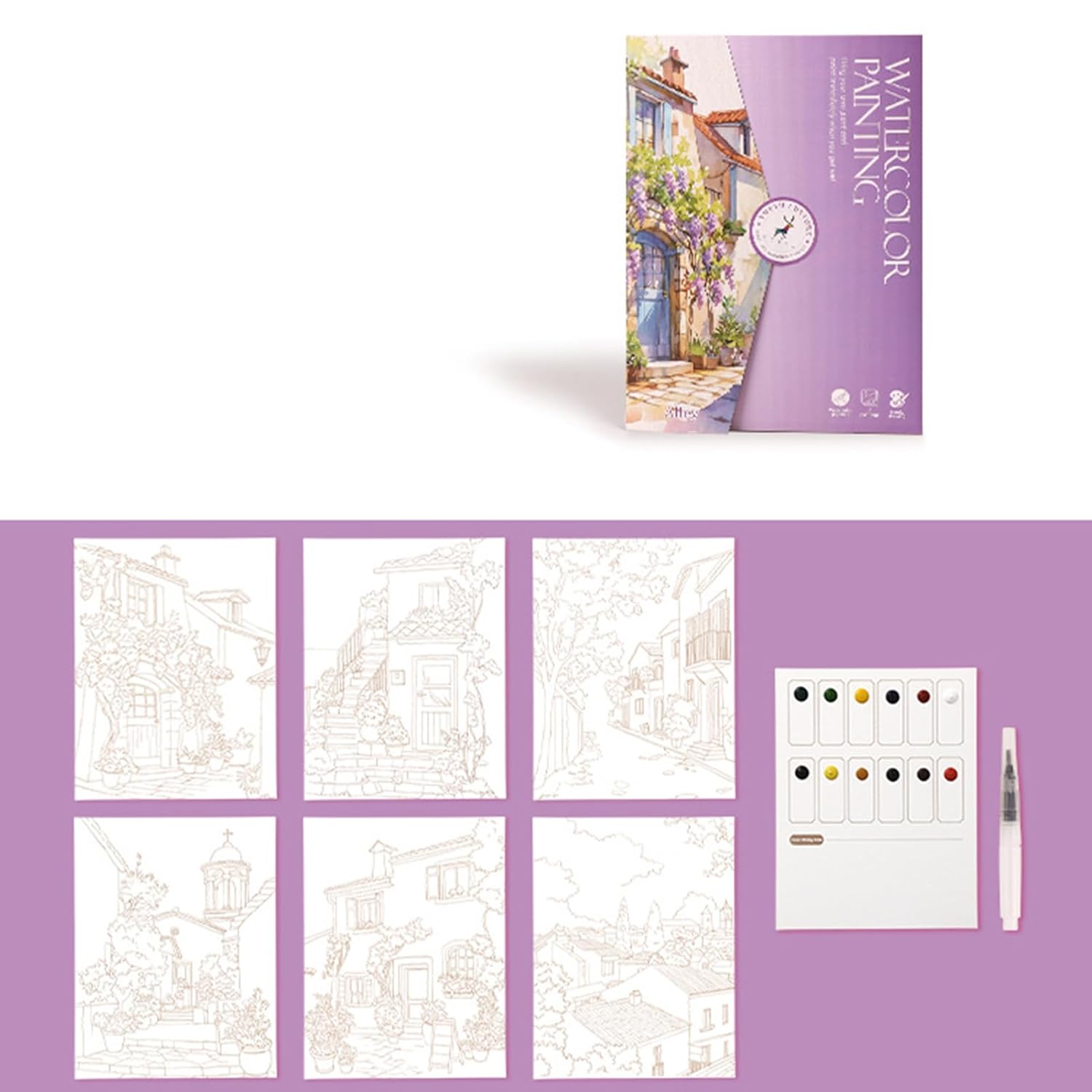 Develop Abilities: Encourage problem-solving skills, nurture patience, develop fine motor abilities, and spark creativity in this Watercolor Workbook Durability Assured: Utilize high-quality components, including safe, washable paint and an ergonomically designed brush, for easy handling and smooth strokes on excellent, thick paper to achieve precise, professional results Handy to Apply: With watercolor brushes and paints provided, you can easily wet the brush, dip it in the paint, and then fill in the charming watercolor pages with Easy to Carry: Small in size and light in weight, this watercolor workbook is easy to carry outdoors, allowing you to release your creativity anytime, anywhere Wonderful Present: Stimulate the creative minds of boys and girls with this Watercolor Workbook, a thoughtful present perfect for birthdays, Easter, Children's Day, Christmas, and more, nurturing artistic ingenuity and originality