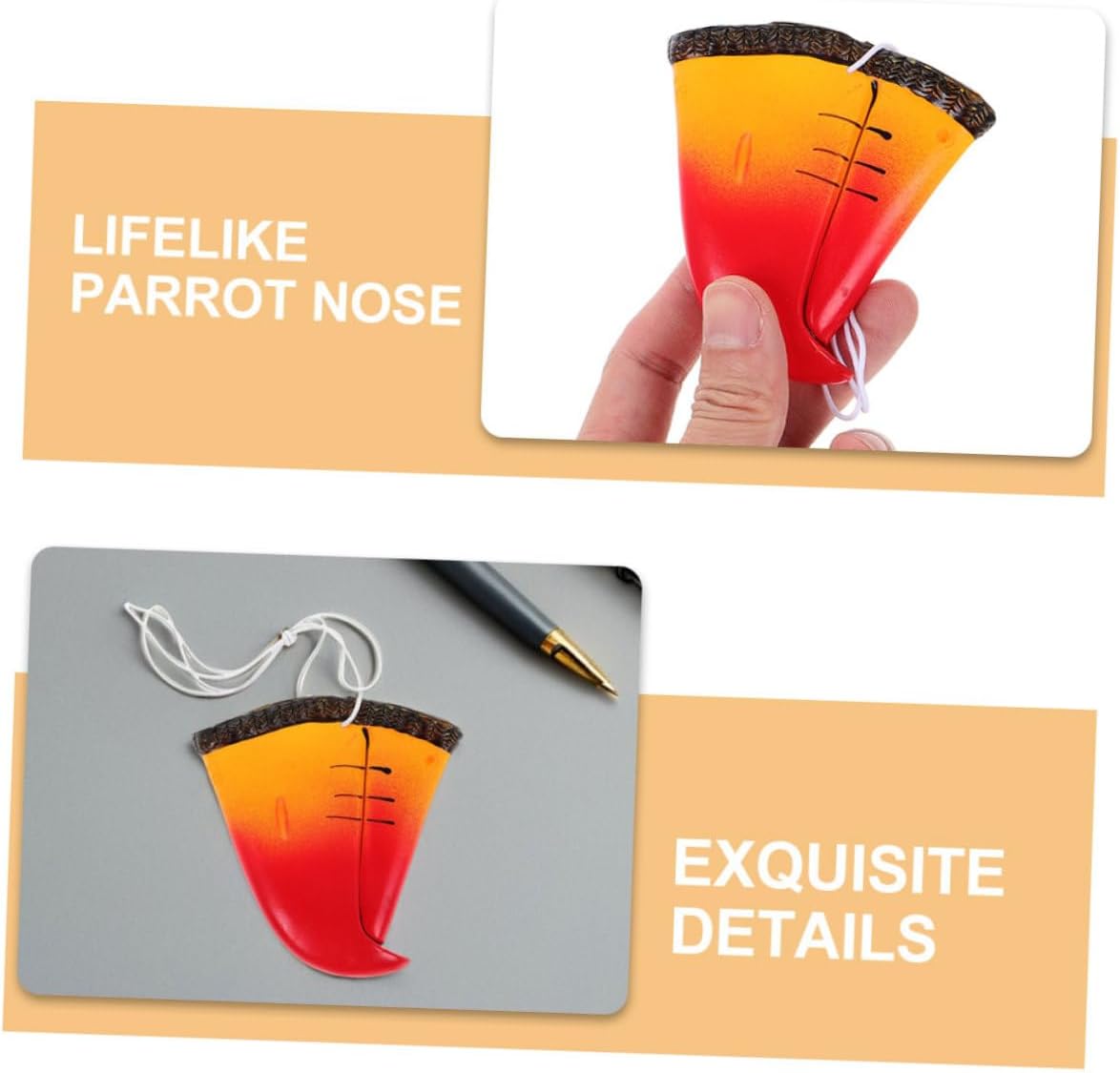 dei pacchetti 6 pezzi x puntelli per naso di pappagallo Caratteristiche -Materiale confortevole: realizzato in morbida gomma, che lo rende leggero e comodo da indossare. - Look autentico: la decorazione dettagliata del naso del pappagallo crea un accessorio per feste realistico e divertente. - per il cosplay: valorizza il tuo costume da cosplay, rendendolo più coinvolgente e divertente. -Materiale: maschera nasale da pappagallo -Dimensioni: 8,00X7,50X1,00 cm/3,14X2,95X0,39 pollici supporto per pappagallo - Fissaggio senza sforzo: fissa facilmente il naso del pappagallo tuo costume da pappagallo finto decorativo. -Colore: costume da multicolore - diversi utilizzi: può essere utilizzato come giocattolo per , come accessorio per il palcoscenico e per la fotografia. Descrizione della merce Giocattolo per uccelli e animali Migliora il tuo cosplay di animali con questa decorazione per il naso di pappagallo. I giocattoli per pappagalli sono ideali per che per adulti, aggiungono un tocco giocoso a qualsiasi evento, assicurando a tutti un momento memorabile. Cosplay di Halloween Il suo aspetto realistico lo rende un accessorio versatile per vari costumi, divertenti da a travestimenti più animali