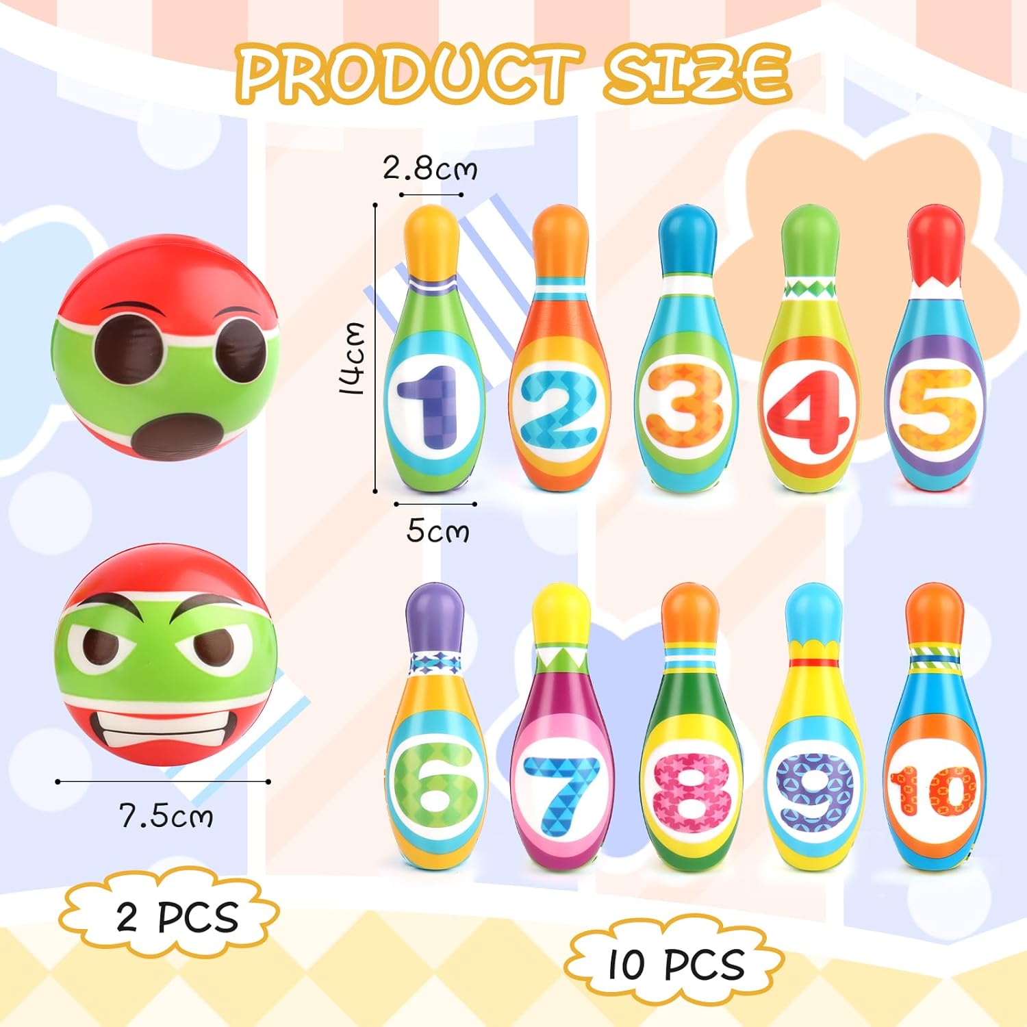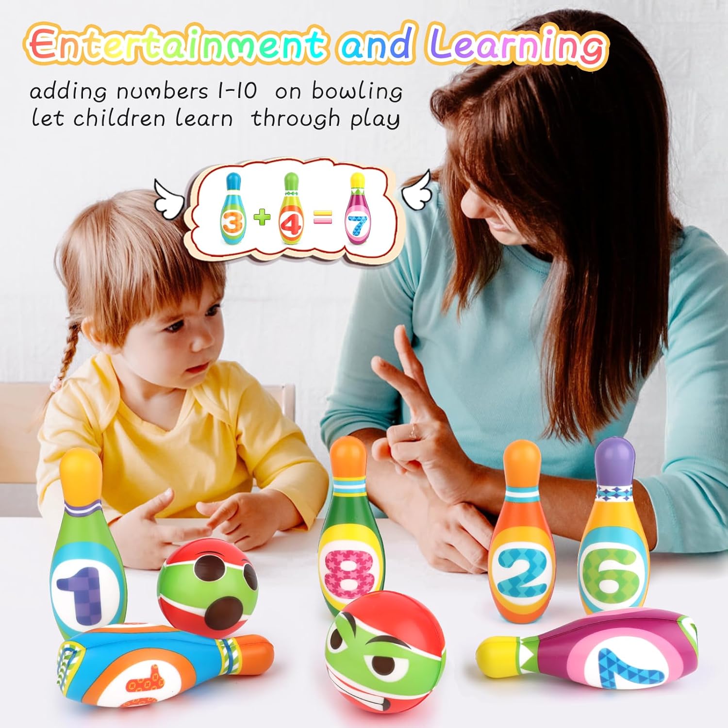 MATERIALE IN SCHIUMA SICURO: questo set da bowling per bambini è realizzato in materiale espanso di alta qualità. Si prega di giocare sotto la supervisione di un adulto! SET DA BOWLING: Il gioco dei birilli per bambini viene fornito con 10 birilli in schiuma e 2 palle da bowling in schiuma. Sui birilli ci sono dieci numeri colorati, da 1 a 10. Non solo decora il set da bowling, ma incoraggia anche i bambini a contare. I bambini vogliono metterli in ordine numerico. SICURO DA GIOCARE: il design speciale in schiuma è sicuro per far giocare i bambini. ideale per bambini piccoli e in età prescolare. Giocattolo leggero con palla da bowling, può essere facilmente trasportato per giocare con gli appuntamenti. GIOCO ALL'INTERNO: è adatto per giocare all'interno o nella stanza. Promuovere le capacità motorie generali, l'equilibrio e la coordinazione occhio-mano. Il set da bowling per bambini è autonomo! Aiuta il tuo bambino a sviluppare abilità spaziali, capacità motorie, abilità sociali, capacità di comunicazione, coordinazione occhio-mano e abilità matematiche. SCELTA DEL REGALO: Progettato appositamente per i bambini, il nostro set da bowling unisex adatto all'età aiuterà a tenere i tuoi bambini occupati, impegnati e divertiti durante i giorni! Inoltre, i tuoi figli trascorreranno meno tempo giocando ai videogiochi e più tempo svolgendo un’attività vecchio stile.