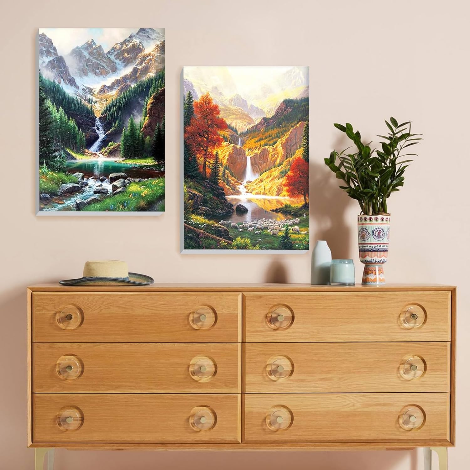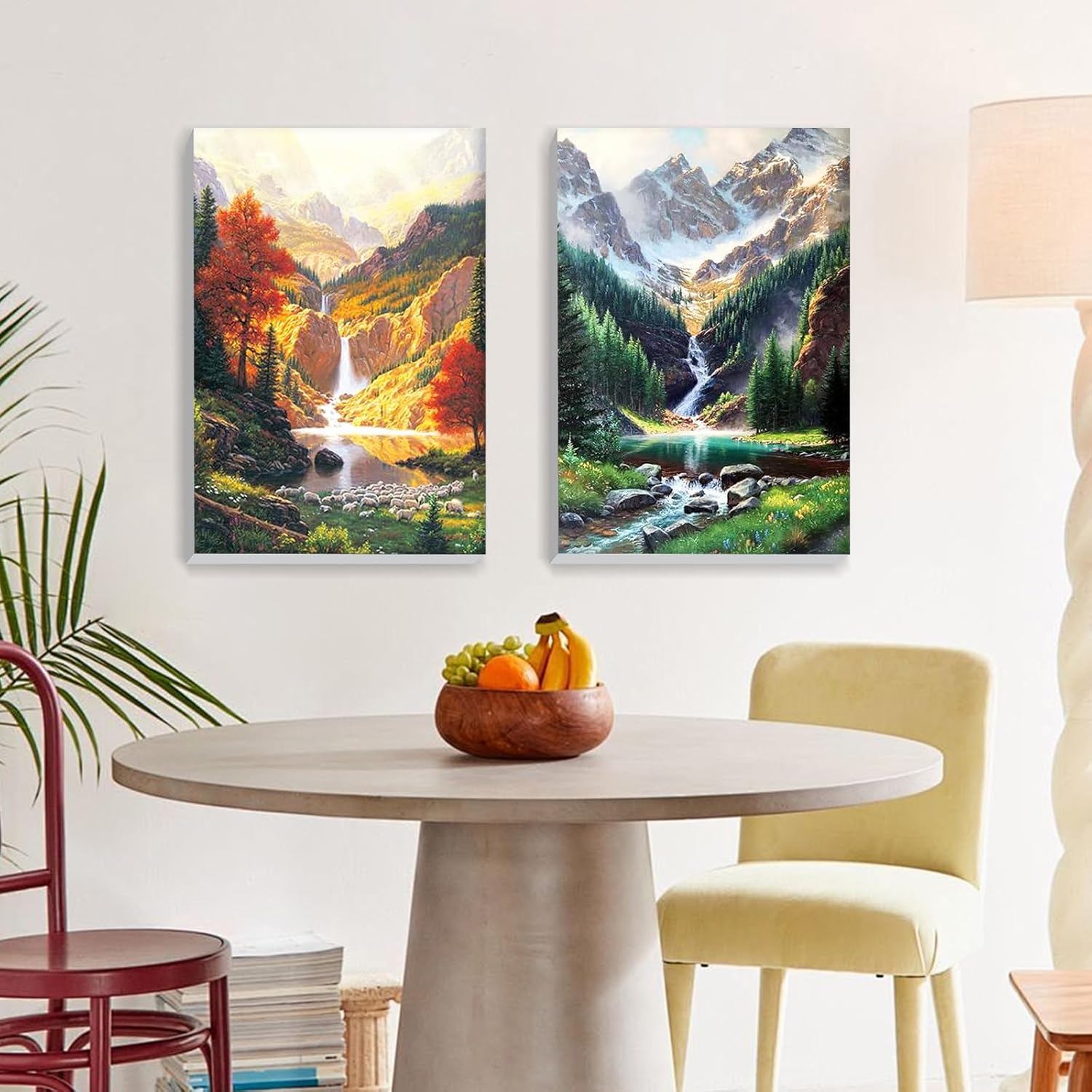 Lxmsja 2 Pezzi Paesaggio Dipingere con i Numeri Adulti Con Cornice, Paesaggio Paint by Numbers Kit Principianti Con 3 Penne, Hobby Creativi Adulti Idee Regalo Decorazioni Casa, 20x30cm