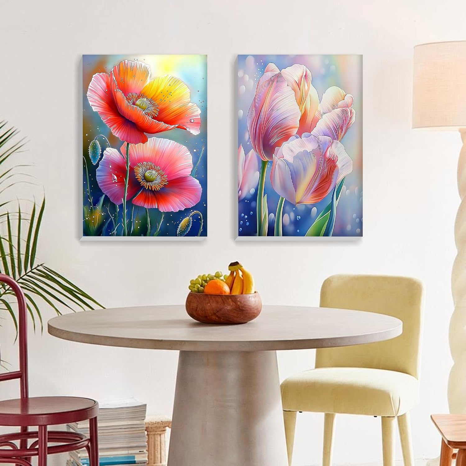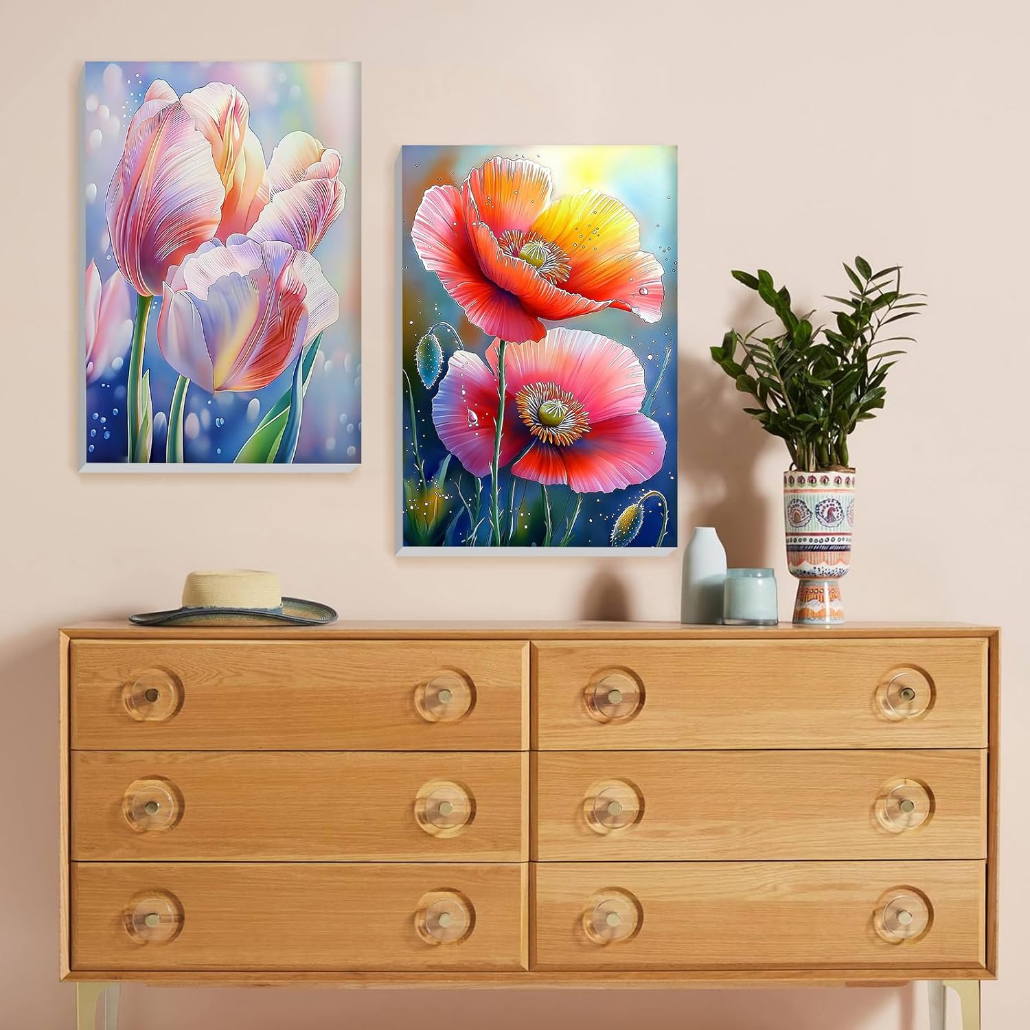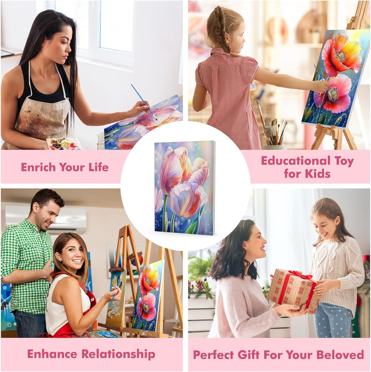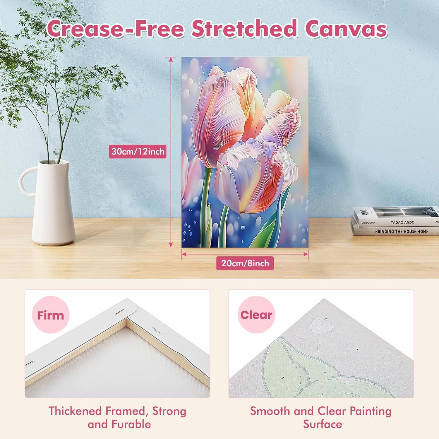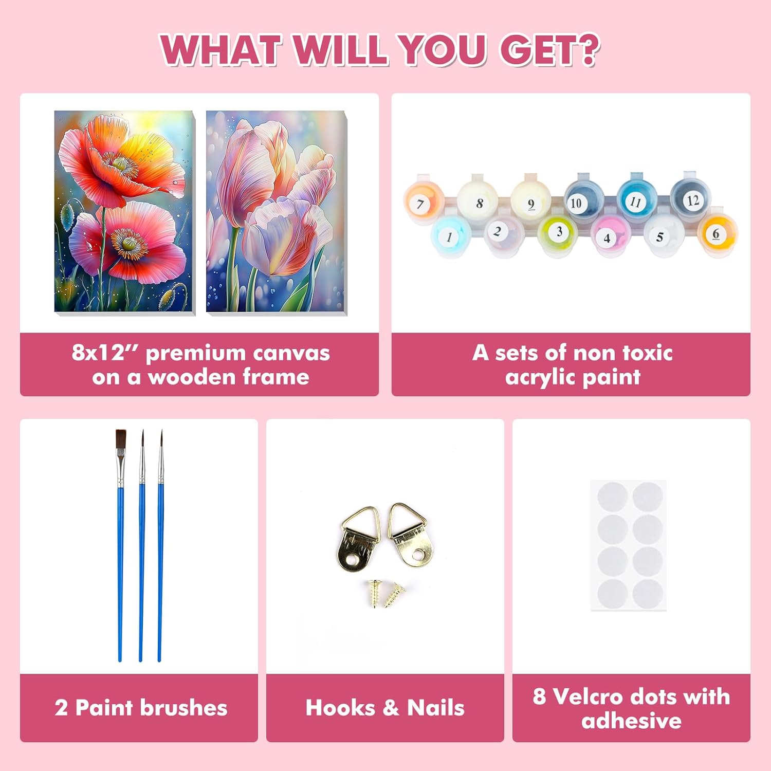 Lxmsja 2 Pezzi Tulipano Dipingere con i Numeri Adulti Con Cornice, Fiore Paint by Numbers Kit Principianti Con 3 Penne, Hobby Creativi Adulti Idee Regalo Donna Decorazioni Casa - 20x30cm