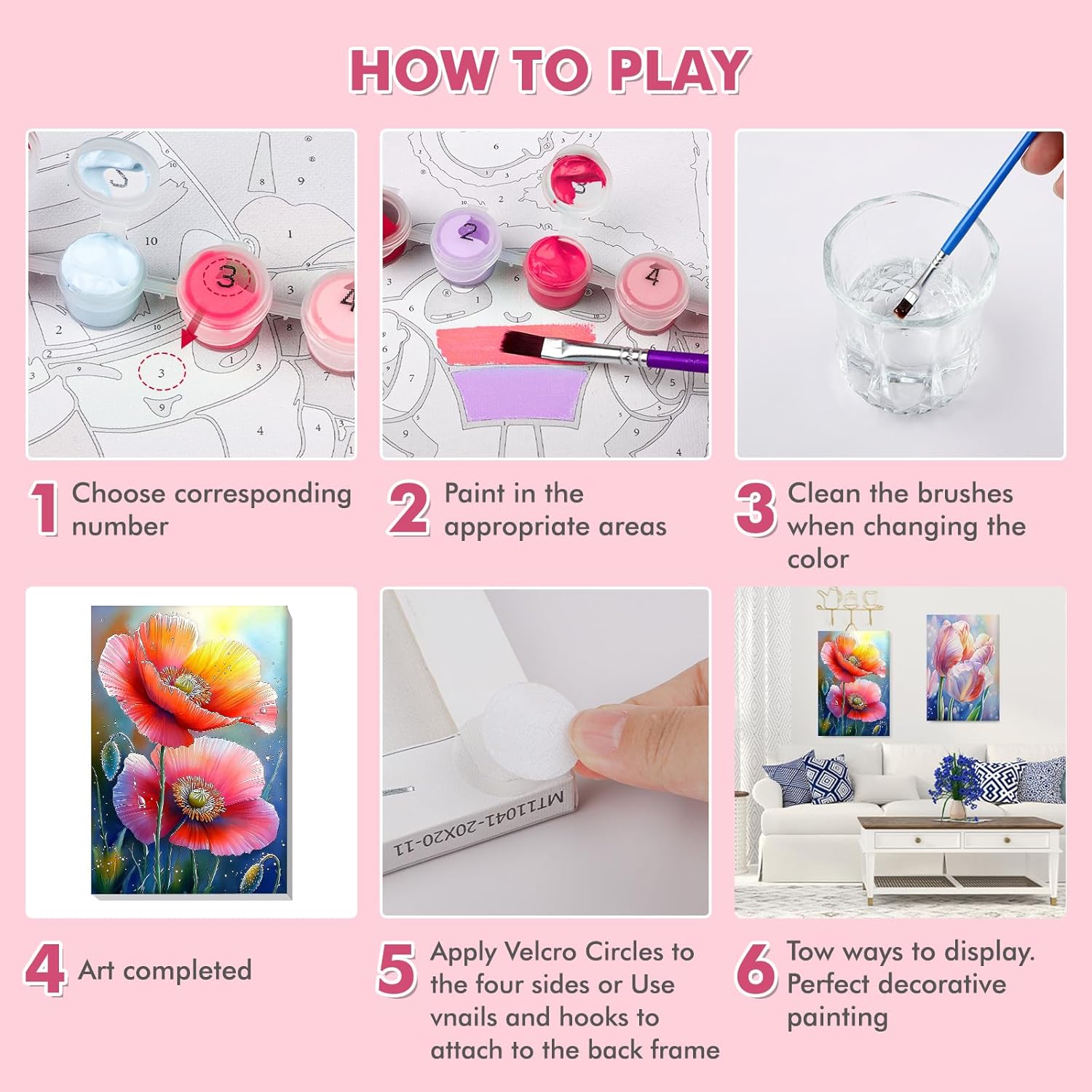 Cosa Riceverai: Ogni quadro paint by numbers include una tela con telaio in legno e 3 pennelli con diverse punte. Appendi il loro capolavoro facilmente utilizzando i Ganci inclusi o i Punti adesivi per una decorazione murale sorprendente Facile per Tutti: Lxmsja dipingere con i numeri per adulti principianti con tela ad alta densità, facile da colorare e leggere, ogni tela è contrassegnata con numeri che corrispondono alla vernice acrilica, rendendola facile e divertente sia per principianti che per esperti Vernice Acrilica Salutare: Lxmsja paint by numbers kit presenta vernice acrilica sana e sicura per colori vibranti e duraturi con una copertura eccellente. Si lava facilmente con acqua e sapone. La stampa chiara dei numeri riduce la fatica agli occhi per un'esperienza di pittura facile Goditi il Divertimento del fai da te: Quando completi i kit di pittura a numeri, potrai aumentare il tuo senso di realizzazione, ridurre lo stress, regolare le emozioni, coltivare la pazienza. Crea il tuo capolavoro da esibire con orgoglio nel tuo salotto, camera da letto o studio Dipingere con i numeri adulti bambini: I nostri kit di pittura a numeri su tela sono un'ottima idea regalo per compleanni, anniversari, festa della mamma, ringraziamento, Natale, San Valentino e qualsiasi altra occasione. Ordina ora, lascia che il tuo artista interiore brilli