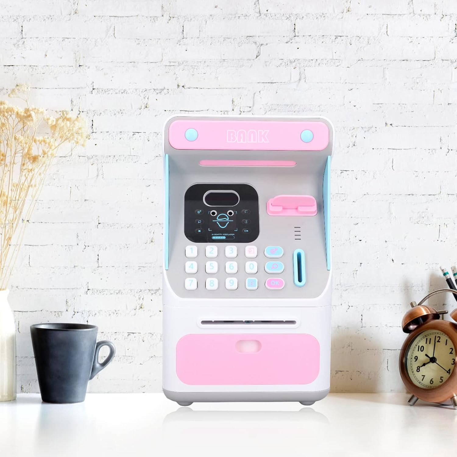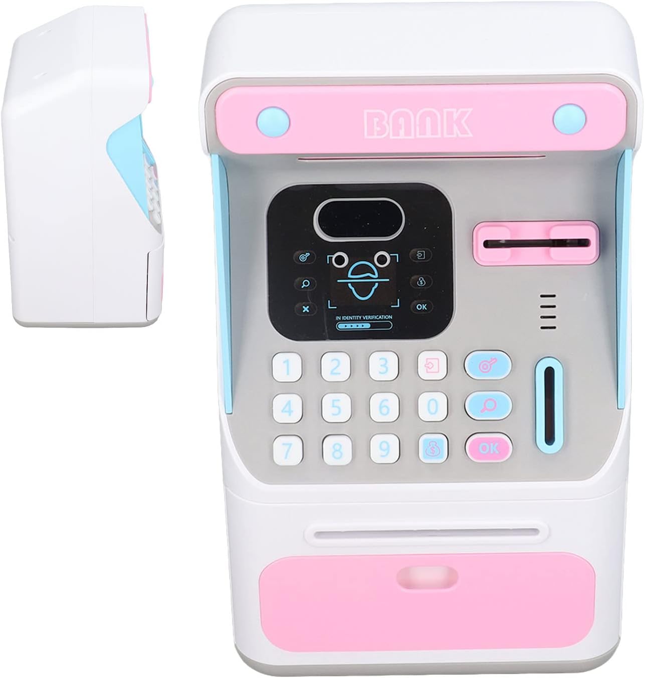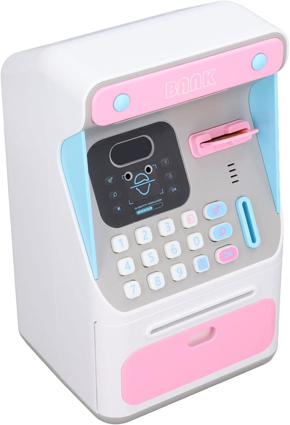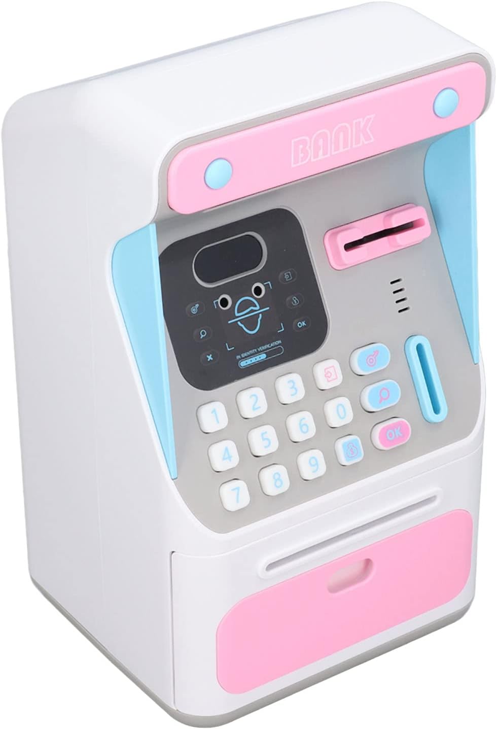 [Banca di risparmio di grande capacità] Questa banca bancomat per bambini vanta un interno spazioso in grado di contenere fino a 100 banconote che lo rendono per insegnare ai bambini il valore del risparmio di denaro. La generosa capacità incoraggia i bambini a sviluppare sane abitudini finanziarie mantenendo i loro risparmi sicuri e organizzati in un posto conveniente. [Advanced Face Recognition Technology] sperimenta il dei risparmi con la nostra innovativa funzione di riconoscimento del volto che aggiunge un tocco tecnologico entusiasmante alle tradizionali maiali. I bambini adoreranno l'atmosfera futuristica di sbloccare la propria banca con il riconoscimento facciale che fa risparmiare denaro come un gioco divertente piuttosto che un lavoro ingrato. [Protezione da password ] Mantenere il risparmio sicuro con un di password 4digit personalizzabile 0000 che garantisce che gli utenti autorizzati possano accedere ai contenuti. La banca rimane bloccata in modo sicuro se viene inserita la password sbagliata, fornendo tranquillità che il denaro dei bambini è protetto dall'accesso non autorizzato. [Caricamento automatico di banconote] Il di bobina automatica intelligente rende il risparmio senza sforzo semplicemente posizionare una banconota sulla bobina e guardarla scomparire senza intoppi in banca. Questa comoda caratteristica elimina la frustrazione di inserire manualmente le bollette che rendono il processo di risparmio rapido e divertente per i giovani utenti. [Design durevole per l'infanzia] Realizzato con plastica robusta di alta qualità Questa banca di denaro è costruita per resistere all'uso entusiasta dai bambini. Il design del mockup incentrato sulla sicurezza garantisce che non ci sono bordi affilati mentre la costruzione robusta garantisce una durata per anni per anni di risparmio.