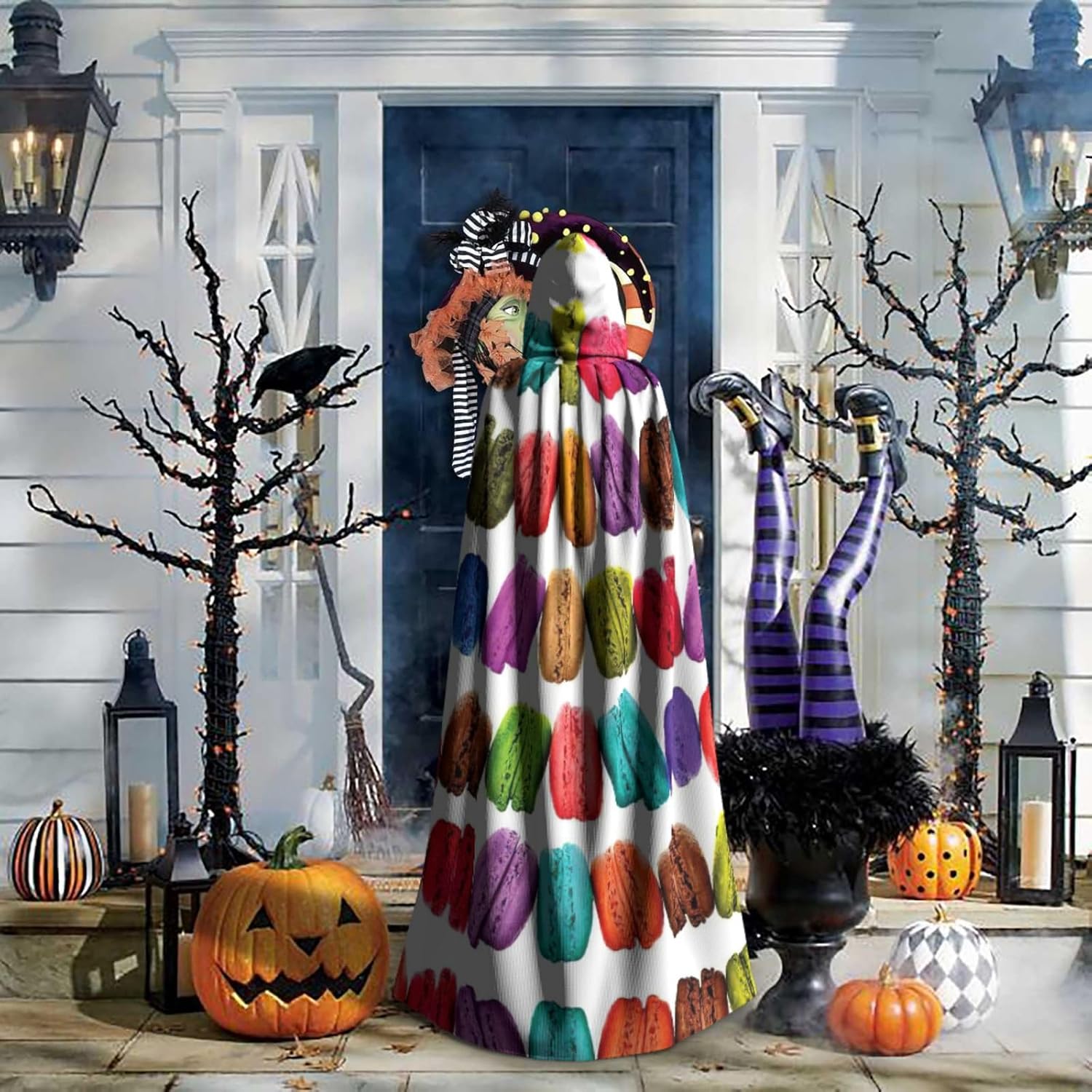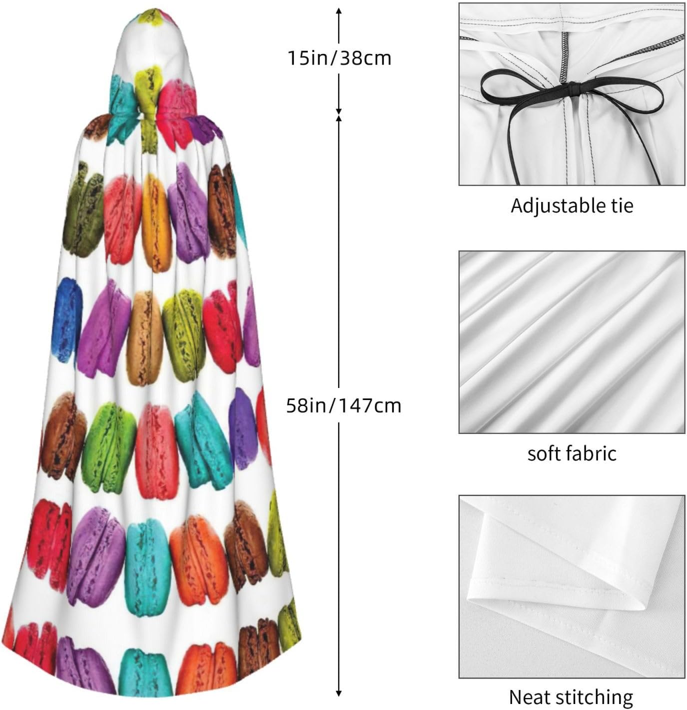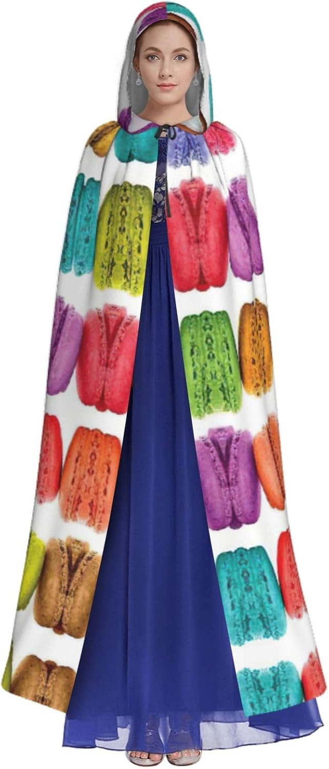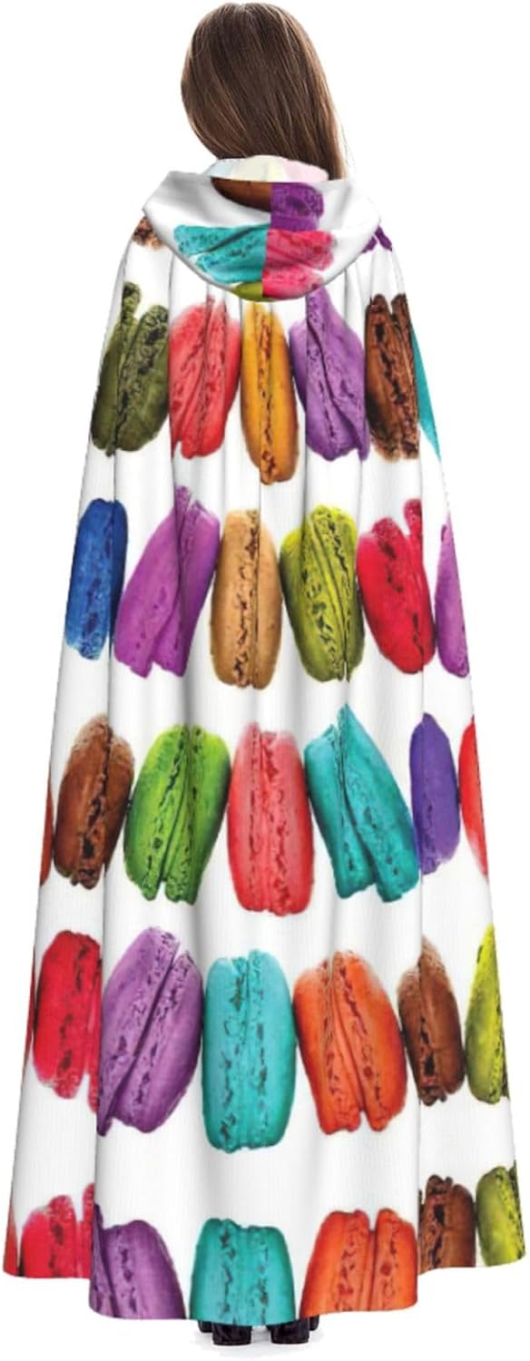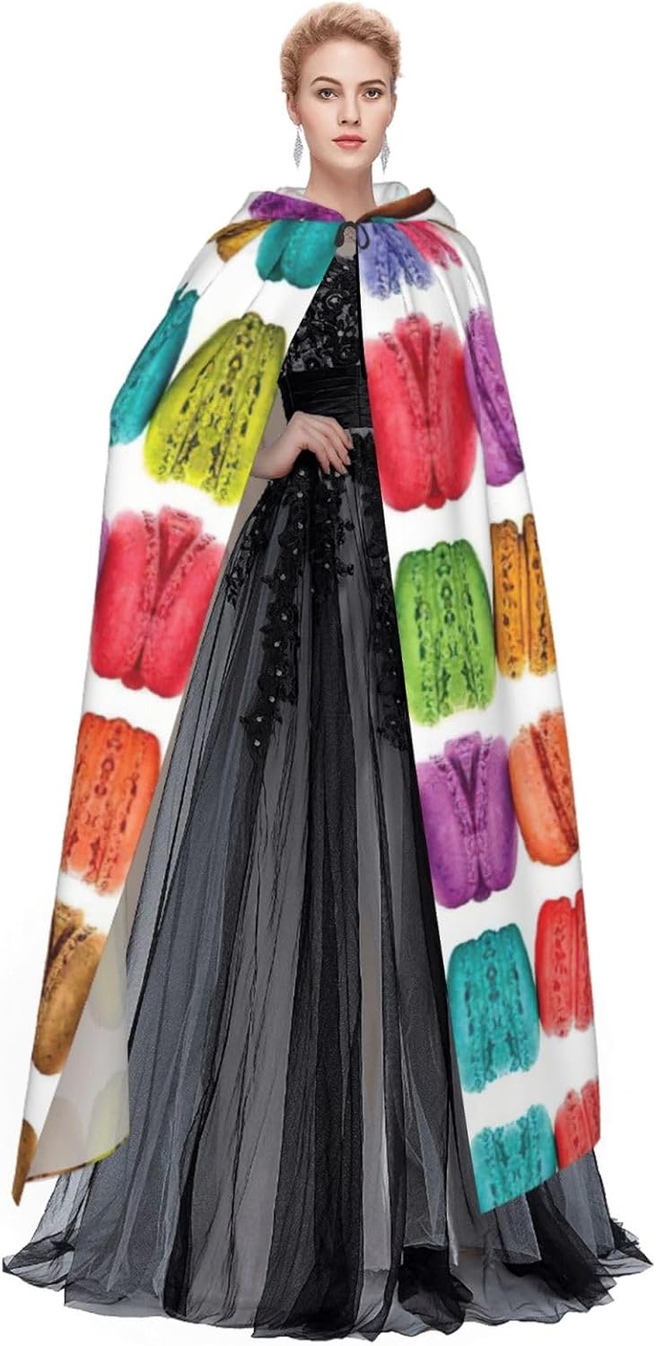 Realizzato in poliestere, questo mantello con stampa di pasticcini aromatizzati al gusto di macaron è comodo da indossare e senza prurito. Il suo design a tutta lunghezza lo rende una taglia A adatta a tutti per adulti e ragazzi. Distinguiti tra la folla ad Halloween, eventi di gioco di ruolo in costume, feste a tema, o in qualsiasi incontro o carnevale. Con design senza cerniera e colletto annodato, indossabilità è un gioco da ragazzi. Inoltre, è lavabile in lavatrice e facile da mantenere. Abbraccia lo spirito di Halloween con stile con il nostro mantello con cappuccio e fai un aspetto indimenticabile!