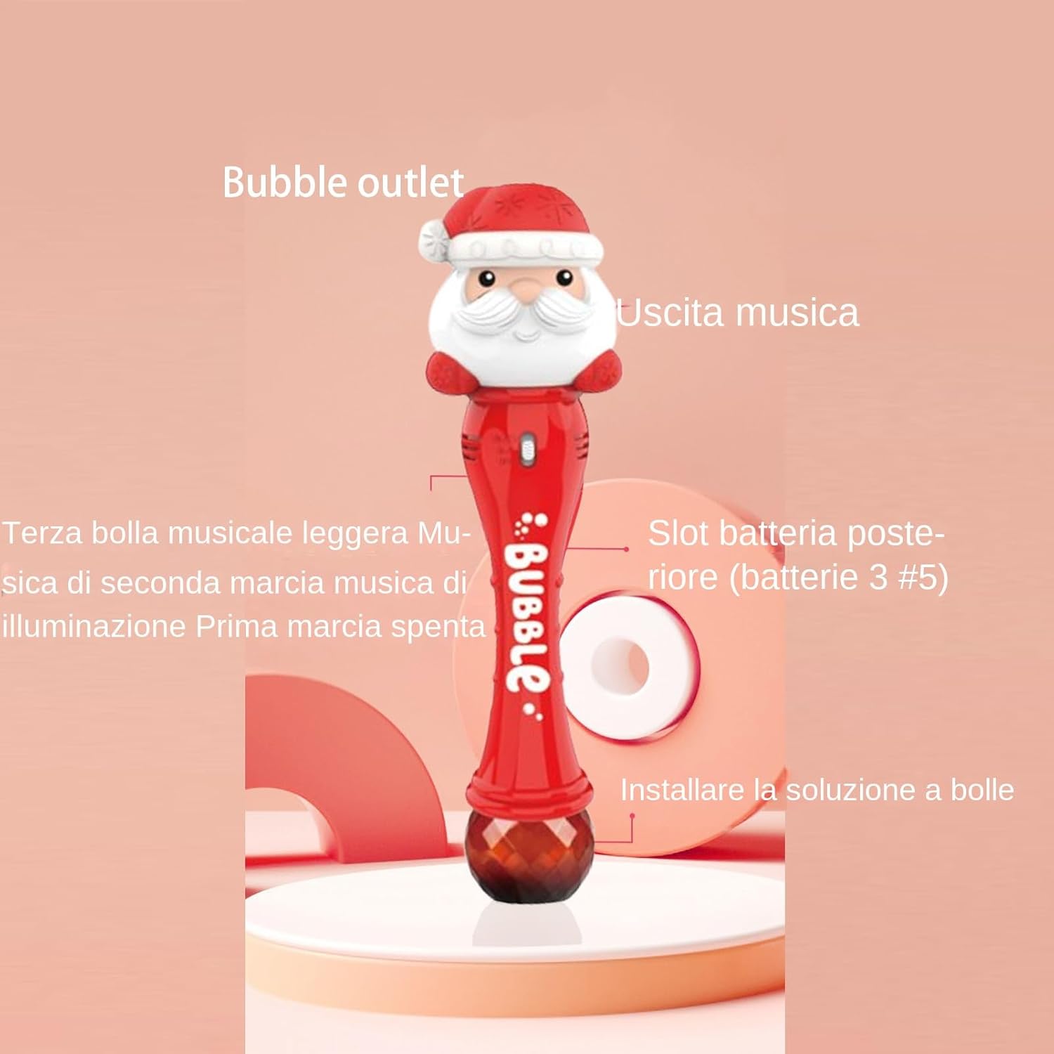 Materiali eccellenti: realizzati con materiale PP eccellente accuratamente selezionato, queste bacchette a bolle di Natale sono sicure per i bambini e sono progettate per durare, il che garantisce più ore di divertimento. Crea un'atmosfera festosa: deliziati con illuminazione colorata e musica dinamica delle nostre bacchette di bolle di Natale, che ti trasportano immediatamente in un mondo di bolle felici e infonde un'atmosfera allegra e romantica a casa tua. A livello, migliora le tue feste o le riunioni familiari a nuove altezze con queste bacchette di bolle di Natale, ideali per creare mostre a bolle festive e colorate, adatte all'uso all'aperto e molto apprezzate da bambini e adulti. Buon regalo: diffondere più gioia con le nostre bacchette di bolle di Natale che promettono di rendere tutti felici. per occasioni speciali come il Ringraziamento, i compleanni e il Natale. Crea comodamente bolle impressionanti: con le nostre bacchette di bolle di Natale, crea una mostra impressionante con solo 1 pulsante. Produci molte bolle senza sforzo per ottenere un effetto affascinante che amerà i tuoi ospiti.