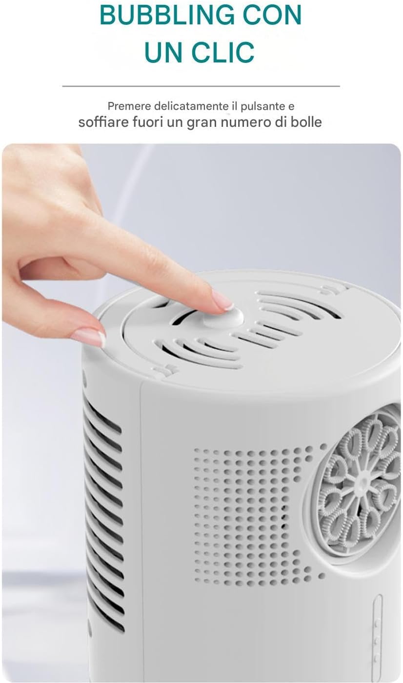 Design Robusto e Portatile: Costruito per migliorare gli eventi all'aperto, la forma compatta e l'adattabilità a più situazioni lo rendono facile da trasportare, garantendo divertimento con le bolle ovunque tu scelga di andare con performance costante Divertimento Continuo: Serbatoio sicuro antigoccia e funzionamento senza preoccupazioni garantiscono durabilità e produzione costante di bolle nel Funzionamento Affidabile: Tecnologia avanzata flusso d'aria e presa d'aria grande diametro assicurano produzione ininterrotta e formazione bolle coerente per divertimento di durata prolungata Configurazione Rapida: Divertimento con bolle immediato grazie alla facile preparazione, generazione intensa di bolle e controllo semplificato tramite un unico pulsante per un utilizzo continuativo senza interruzioni Funzione colori automatica: Progettato con modulo LED interno, assicura un'illuminazione dinamica attraverso variazioni cromatiche automatiche, amplifica l'impatto visivo e consente operazione semplice con pressione del pulsante
