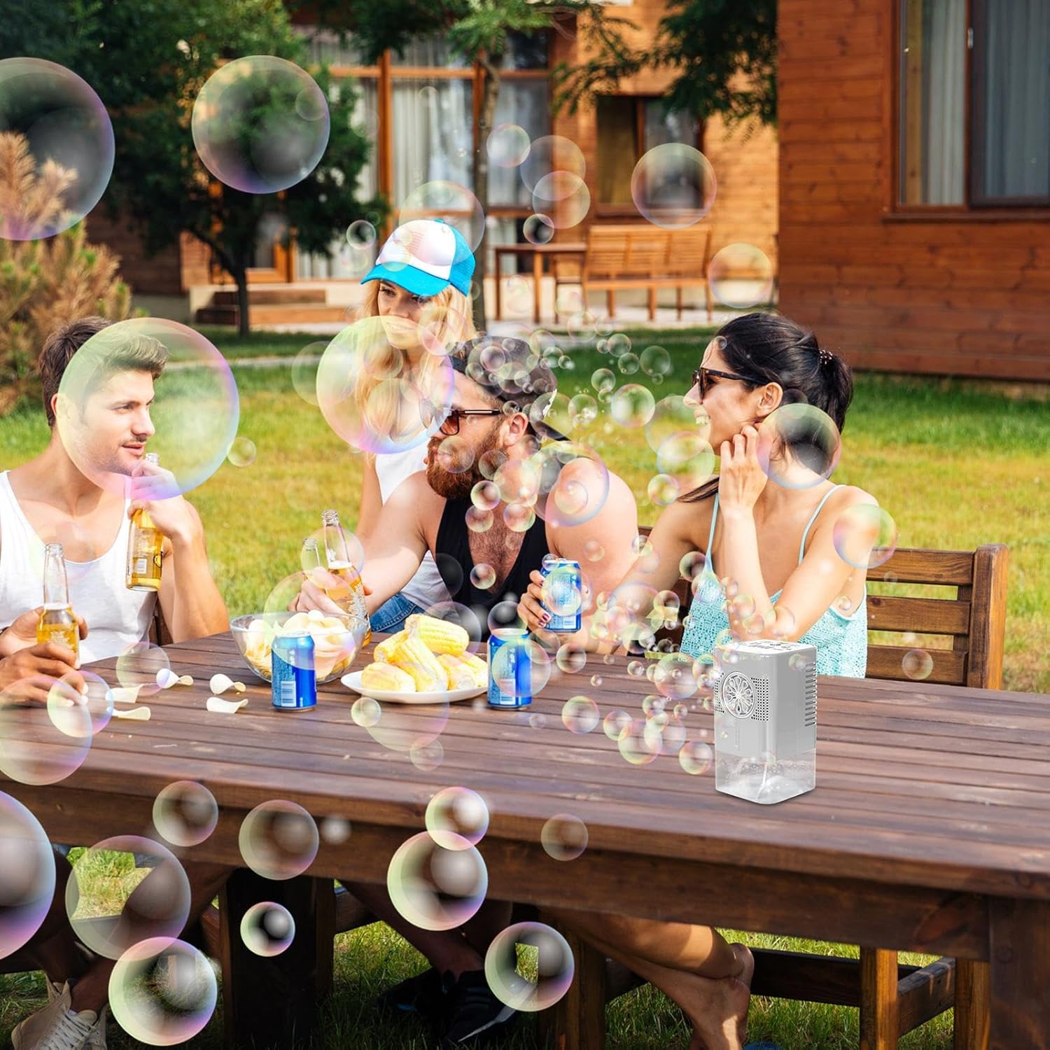 Compagno all'Aperto Pratico: Il design robusto e adatto ai viaggi assicura divertimento senza sforzo all'aperto con compatibilità versatile, corpo compatto per trasporto agevole; godi del fascino delle bolle ovunque con semplicità Serbatoio Capiente: Tenuta avanzata e serbatoio impermeabile da 400ml consentono uso sicuro e divertimento prolungato senza fuoriuscite durante l'uso Design Avanzato Flusso Aria: Presa d'aria grande diametro garantisce funzionamento regolare e generazione bolle omogenee per esperienza coinvolgente che diverte tutte le età Configurazione Rapida: Divertimento con bolle immediato grazie alla facile preparazione, generazione intensa di bolle e controllo semplificato tramite un unico pulsante per un utilizzo continuativo senza interruzioni Illuminazione LED integrata: Macchina con modulo luci incorporato offre display luminosi coinvolgenti per un'esperienza atmosferica unica, esaltata da effetti visivi vibranti e attivazione touch semplificata