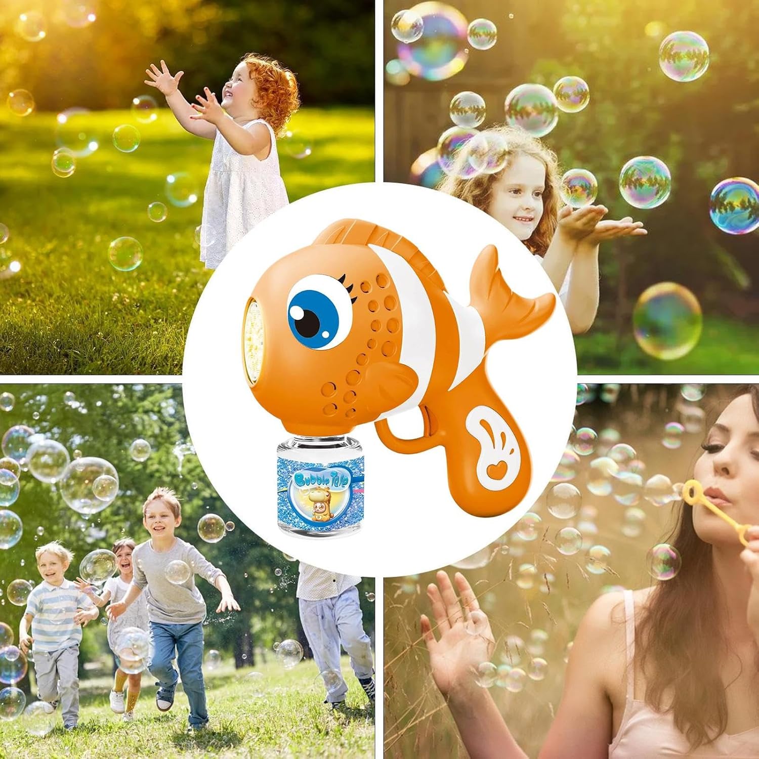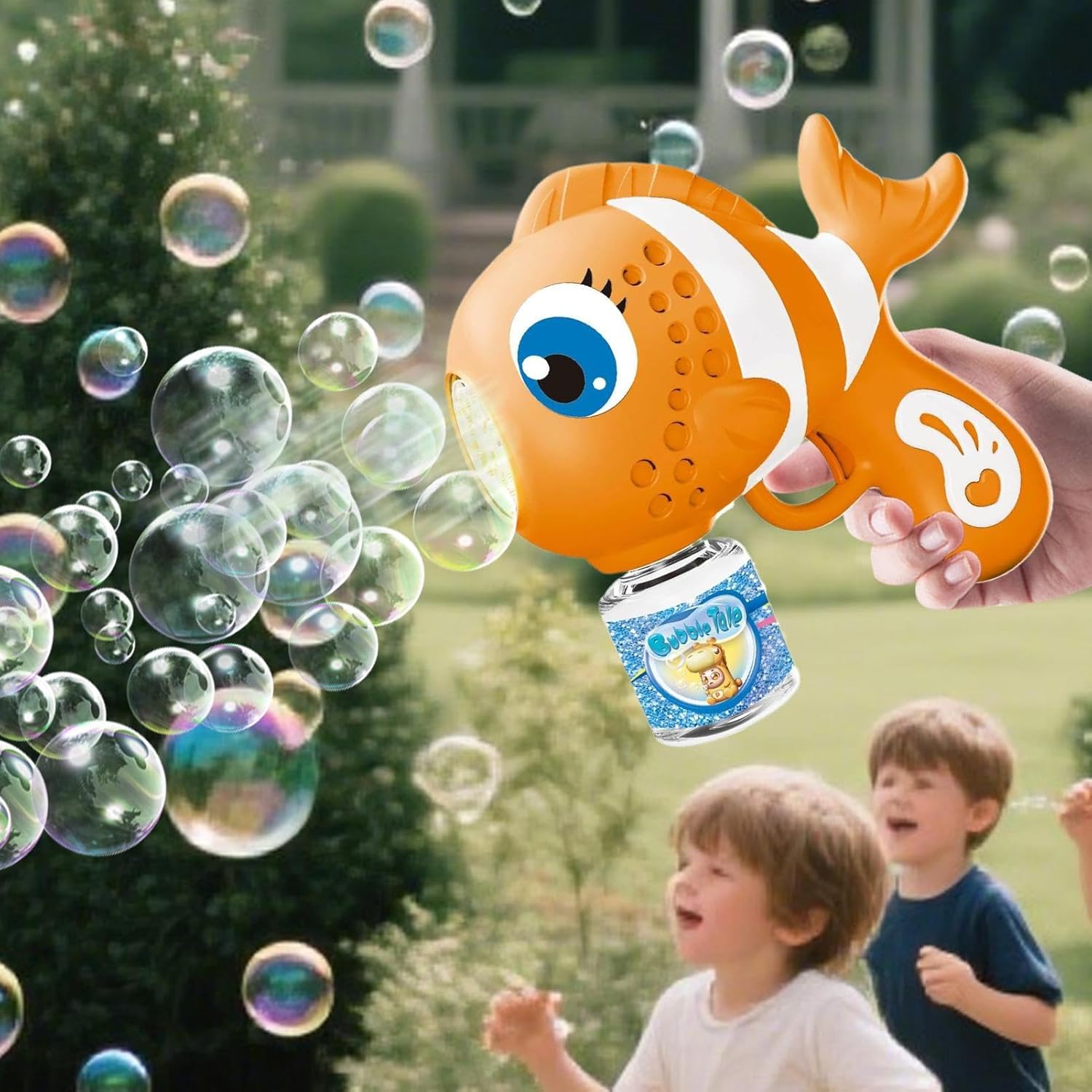 Vibrante strumento di esplorazione: il design dinamico a pesci in forme ispirate alla natura e tonalità ricche crea affascinanti esperienze subacquee. Incoraggia i bambini a interagire con dettagli umoristici e contrasti cromatici accattivanti per un divertimento di lunga durata Innovativa tecnologia blast: la struttura ben studiata a 16 uscite consente la formazione di bolle uniformi con un funzionamento efficiente dal punto di vista energetico, con effetti visivamente accattivanti e audio d'atmosfera Facile da usare: la combinazione di forme arrotondate e quadrate con materiale antiscivolo consente un uso indipendente da parte dei bambini grazie ai comandi intuitivi progettati per una maneggevolezza sicura senza aiuto per adulti Ideale per attività all'aria aperta: progettato per attività in giardino e per il divertimento dei picnic. Produce effetti a bolle ipnotizzanti e allo stesso tempo portabilità grazie al design leggero e ben studiato Allenamento di reazione: allena il tracciamento delle traiettorie di volo delle bolle per aumentare le capacità riflesse, promuove il controllo del corpo e l'intelligenza del movimento attraverso il concetto di gioco interattivo con modelli dinamici di bolle per un'esperienza di apprendimento attiva