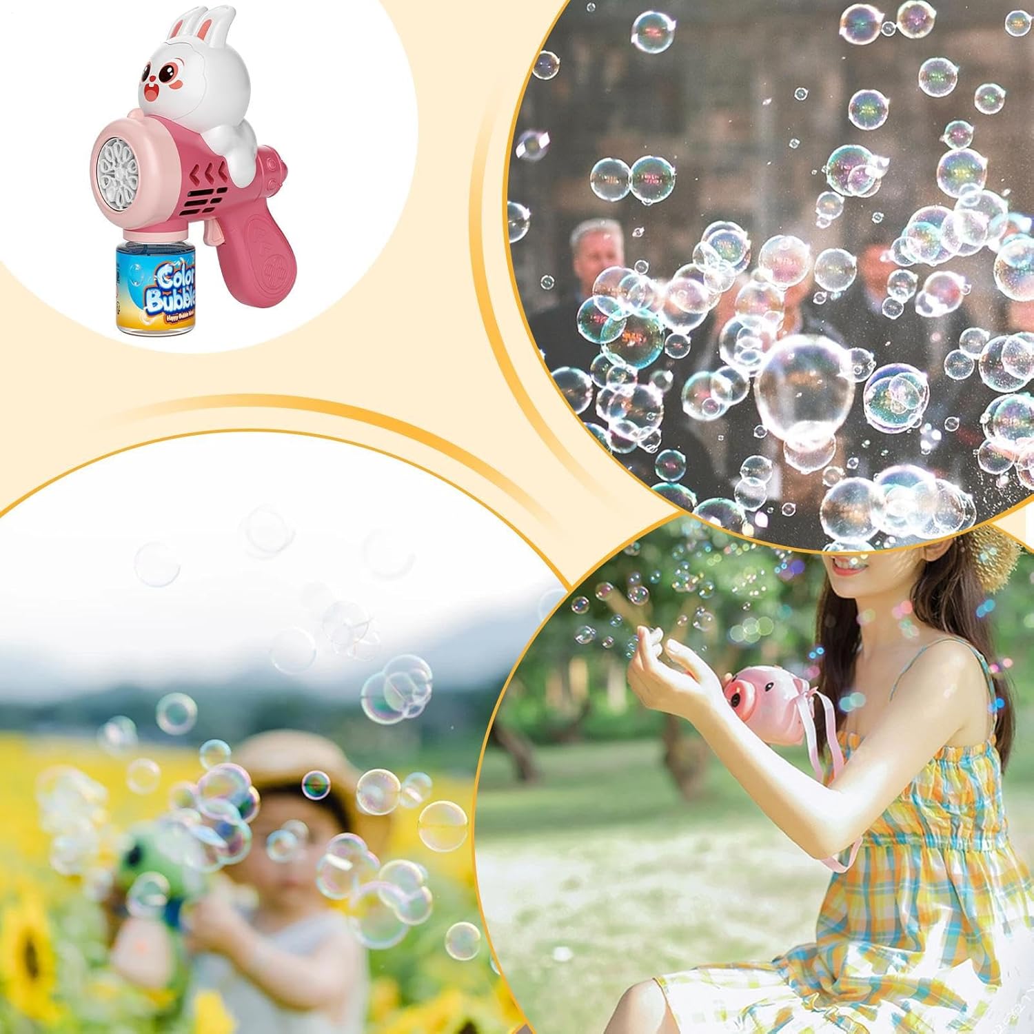 Figure Vivaci: La forma animale cartoon con colori intensi cattura l'attenzione dei piccoli, migliorando l'attrattiva visiva mediante un design allegro e vivace particolarmente amato dai bambini Sicurezza avanzata: Profilo ergonomico con bordi levigati per una manipolazione senza sforzo, serbatoio completamente stagno che migliora la sicurezza durante l'utilizzo. Versatilità d'Uso:Goditi un'atmosfera giocosa esaltata da luminosi colori arcobaleno, progettato per uso esterno con struttura portatile che stimola energia interattiva tra utenti di tutte le età Scelta Bambini: Lavorato con motivi accattivanti e presenza memorabile, questo creatore di bolle esalta le occasioni festive ed è un regalo significativo per le tappe della crescita infantile. Manovrabilità ottimale:Divertimento all'aperto garantito dal flusso di bolle ininterrotto, che facilita inseguire e scoppiare bolle agevolmente assicurando ricariche minime per un godimento senza interruzioni con una mano