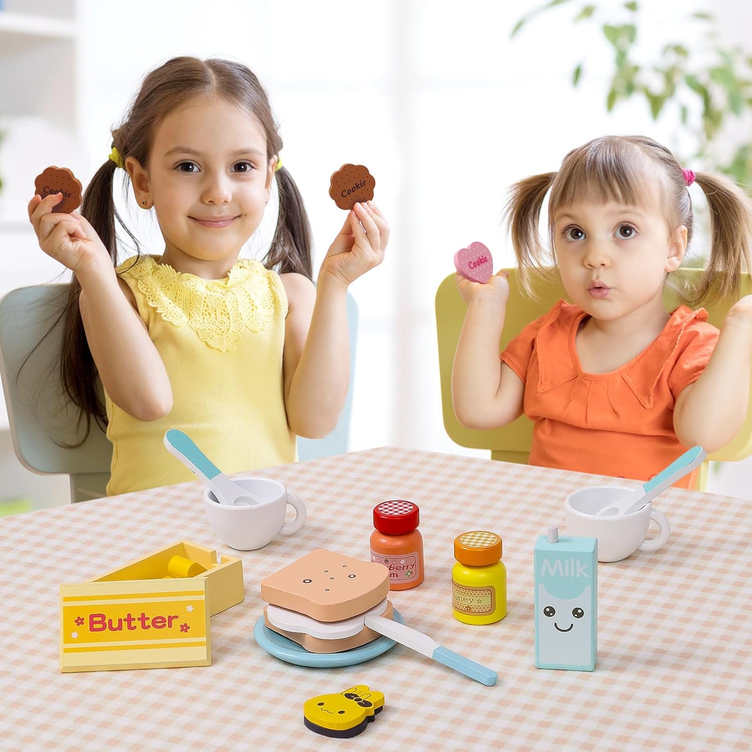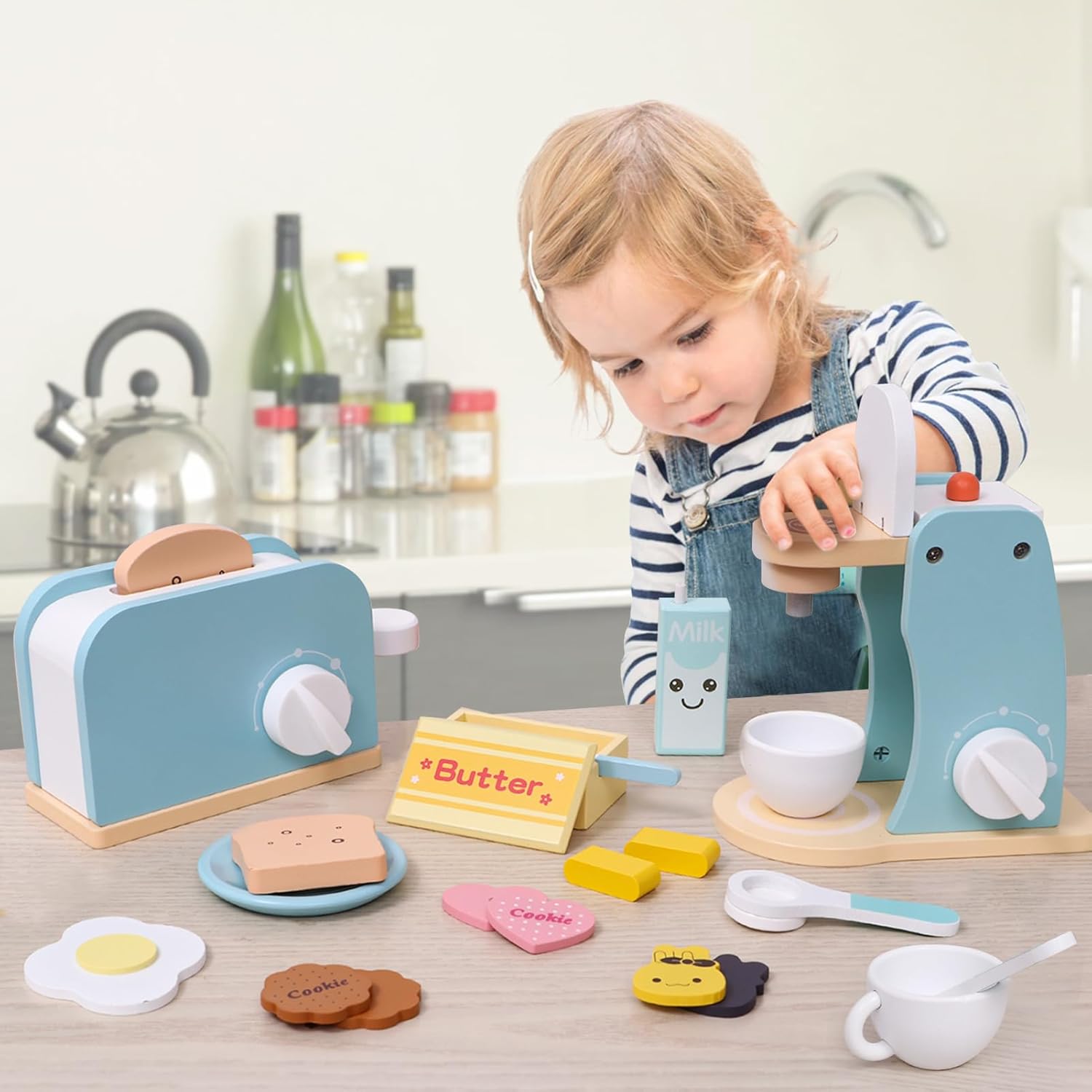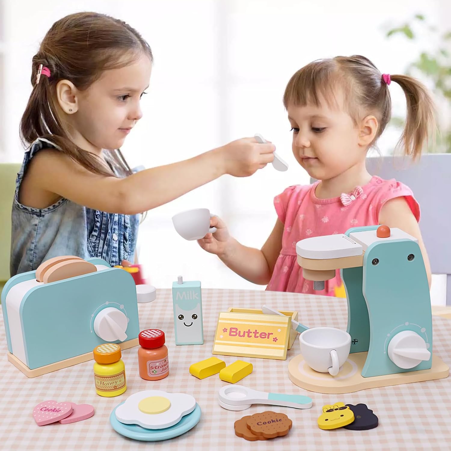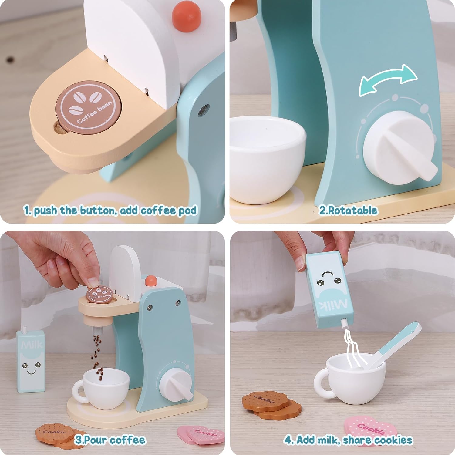 【GIOCO DA CUCINA PER BAMBINI】 Il set di accessori per la cucina per bambini comprende una caffettiera in legno, un tostapane pop-up in legno, burro, coltello da burro, miele, marmellata di fragole, latte, uova, chicchi di caffè, tazze, cucchiai, piatti e diversi tipi di biscotti. I bambini non si annoieranno quando giocano con gli amici, perché ci sono tanti accessori; i genitori possono anche accompagnare i loro bambini per migliorare il legame genitore-figlio. 【GIOCO DI FANTASIA IN CUCINA】 I chicchi di caffè possono essere aggiunti nella parte superiore della macchina da caffè; c'è un pulsante di regolazione della temperatura sul lato, che può essere ruotato in modo flessibile e consentire al bambino di sperimentare un processo realistico. Il tostapane può anche essere ruotato il pulsante e premuto la barra push-pull per far fuoriuscire le fette di pane. 【QUALITÀ ECCELLENTE】 Insistiamo nell'adottare i materiali artigianali e di sicurezza più avanzati per realizzare giocattoli per bambini. Questo finto giocattolo è realizzato al 100% in legno atossico con vernice a base d'acqua, che è sicuro per i bambini. I bordi della caffettiera in legno e degli accessori per tostapane sono lisci e non danneggiano la pelle del bambino. Giocattolo da cucina per bambini di dimensioni perfette per bambini dai 3 anni in su. 【GIOCATTOLI EDUCATIVI】 Le sfumature ei colori Soft Morandi aiutano i bambini a immergersi nel gioco. Giochi di ruolo con gli amici per migliorare le abilità sociali attraverso la comunicazione verbale e fisica, aiutando allo stesso tempo a sviluppare le capacità motorie, la coordinazione occhio-mano, la creatività e l'immaginazione. 【REGALI IDEALI PER BAMBINI】 Regalo perfetto per bambine o ragazzi! Questi sono fantastici giocattoli per bambine di 2 3 4 5 anni e regali ideali. Può anche essere usato come decorazione domestica quando non si gioca. Rendendolo un perfetto regalo di ritorno a scuola, compleanno, Natale, Pasqua, Capodanno.