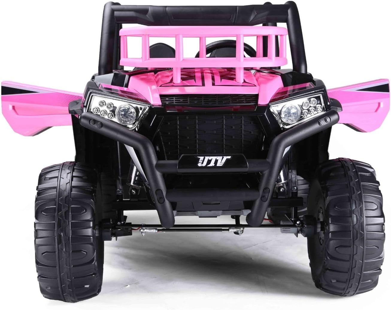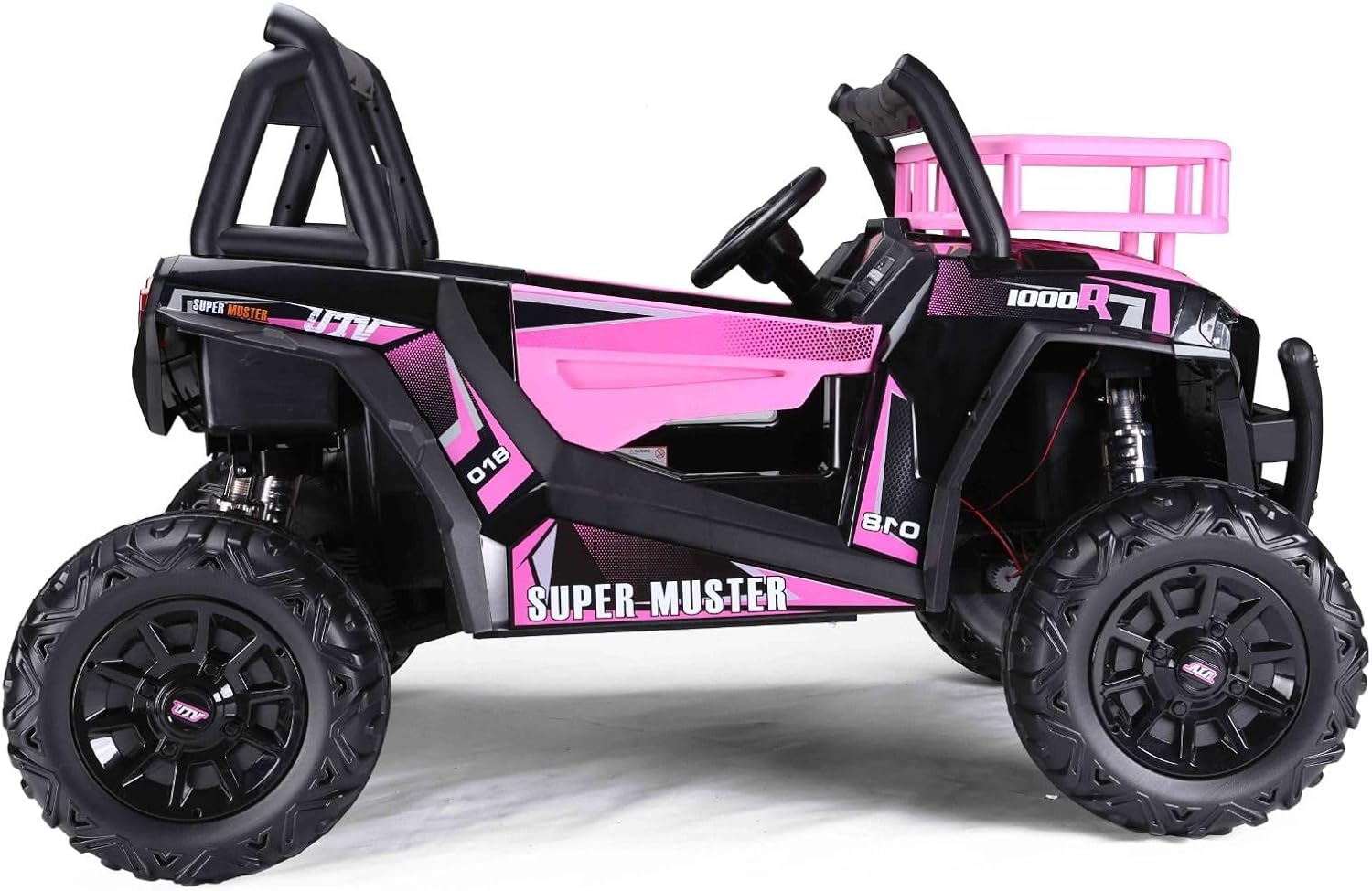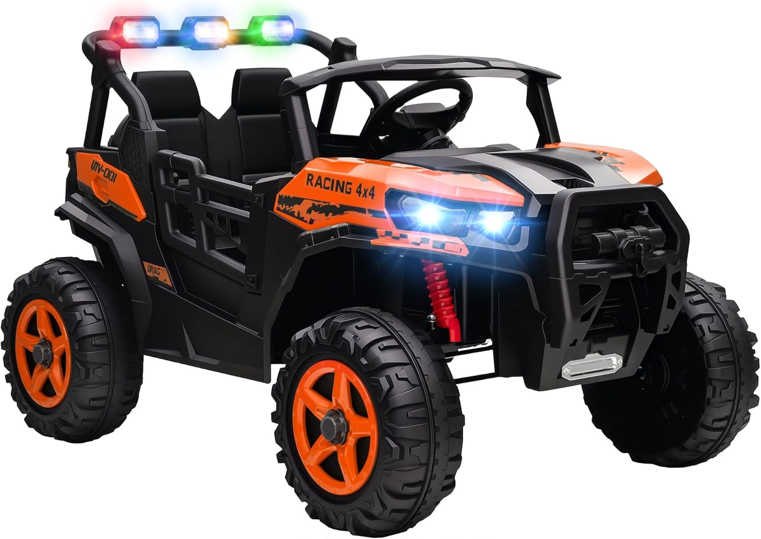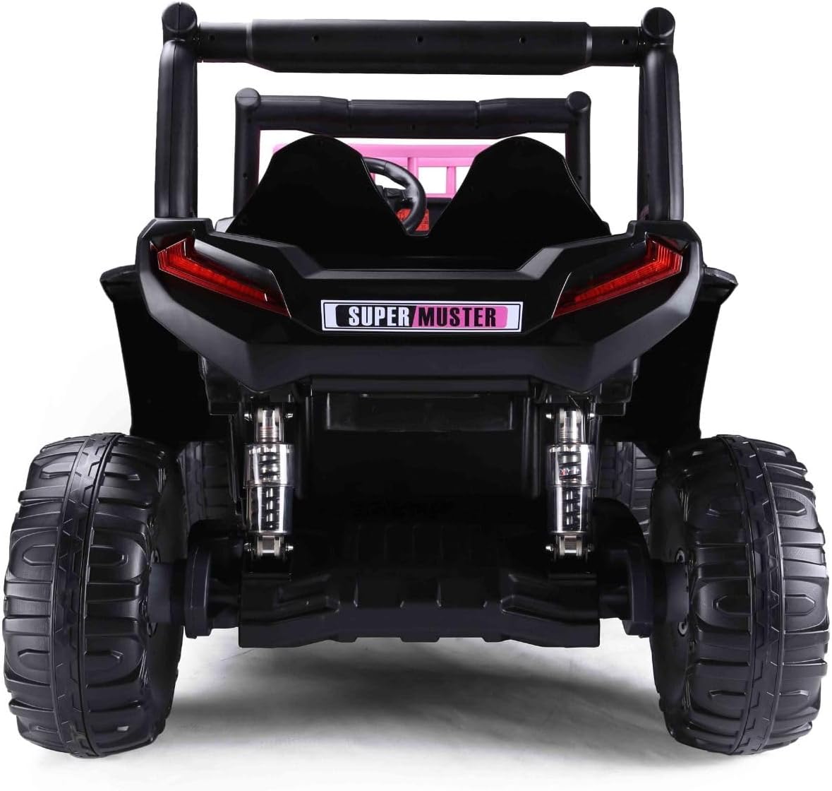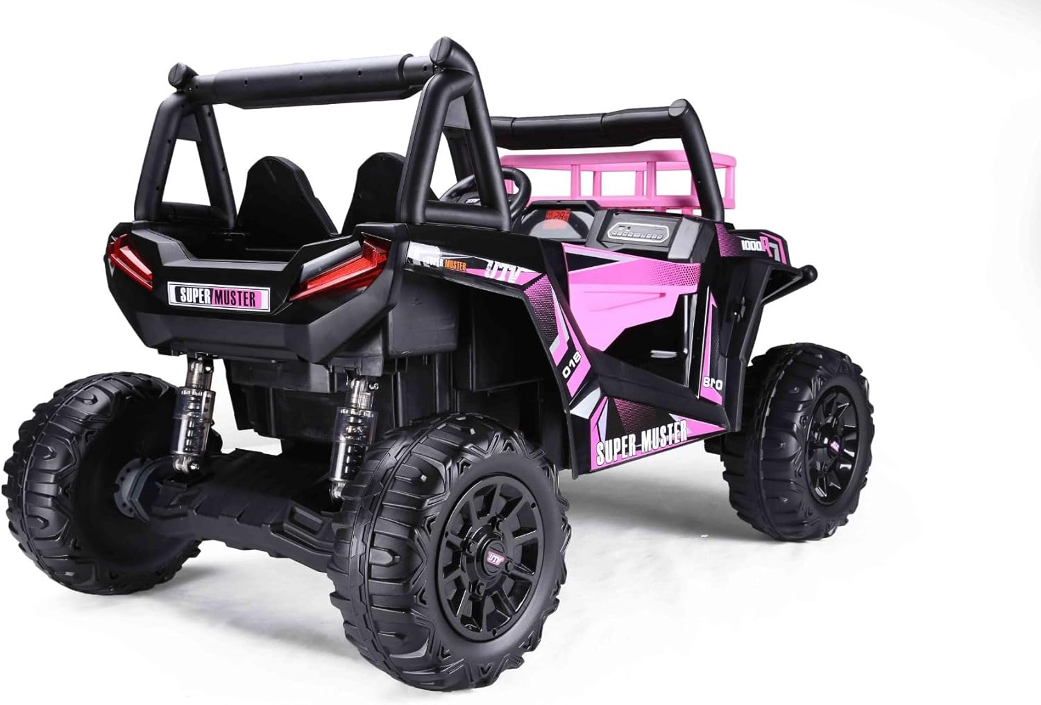 ✅【Avventura realistica off-road】– Questo grande UTV macchina elettrica per bambini è dotato di batteria al litio da 22V, 2 vani portaoggetti, capacità di carico testata fino a 100 kg e 2 motori da 200W con freni elettrici. Design robusto, materiali di qualità, porte apribili e cura nei dettagli per un’esperienza di guida potente. ✅【Adatta a 2 bambini】– Con due ampi sedili in pelle cuciti, questa macchina è perfetta per ospitare due bambini. Cintura di sicurezza regolabile inclusa per garantire la massima protezione. La scelta ideale di auto per bambini. ✅【Costruzione robusta】– Sospensioni su tutte le ruote, due motori da 24V 200W sulle ruote posteriori, 3 marce avanti e 1 retromarcia: perfetta per terreni difficili. Una vera auto elettrica per bambini pensata per l’avventura. ✅【Batteria al litio (22.2V 4.5AH)】– Lunga durata, capacità elevata, ricarica veloce e scarica lenta. Tutto ciò che si può desiderare da una macchina elettrica per bambini. ✅【Nuovo telecomando 2.4GHz】– Telecomando Bluetooth 2.4 GHz accoppiato con l’auto per un controllo preciso, con velocità regolabili (lenta, media, veloce) e freno di emergenza. Il veicolo elettrico per bambini perfetto per il controllo a distanza. ✅【Misure di sicurezza】– Le ruote in polimero EVA offrono una guida silenziosa e resistente alle crepe. Sistema di sospensioni protetto e impostazione a bassa velocità per i più piccoli. Un'auto elettrica per bambini progettata per la sicurezza. ✅【Partenza dolce / Accelerazione fluida】– L’accelerazione è controllata elettronicamente per una partenza graduale quando si preme il pedale. Una funzione eccellente per qualsiasi macchina elettrica per bambini.
