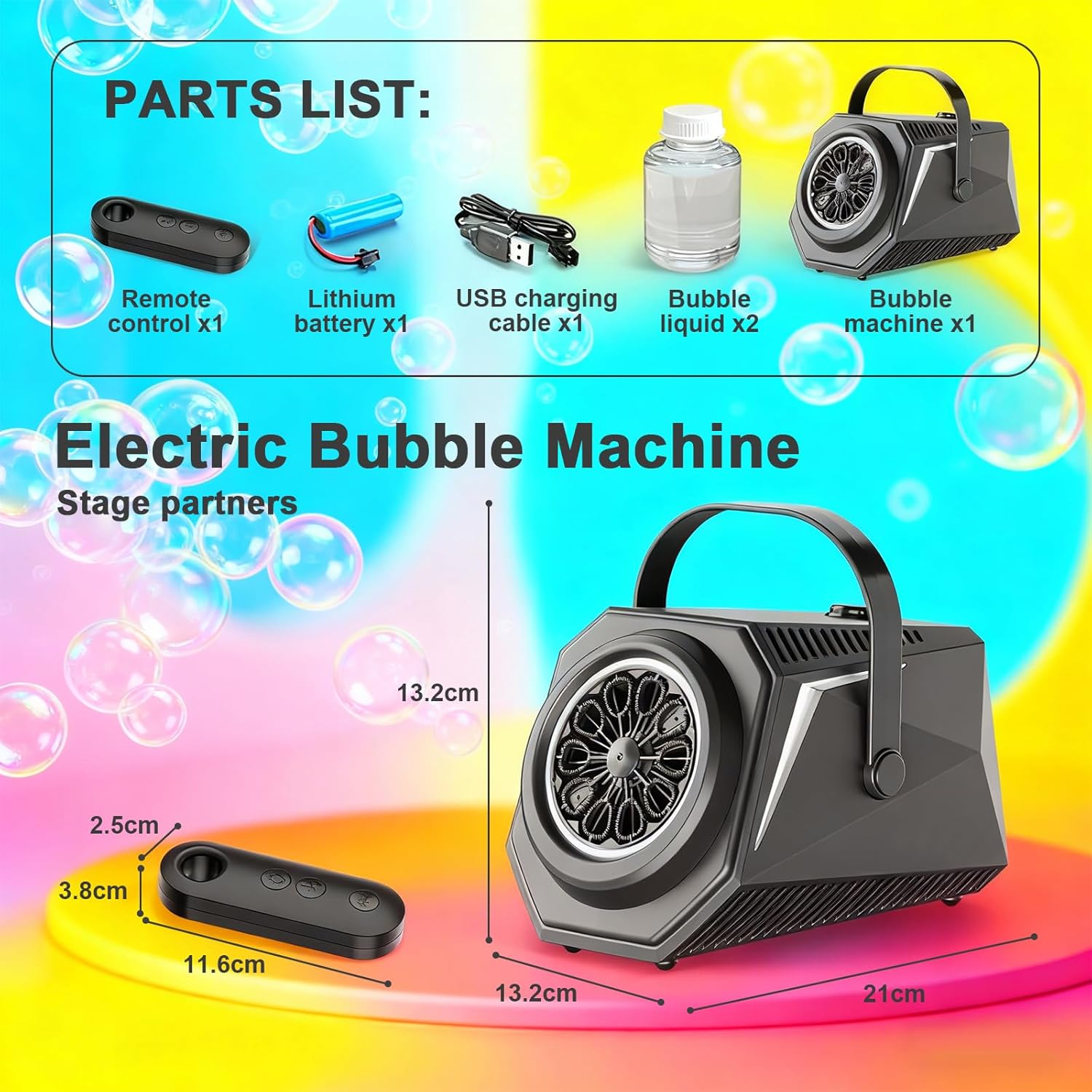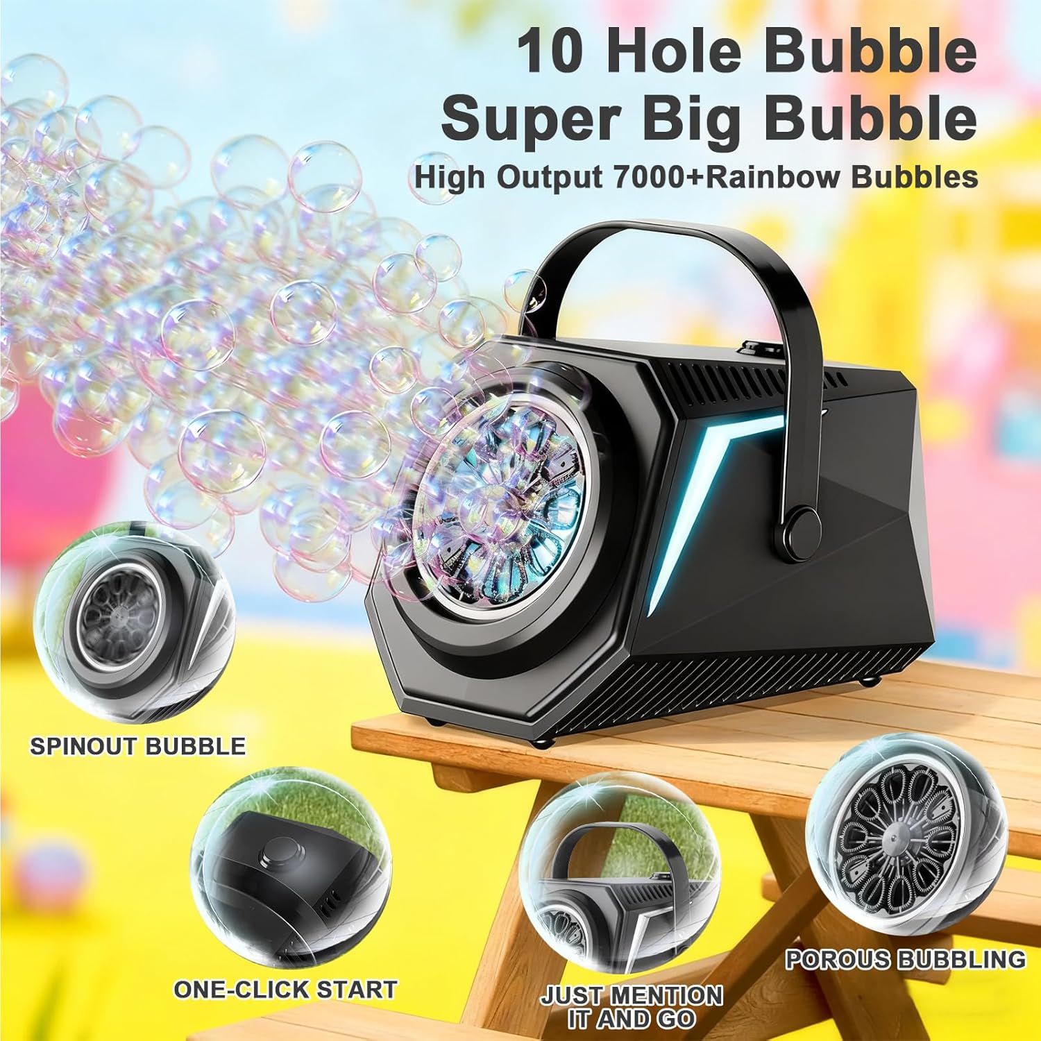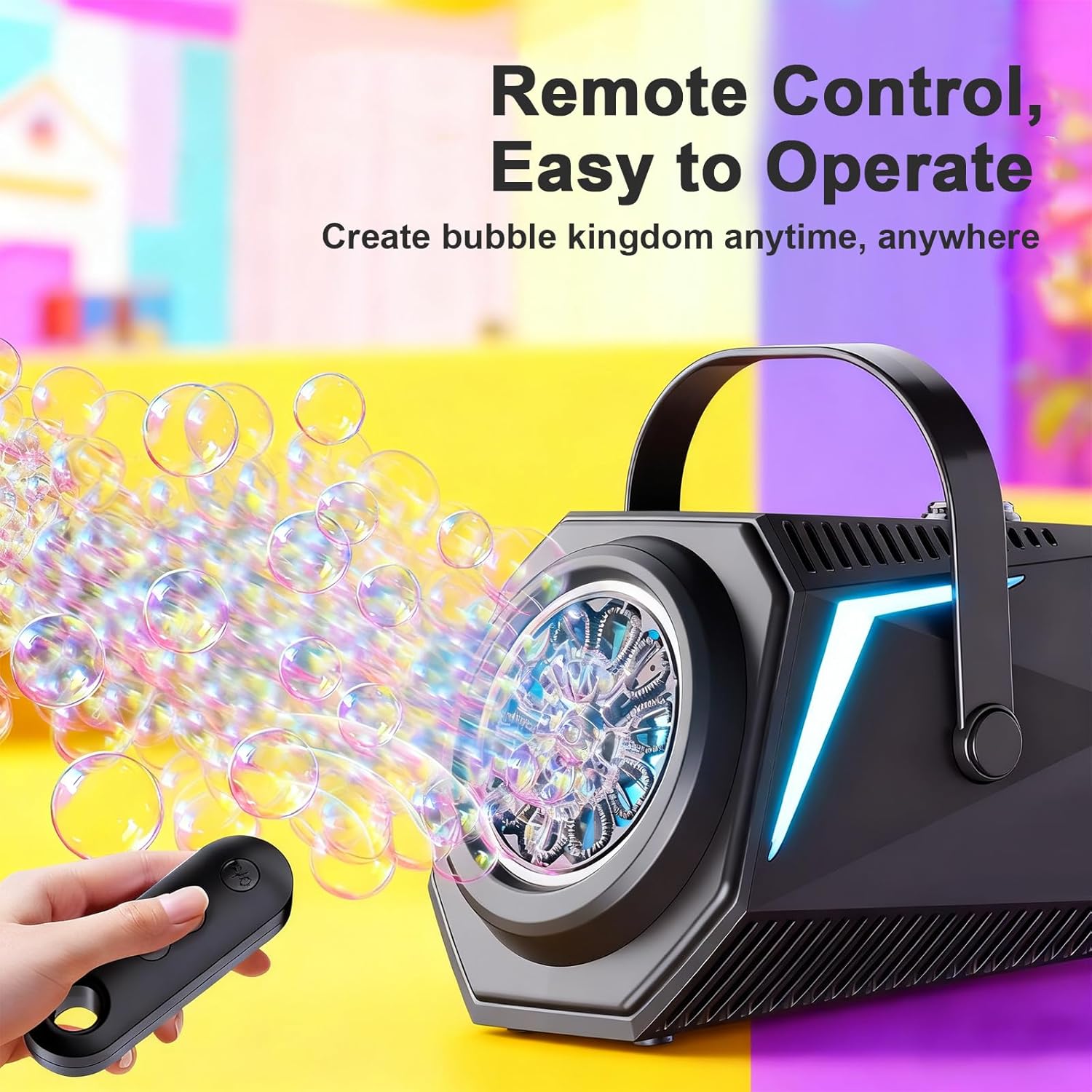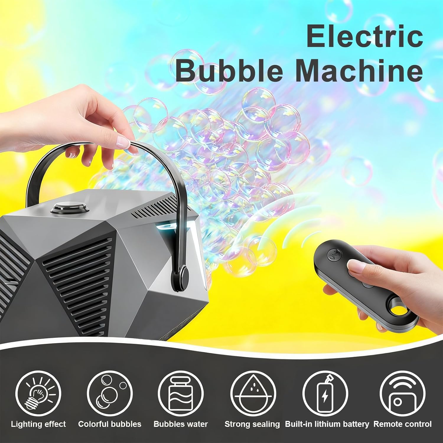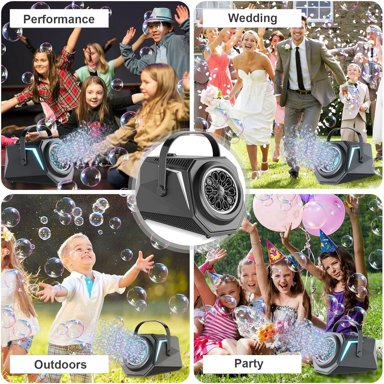 【Telecomando & Rotazione Automatica】Controlla facilmente le bolle a distanza! La nostra macchina per bolle con telecomando ruota automaticamente di 150° coprendo un'ampia area con bolle magiche, perfetta per feste. 【Copertura Multi-Angolo】L'uscita bolle regolabile e la rotazione automatica assicurano una copertura a 360°. Esperienza immersiva interna/esterna, dove la gioia è ovunque. 【Illuminazione RGB Accattivante】Luci RGB multicolore creano effetti incantevoli di notte. Più modalità per trasformare la festa in uno spettacolo magico di bolle e luci, amato dai bambini. 【Lunga Autonomia & Grande Serbatoio】Batteria ricaricabile 1800 mAh (Type-C) per lunga durata. Grande serbatoio per uso prolungato, design anti-versamento economico ed ecologico. 【Perfetta per Ogni Festa】La macchina per bolle AURIVEE è ideale per matrimoni, Natale, compleanni e grigliate. Crea un mare di bolle con luci, facendo ricordi indimenticabili per tutte le età.