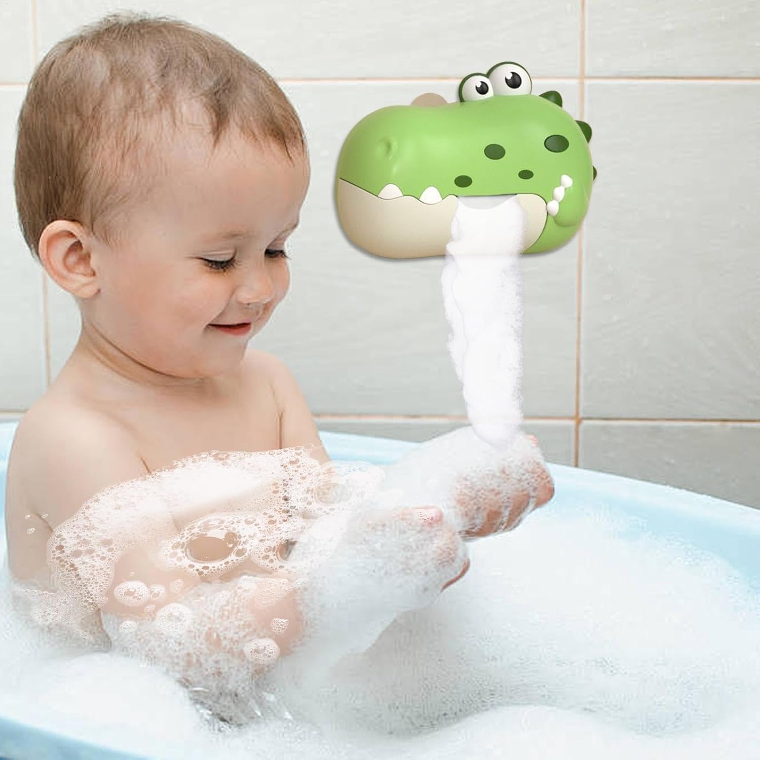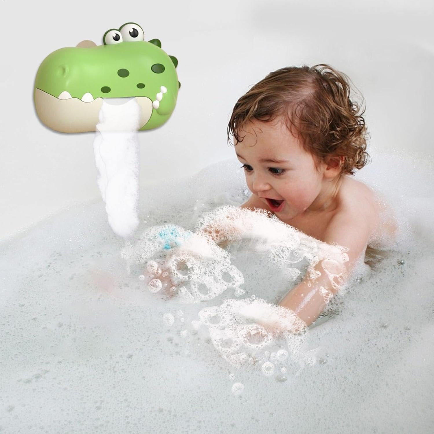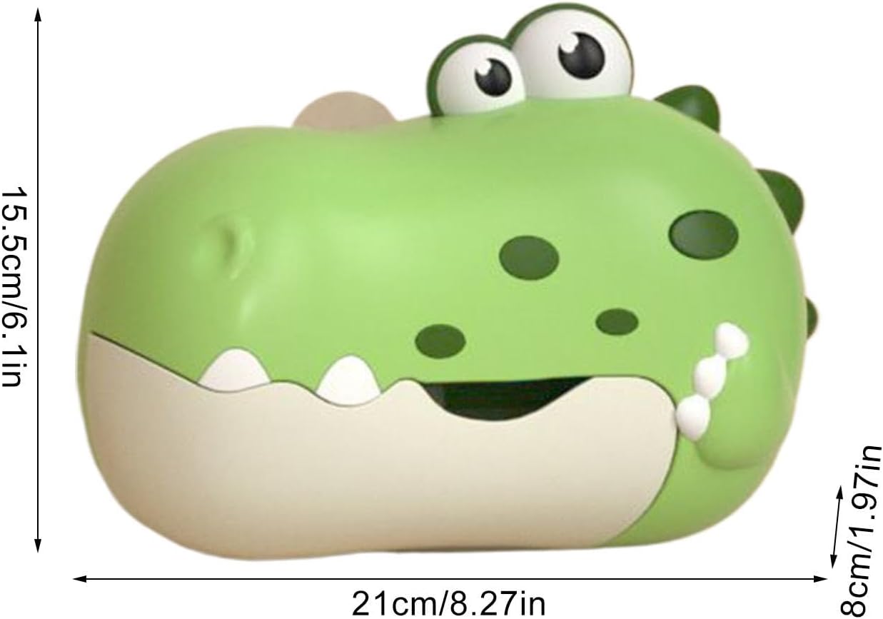 Design innovativo: l'affascinante design del dinosauro dai colori vivaci stimola la creatività, promuovendo il gioco fantasioso e l'esplorazione in tre deliziose tonalità: rosso, arancione e verde Comodo da usare: consente la riproduzione musicale con la semplice pressione di un pulsante, senza bisogno di toccare ripetutamente, rendendolo più divertente per i bambini con questa macchina per bolle da bagno Facile installazione e utilizzo sicuro: dotata di un robusto sottoimbottitura, questa macchina per bolle da bagno si attacca saldamente a superfici lisce come piastrelle e vetro, sicurezza durante l'uso Melodie rilassanti per il relax: goditi la pace di conoscere l'effetto altoparlante fedele, che protegge l'udito del tuo bambino, riproduce musica piacevole che può essere facilmente accesa o spenta. Materiale di qualità: incorporando un delicato processo di lucidatura a 360 gradi, questa macchina per bolle da bagno è realizzata in materiale ABS per uso alimentare e ha un design impermeabile e una batteria sicura. Ideale dai 3 anni in su