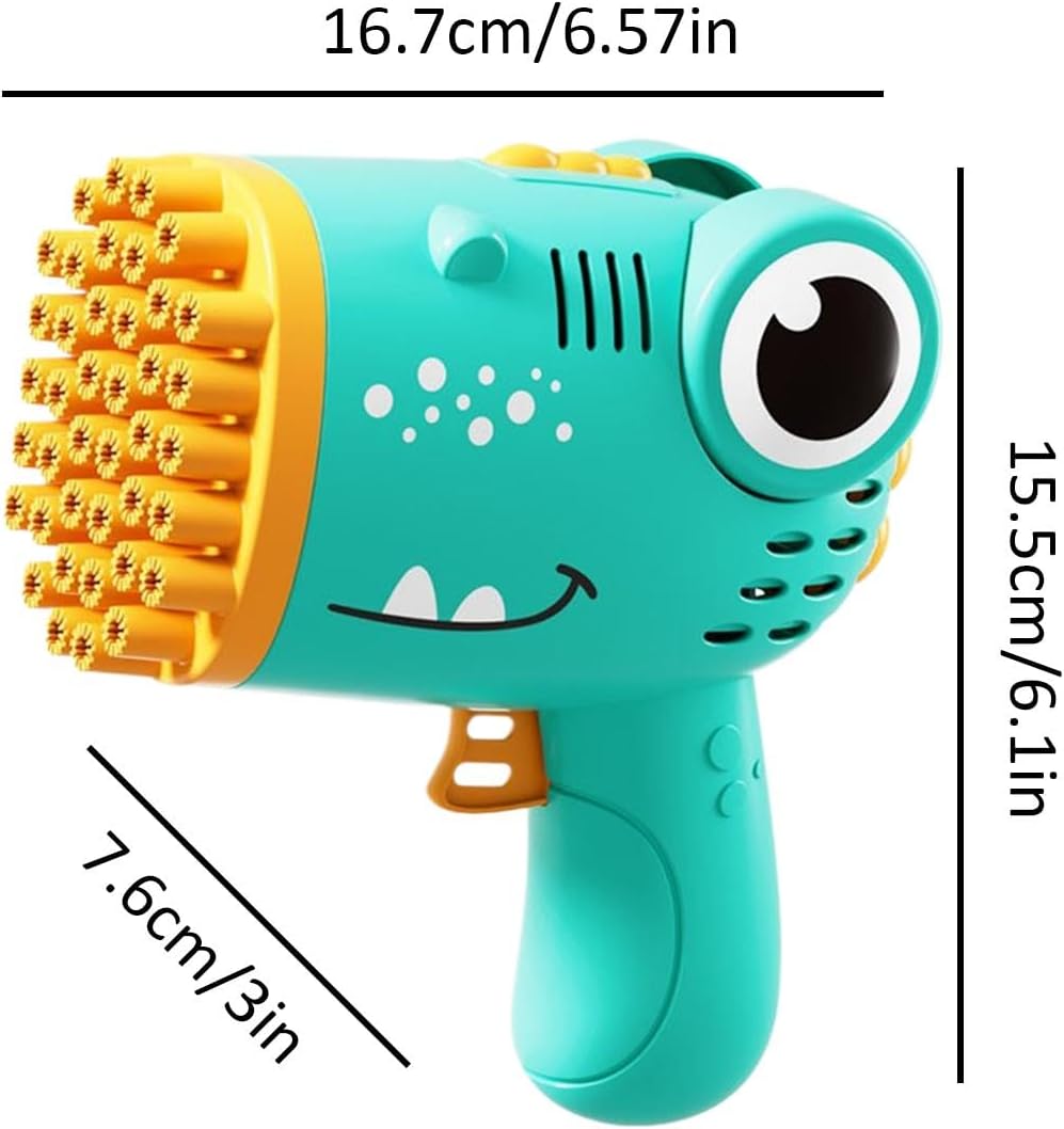 ORE DI DIVERTIMENTO: la nostra macchina elettrica per bolle di dinosauri fornirà ore di intrattenimento ininterrotto, creando momenti indimenticabili di gioia e risate. Questo è un modo meraviglioso per rafforzare il legame della tua famiglia. Facile da usare: con questa macchina elettrica per bolle di dinosauri, i bambini possono lavorare insieme e divertirsi. Alimentato da 4 batterie e facile da usare e condividere, incoraggia il gioco interattivo e consente ai bambini di condividere la loro gioia con amici o fratelli. Attira i bambini di tutte le età: questa macchina elettrica per bolle di dinosauro con il suo attraente design a cartone animato stimola l'immaginazione e la creatività durante il gioco, rendendola un'adorabile aggiunta alla collezione di giocattoli di ogni bambino. Durata garantita: realizzata in materiale ABS di alta qualità, questa macchina elettrica per bolle di dinosauri garantisce intrattenimento ininterrotto; Inoltre, puoi pulirlo con facilità e senza problemi, il che sottolinea la sua promessa di longevità. REGALO UNICO: Delizia i bambini con la macchina elettrica per bolle di dinosauro, un regalo ideale per varie occasioni. La macchina offre divertimento ed emozioni senza fine, perfetta per compleanni, feste o vacanze.