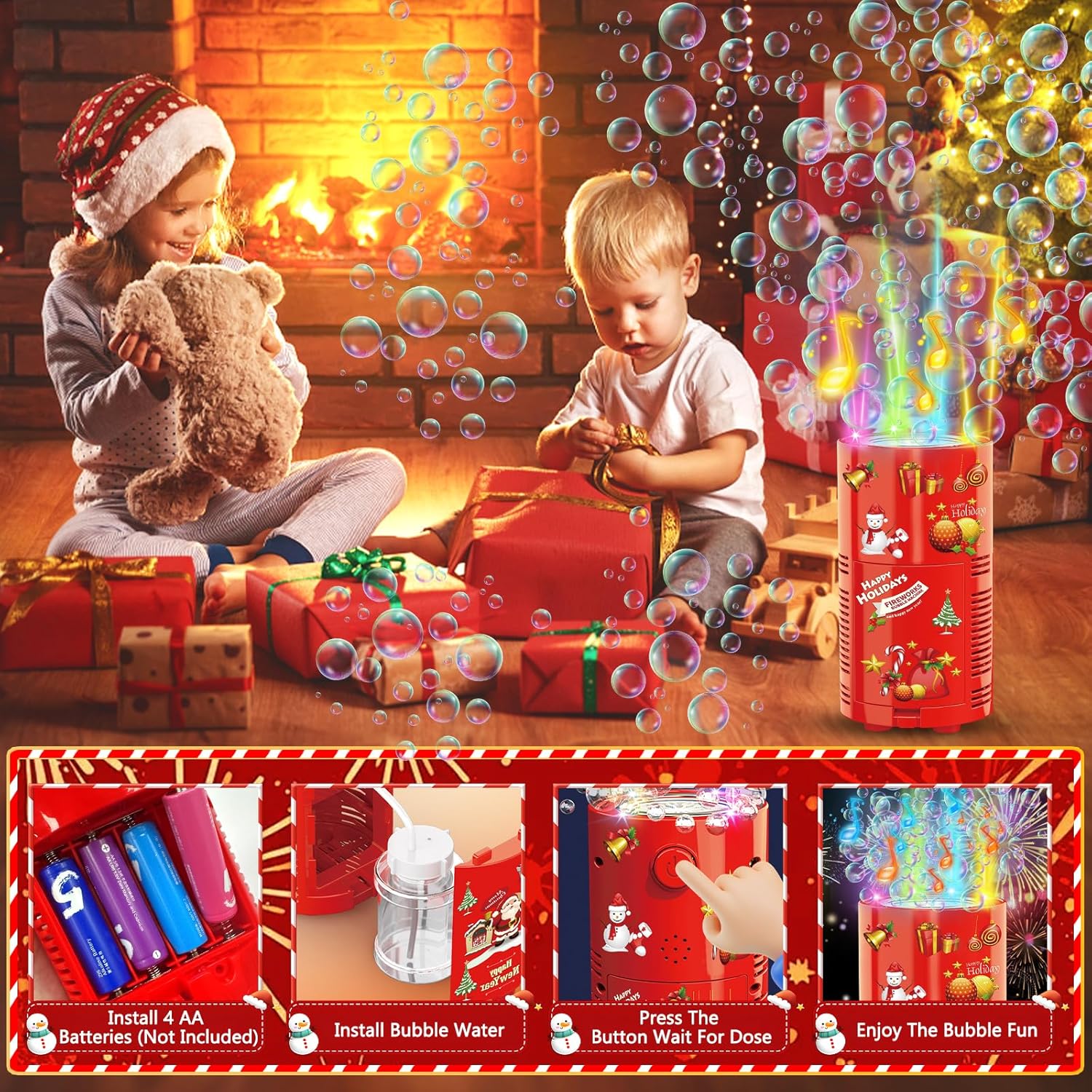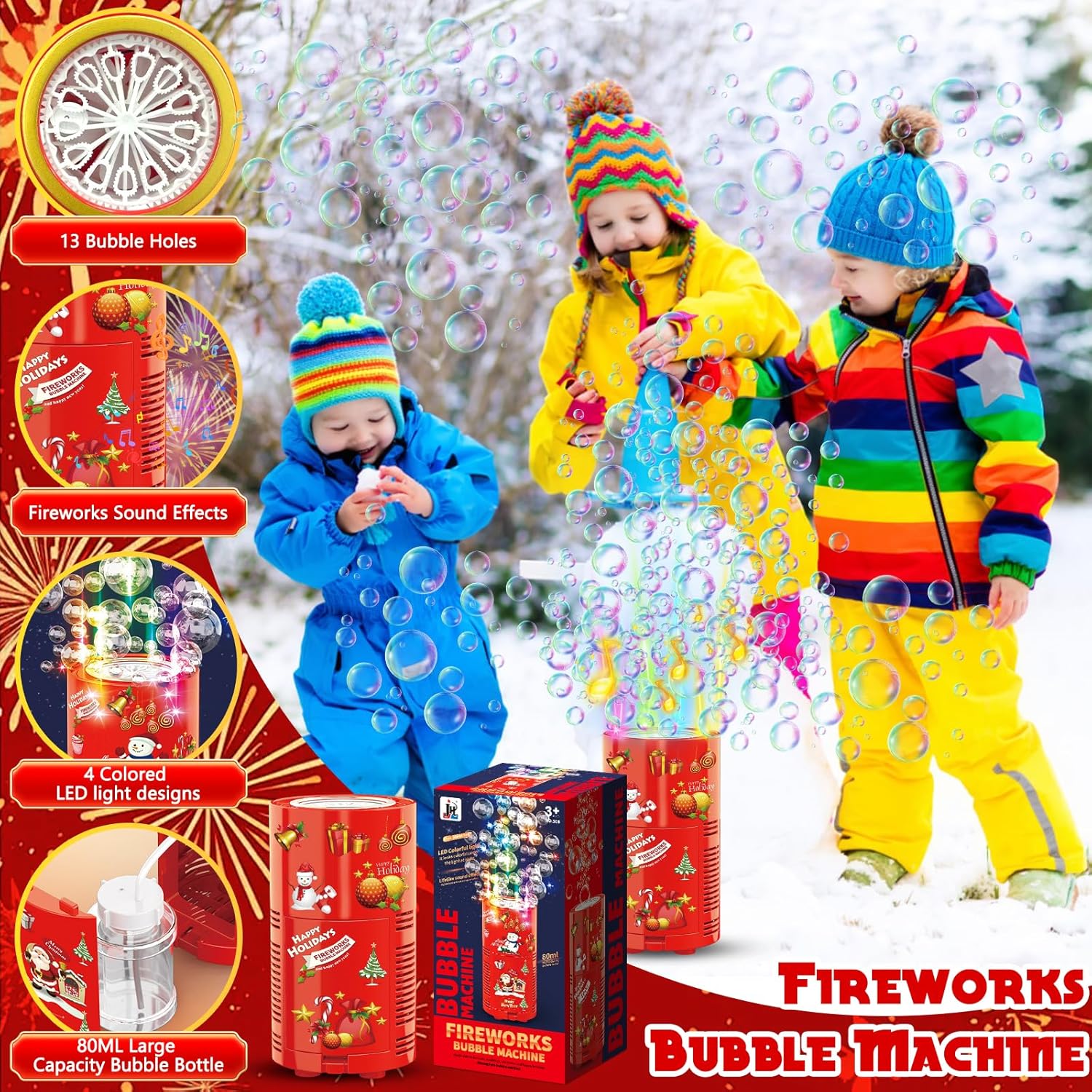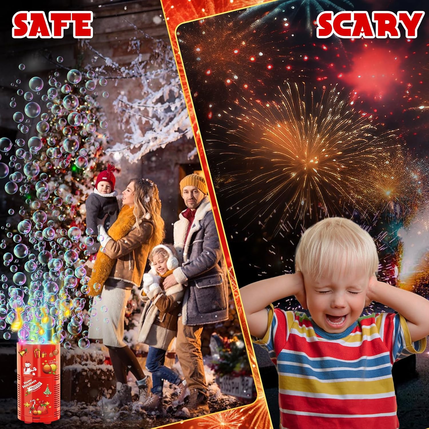 Cosa riceverete : 1 Macchina per Bolle di Fuochi d'Artificio, 1 bottiglia di liquido per bolle da 80 ml, 5 confezioni di liquido per bolle da 10 ml e 2 adesivi. La macchina per bolle ha un design a 13 fori e è dotata di quattro luminose luci LED RGB vive, che rendono ogni bolla brillante e aggiungono divertimento illimitato a qualsiasi festa o attività all’aperto. Materiale di alta qualità : La Macchina Bolla Fuochi D'artificio è realizzata in materiale ABS ispessito, ha una superficie liscia, senza bordi acuti, è robusta e durevole. A differenza dei tradizionali fuochi d’artificio, il nostro apparecchio non presenta rischi di lesioni, diventando così un’alternativa sicura e piacevole. Il liquido per bolle è composto da materiali sicuri e non tossici, quindi è sicuro per la pelle e il viso dei bambini. Macchina per bolle a fuochi d’artificio : È una Macchina per Bolle di Sapone Automatica con 13 fori per le bolle e un potente motore. Tutto quello che dovete fare è inserire 4 batterie AA (non incluse), posizionare la bottiglia con il liquido e accendere l’interruttore per creare un meraviglioso mondo di bolle. Modalità a pulsanti interattiva con due pulsanti : La nostra macchina per bolle a fuochi d’artificio è progettata per imitare i veri fuochi d’artificio e offre due entusiasmanti modalità. La prima pressione del pulsante attiva le luci LED e fa uscire le bolle. La seconda pressione attiva una adorabile riproduzione: emette il classico suono di petardo, creando uno spettacolo visivo mozzafiato che ricorda un soggettivo fuochi d’artificio da sogno. Ampia applicazione : Sia che si tratti di feste di compleanno, attività all’aperto o riunioni familiari, questa bubble machine automatica è la scelta ideale. Aggiunge un tocco unico alle vostre celebrazioni, matrimoni, Natale, feste, Capodanno e altri giorni festivi, offrendovi un’esperienza sicura e calorosa. Può anche essere regalata a famiglia e bambini.