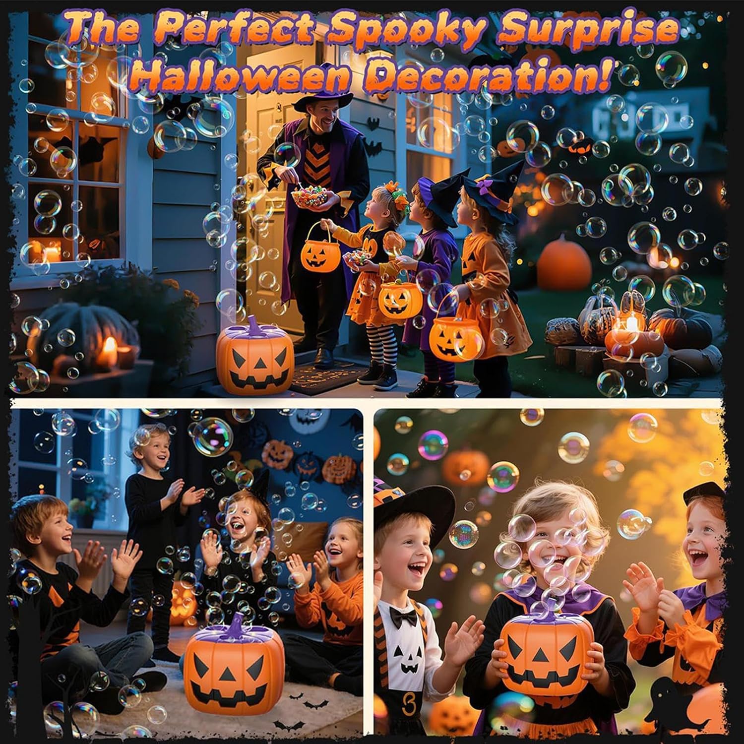 Design festivo della zucca: la macchina per bolle di Halloween incorpora un design ispirato alla zucca per creare un'atmosfera vivace e allegra, elevando l'atmosfera di qualsiasi celebrazione e trasformando spazi semplici in ambienti incantevoli pieni di gioia e bolle per tutti da godere Charmal Bubble Display: Caratterizzato da un design multi-foro a 15 fori, questa macchina per bolle di Halloween per bambini genera rapidamente numerose bolle, offrendo vari effetti di bolle che catturano l'attenzione dei bambini e creano un'atmosfera incantevole durante le celebrazioni festive Suono e luci coinvolgenti: con il suo speciale sistema audio e luminoso, la Bubble Machine Halloween aumenta divertimento e terrore, garantendo esperienze indimenticabili alle feste in casa infestata o alle celebrazioni stagionali delle vacanze Batteria a lunga durata: con una robusta batteria ricaricabile da 2000 mAh che si integra nel suo design, il generatore di bolle di Halloween supporta un uso prolungato superiore a un'ora, consentendo esperienze di gioco coinvolgenti a feste in costume o eventi stagionali Funzionalità senza fuoriuscite: il creatore di bolle di Halloween presenta una struttura a prova di perdite a 360, garantendo che il liquido delle bolle non fuoriesca durante l'uso, fornendo un funzionamento sicuro e affidabile, perfetto per feste di Halloween, eventi all'aperto o tempo di gioco per bambini, migliorando il divertimento senza disordine