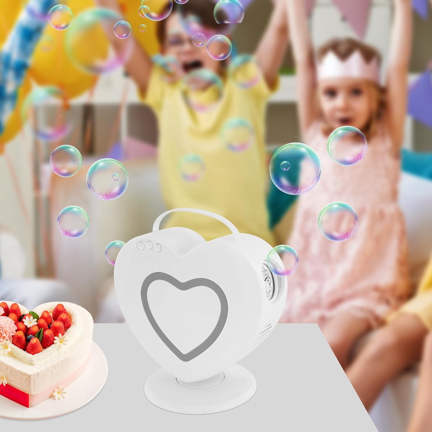 DESIGN ROTANTE: Con la manopola rotante e il telecomando, puoi regolare l'angolo di rotazione (360° e 90°) per creare un'atmosfera da sogno. REALIZZAZIONE EFFICIENTE DELLE BOLLE: Con il design a doppia uscita, può spruzzare bolle di diverse dimensioni e puoi scegliere l'effetto a doppia uscita o a uscita singola. Durevole: Il serbatoio dell'acqua di grande capacità (16,91 once) e le potenti batterie consentono, dopo una carica completa (circa 4 ore), un uso continuo di 40-60 minuti senza frequenti rabboccamenti. la soluzione FACILE DA TRASPORTARE: il design compatto (9,06*3,15*10,24 pollici), leggero (1,76 libbre) e una maniglia ti consentono di trasportarlo facilmente UTILIZZO: è ideale per tutti i tipi di riunioni e celebrazioni, che si tratti di una riunione di famiglia, festa di compleanno di bambini, matrimonio all'aperto o riunione aziendale Può portare divertimento senza fine ed esperienze fantastiche per la maggior parte delle età