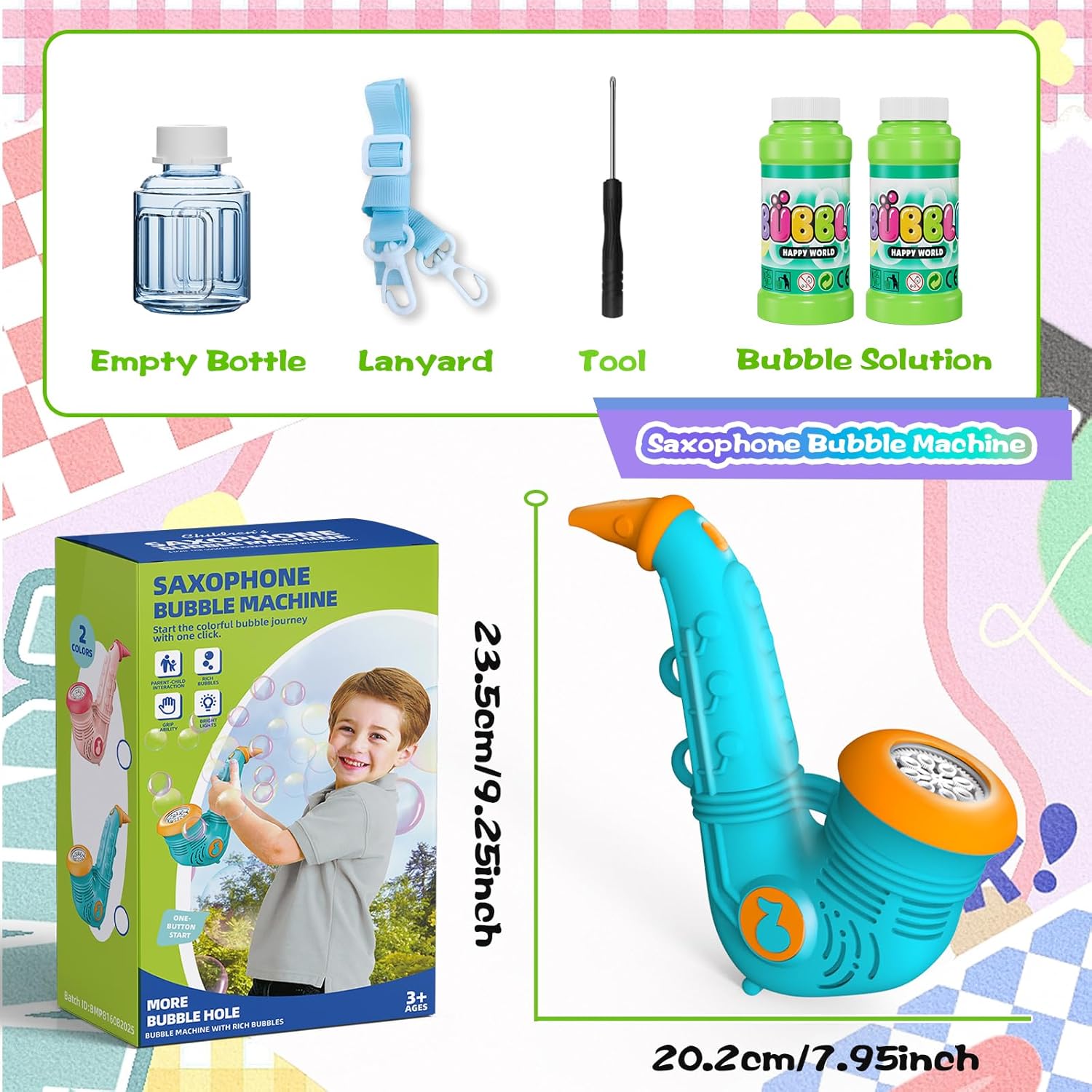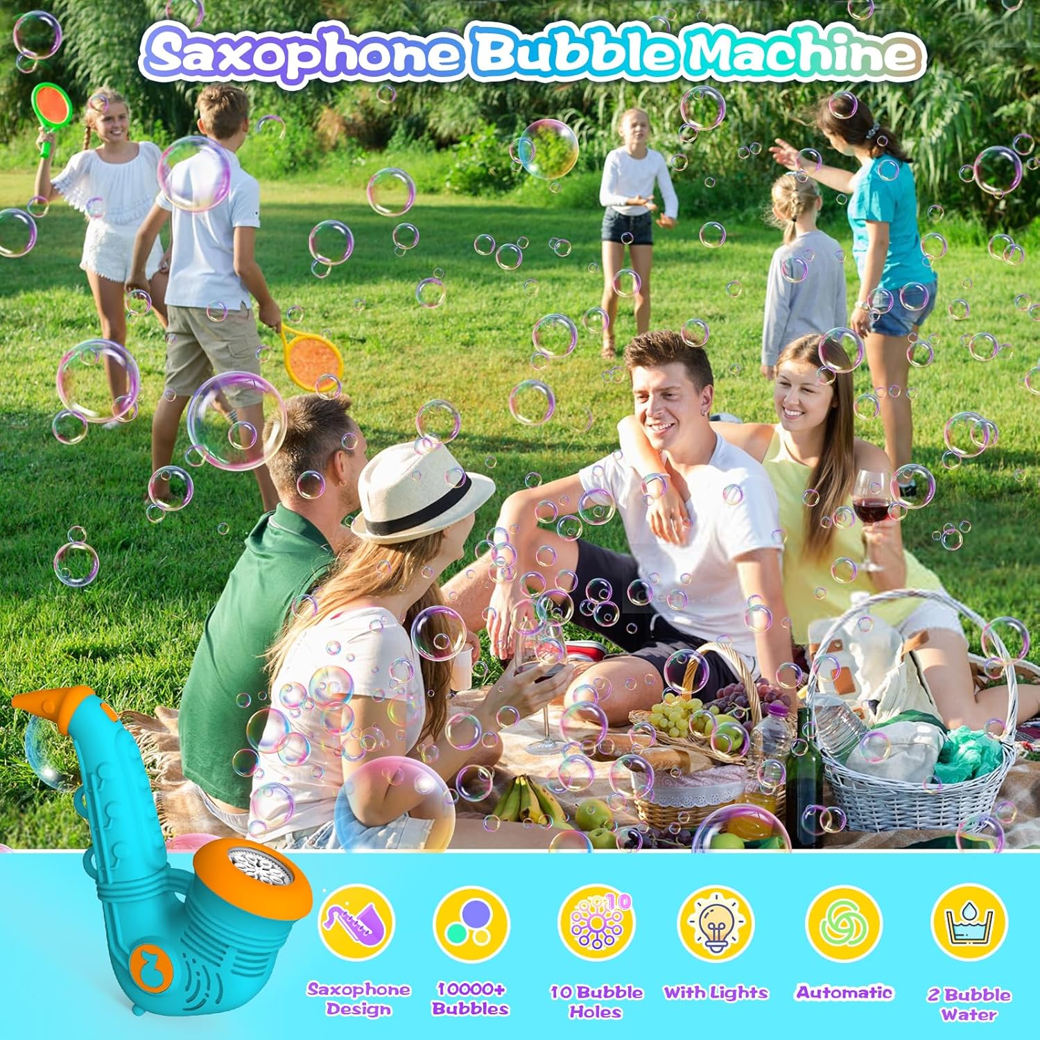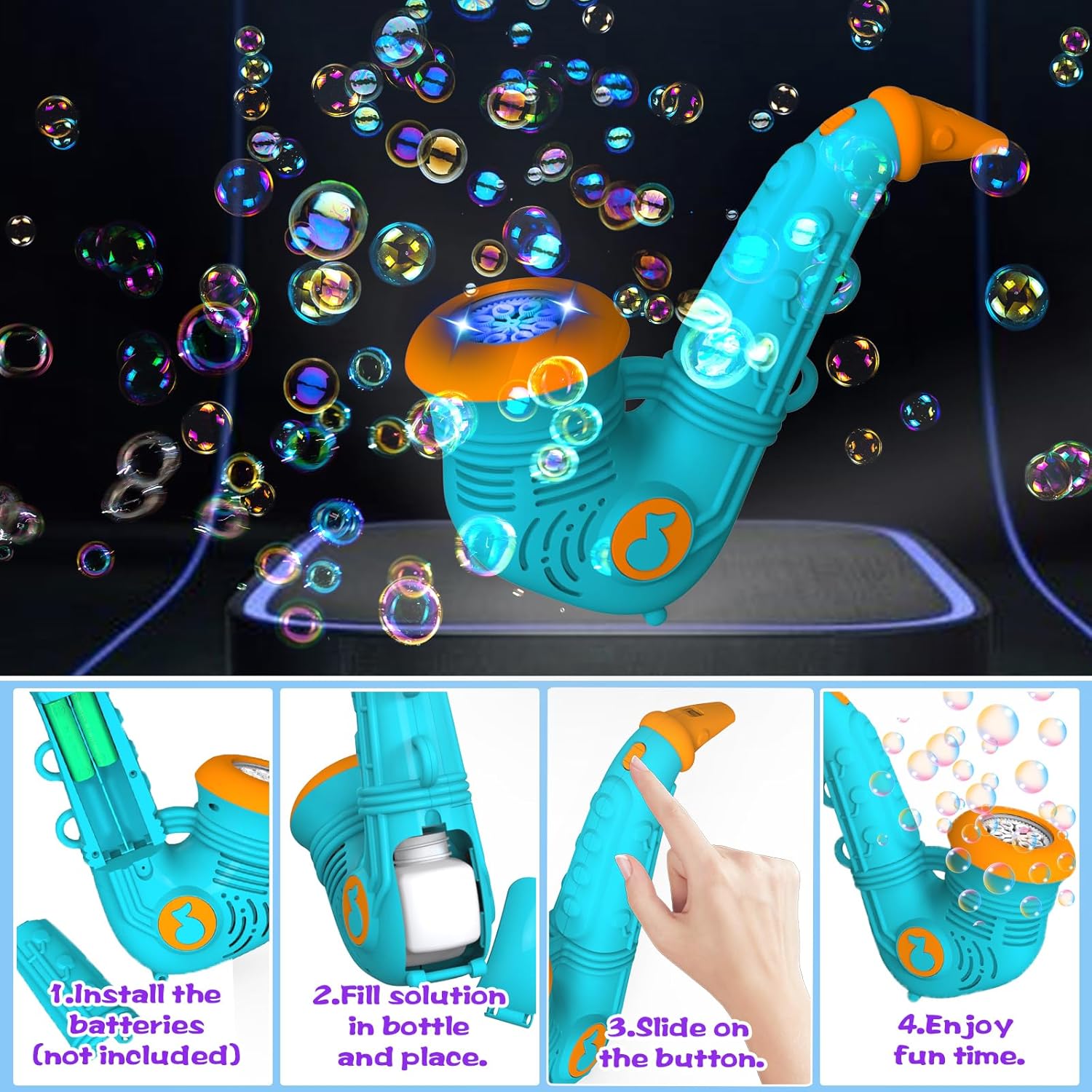 Macchina per bolle di sapone Panamalar, macchina per bolle di sassofono, verde