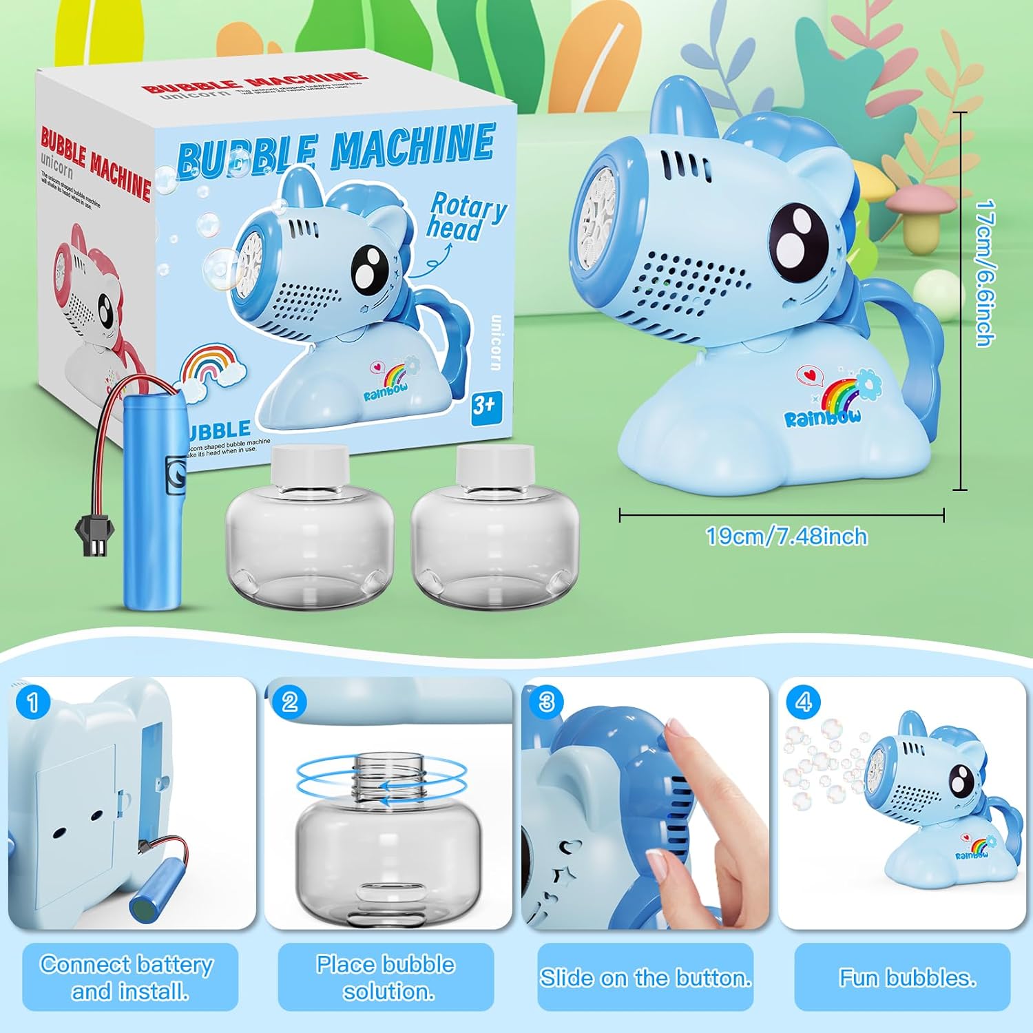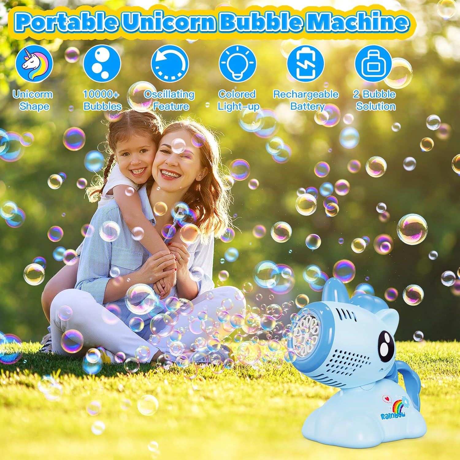 Macchina per bolle di sapone Panamalar, soffiatore portatile per bolle di unicorno per bambini, blu