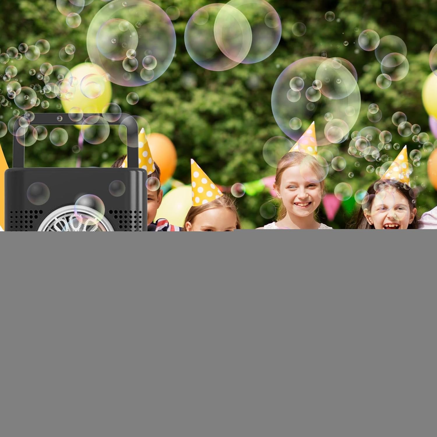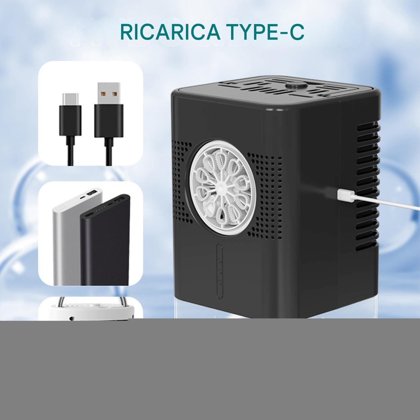Soluzione Intrattenimento Portatile: Progettato per il divertimento outdoor, la costruzione robusta e le dimensioni portatili offrono prestazioni versatili in ogni scenario, fornendo trasporto facile per più allegria all'aperto Tecnologia Antigoccia: Serbatoio impermeabile da 400ml e progettazione avanzata assicurano prestazioni affidabili per ore di divertimento continuo Design Avanzato Flusso Aria: Presa d'aria grande diametro garantisce funzionamento regolare e generazione bolle omogenee per esperienza coinvolgente che diverte tutte le età Attivazione Istantanea: Goditi un'atmosfera coinvolgente senza sforzo grazie alla produzione abbondante di bolle, assemblaggio rapido e attivazione immediata con un solo tocco per divertimento garantito Atmosfera coinvolgente: Modulo LED integrato crea un'atmosfera immersiva con luci a cambio colore automatico, arricchisce gli effetti visivi e si attiva facilmente con un solo pulsante per praticità d'uso