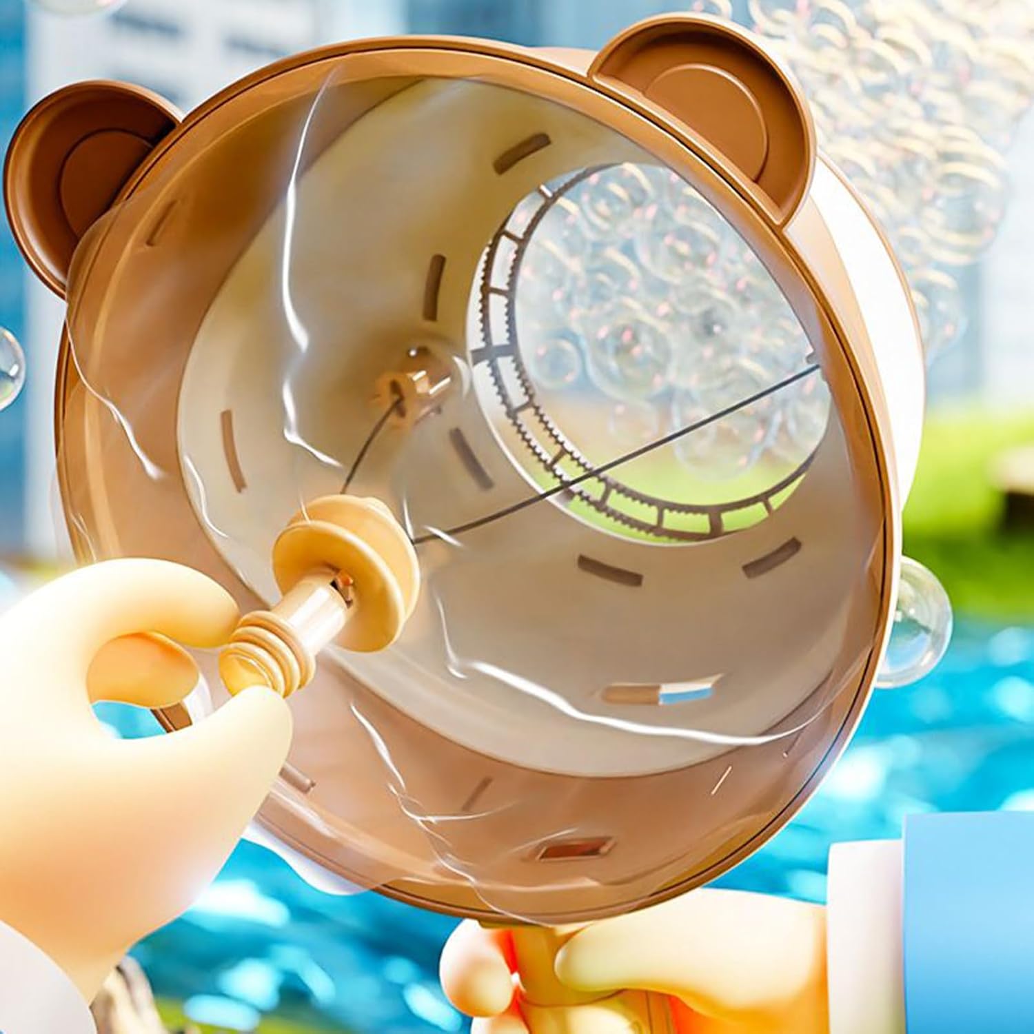 Soluzione Bolle per Feste: Trasforma eventi esterni in celebrazioni vivaci con questo set di bacchette che promuove l'intrattenimento di gruppo e funge da elemento dinamico nei raduni sociali, garantendo divertimento duraturo Divertimento Interattivo:Soffiabolle aerodinamico per bambini offre esperienza coinvolgente con funzionamento manuale, privo di sostanze nocive e garantisce flusso continuo di bolle per attività all'aperto Gioco Attivo: Stimola consapevolezza spaziale e sviluppo motorio con divertenti attività di inseguimento bolle per giochi dinamici, affinando naturalmente le capacità di coordinazione Flusso Bolle Costante: d'aria ottimizzato garantisce bolle grandi e abbondanti con effetto sognante, creando innumerevoli bolle uniformi per il giocattolo all'aperto preferito dai bambini Presa FacileBacchetta bolle a forma di orso con impugnatura ergonomica per bambini: leggera e perfetta per gioco di gruppo, garantisce presa sicura durante lunghi momenti di divertimento all'aperto con amici, stimolando l'interazione sociale.