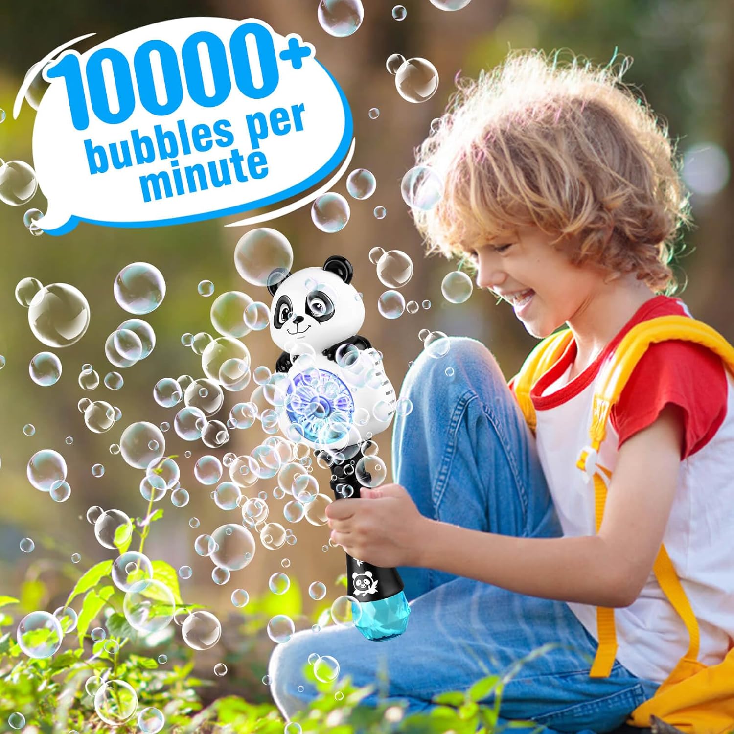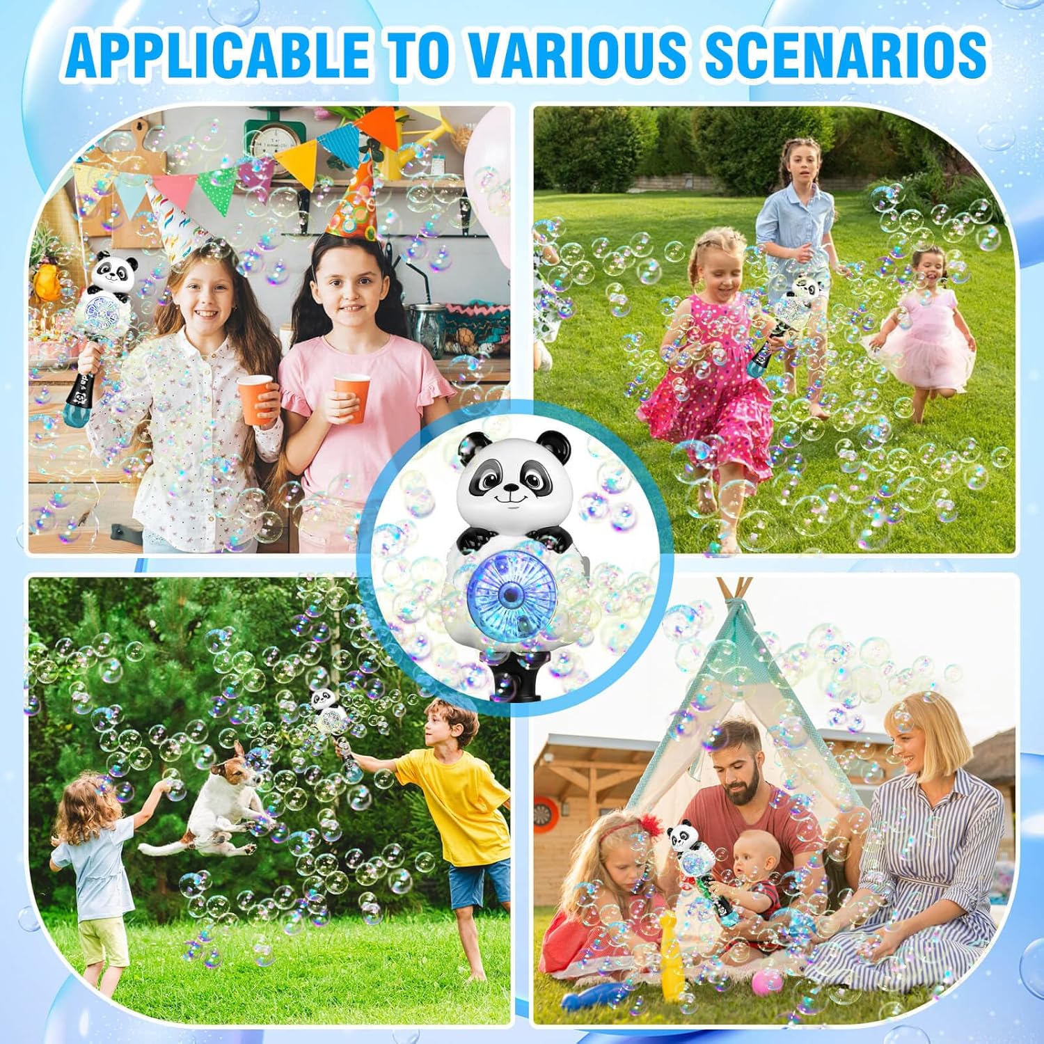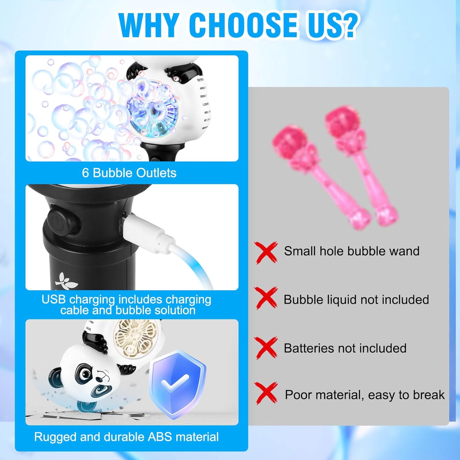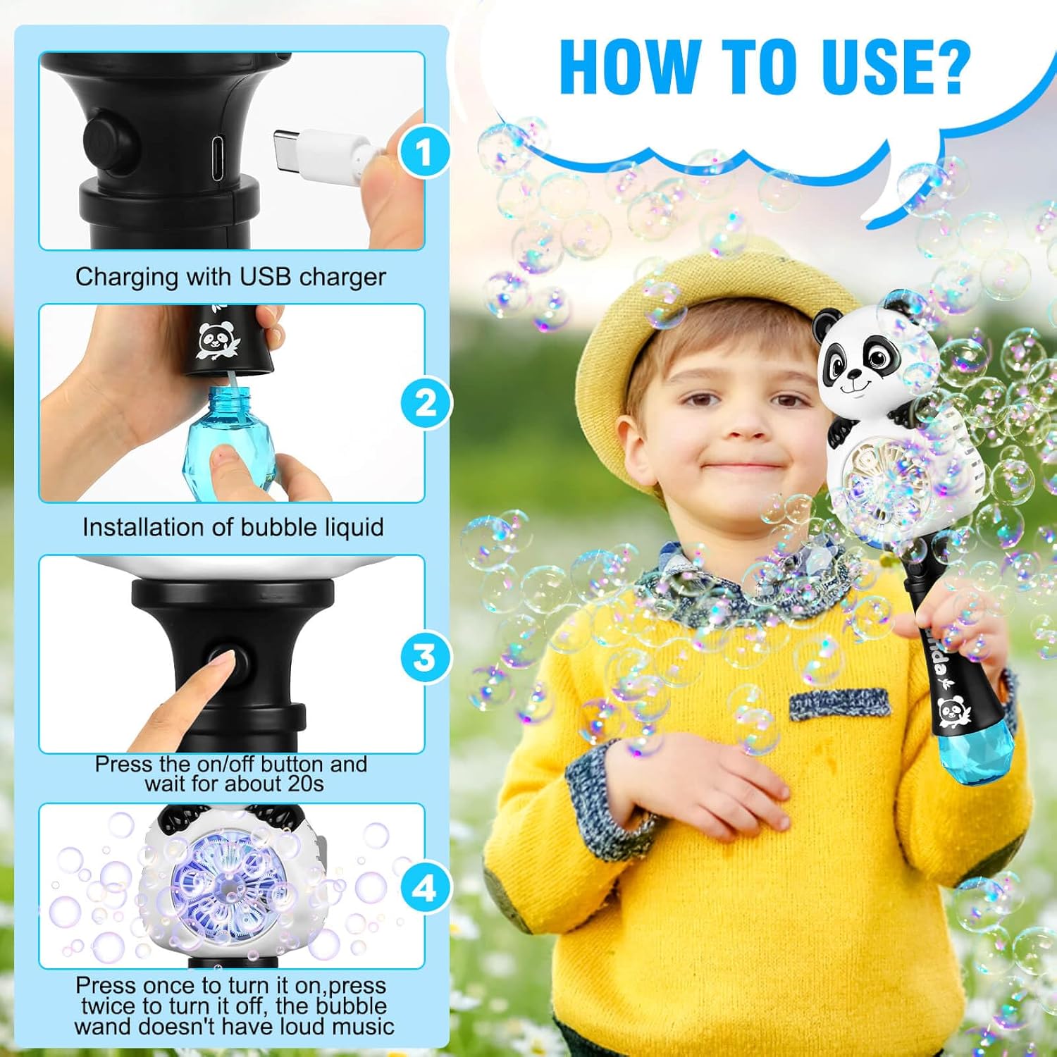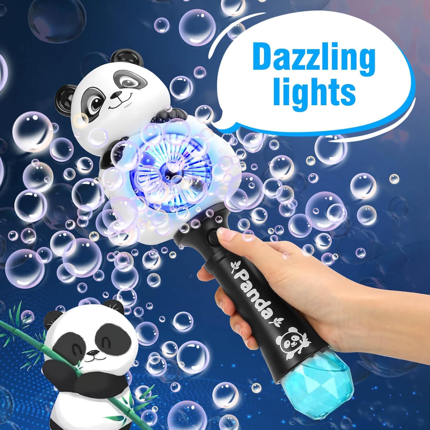 Simpatico design a panda: questa bacchetta per bolle presenta un design a panda con 6 uscite per bolle per soffiare tante bolle. riempire l'aria di gioia ed eccitazione. In giardino, a un picnic o a una festa, la bacchetta magica Panda ti porterà gioia. Incantevoli luci a LED: le luci a LED colorate migliorano l'esperienza di soffiaggio delle bolle, soprattutto la sera o alle feste. Guarda le bolle illuminarsi con un arcobaleno di colori, affascinando bambini e adulti. Ricaricabile tramite USB: facilmente ricaricabile tramite USB, offre ore di divertimento nel soffiare bolle senza bisogno di batterie, una singola carica fornisce ore di gioco continuo. Sicuro e durevole: le bacchette per bolle sono realizzate in resistente plastica ABS. Le bacchette a bolle dai bordi lisci e il design impermeabile assicurano che il tuo bambino possa giocare senza preoccuparsi di lesioni o disordine. Scelta regalo ideale: questo adorabile bastoncino a bolle a tema panda è un ottimo regalo per compleanni, vacanze o qualsiasi occasione speciale. I bambini adoreranno il suo design divertente e la capacità di soffiare le bolle