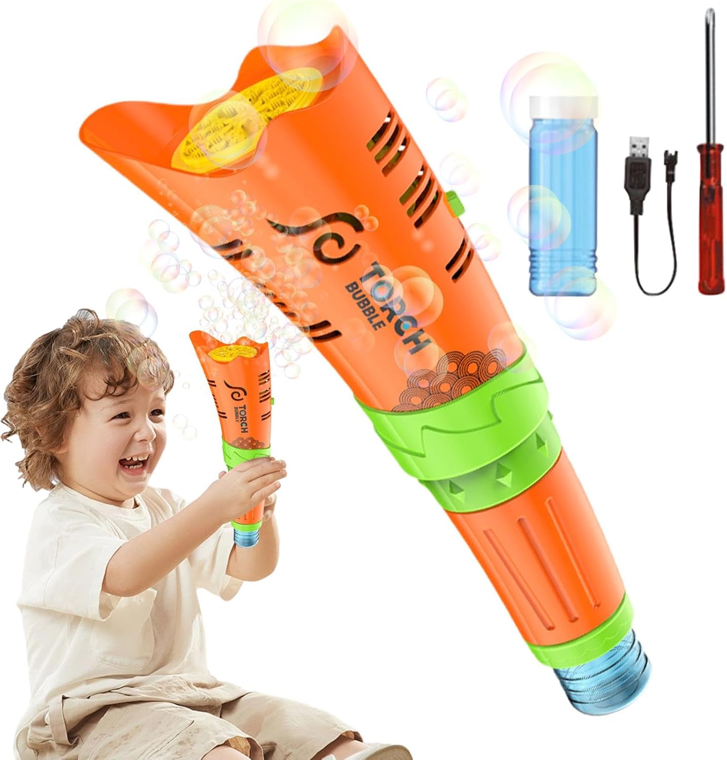 ⋆Delizioso stile torcia: adottando una bella forma a torcia, questa macchina per bolle attira le persone con il suo delizioso divertimento. Guarda il tuo bambino perdersi in un'avventura piena di bolle affascinanti. ⋆Divertimento continuo: con la capacità di generare bolle continuamente tenendo premuto il pulsante, questa macchina per bolle adotta un design multi-foro che crea un flusso continuo di bolle, garantendo intrattenimento infinito per tutte le età. ⋆Illuminazione Gioiosa: Concediti il piacere delle luci accecanti mentre questa macchina per le bolle proietta un bellissimo display luminoso, migliorando l'atmosfera con le sue opzioni di luce calda e fredda integrate. ⋆Costruzione robusta: costruita con materiale ABS di alta qualità, la macchina per bolle garantisce un utilizzo a lungo termine. La sua costruzione solida e robusta garantisce un piacere duraturo. Questo giocattolo è molto divertente. ⋆Regalo fantastico: rendi ogni occasione più emozionante con la nostra macchina per bolle! Perfetto per feste, matrimoni, giochi e attività. Questa macchina portatile e facile da usare è un ottimo regalo per bambini e adulti. Ottieni sorrisi contagiosi e buon umore ovunque!